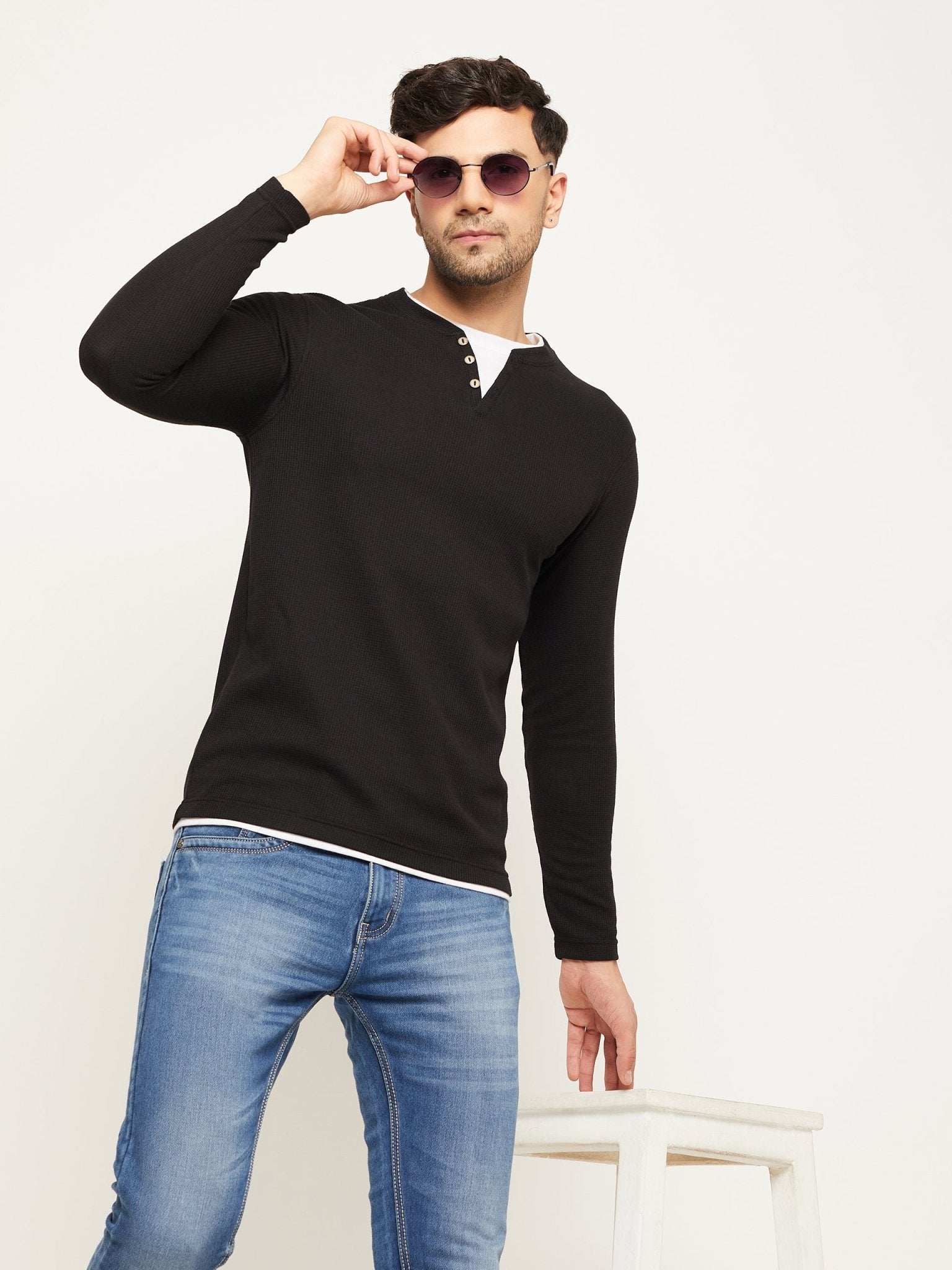 Club York Men Black Solid Full Sleeve V Neck T Shirt Cypm1356 1488