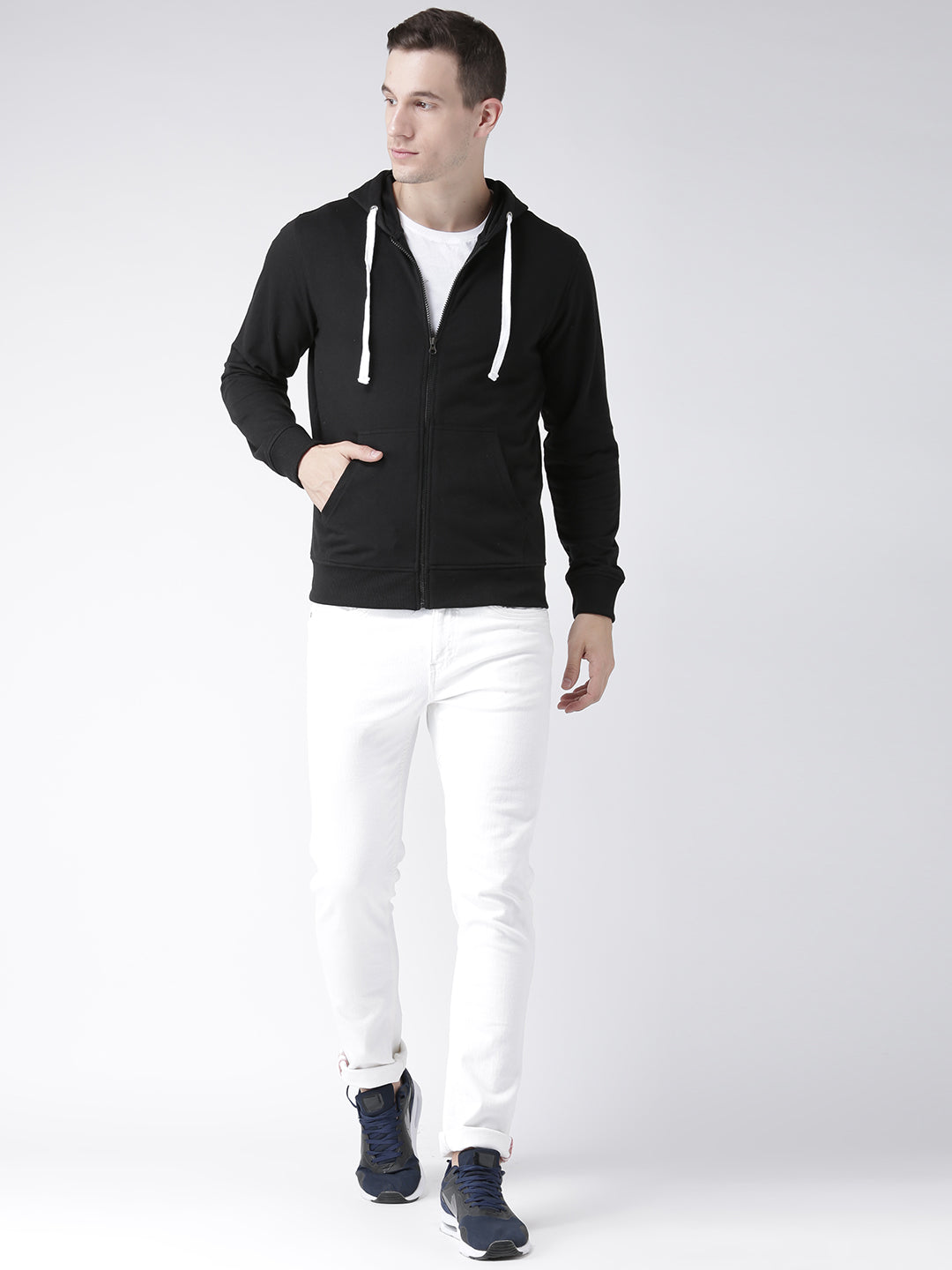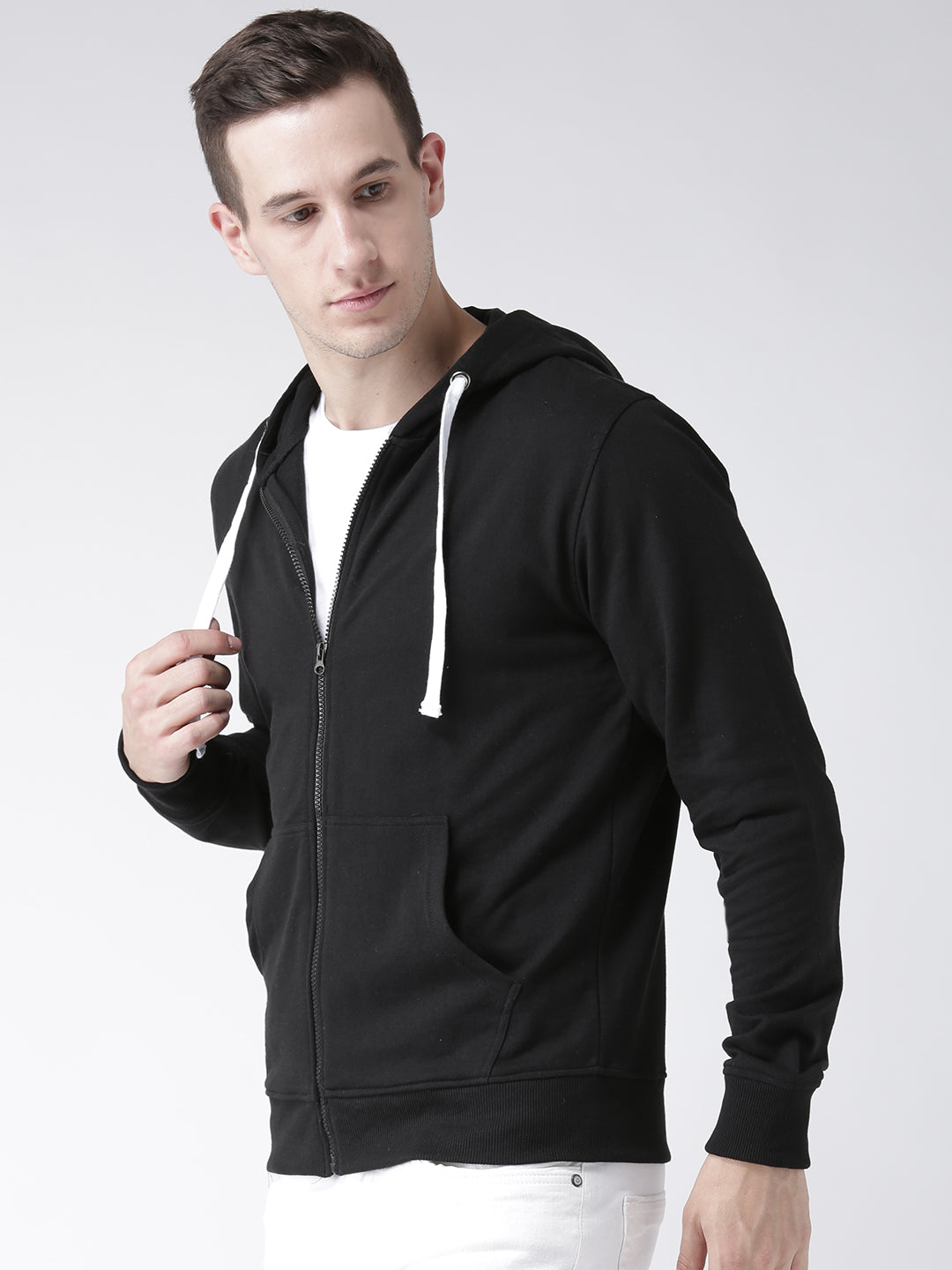 Black Solid Full Sleeve Hooded Sweatshirt 1682