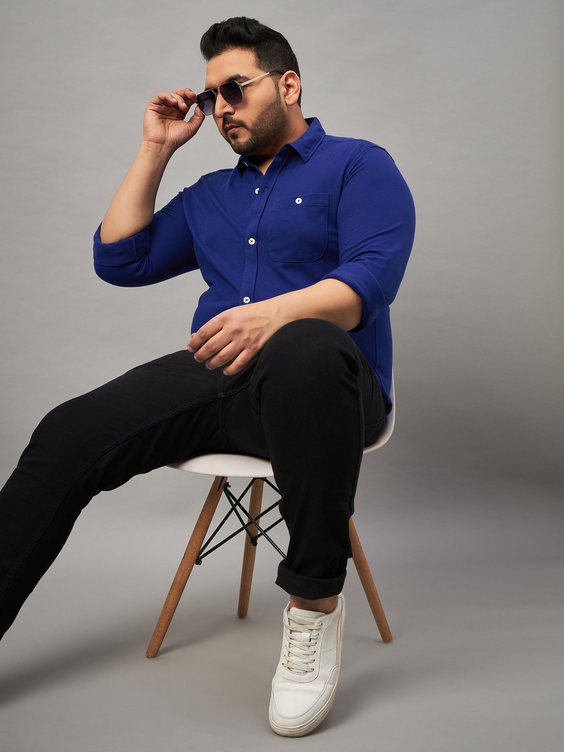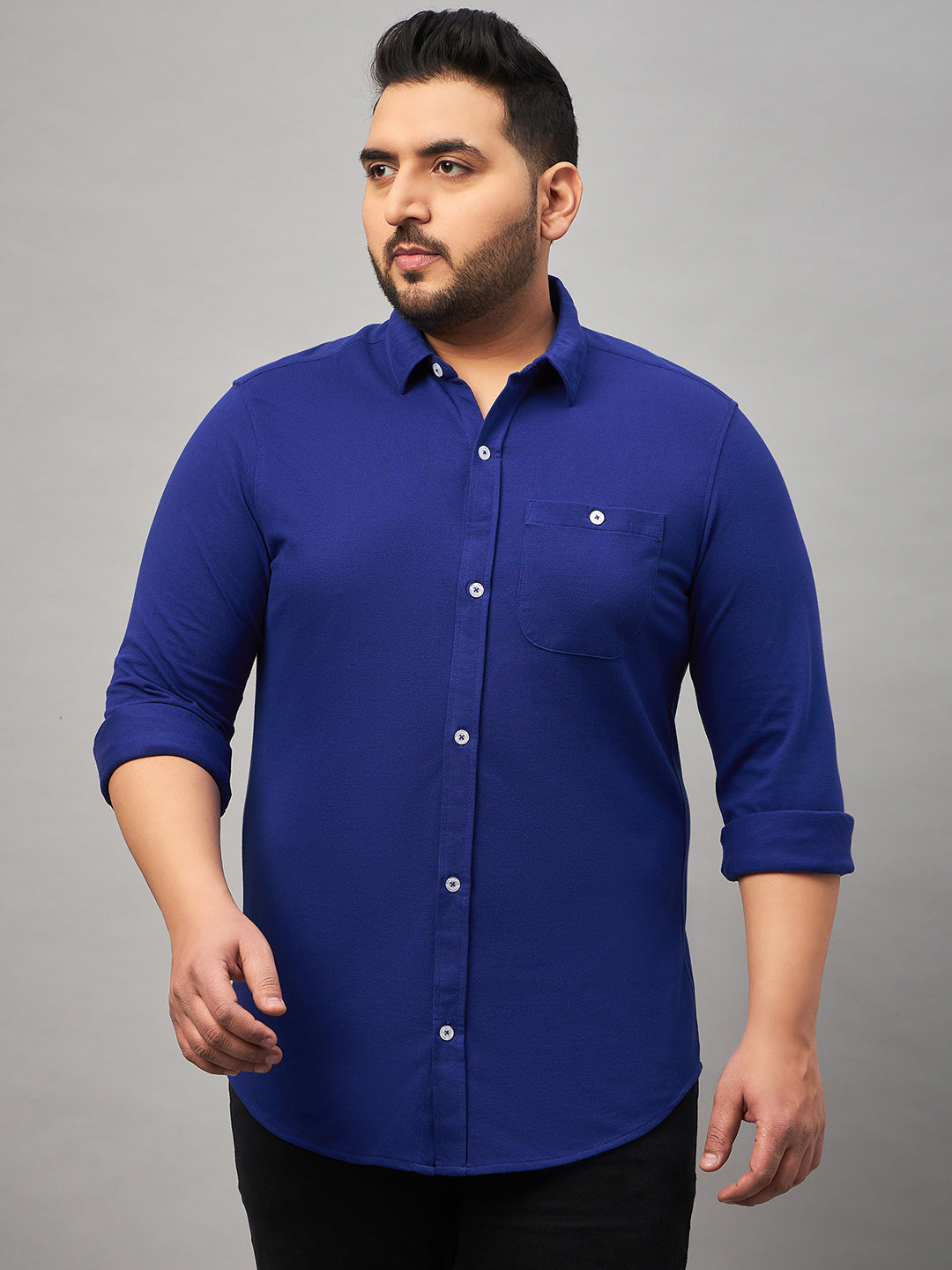 Club York Men Blue Full Sleeve Solid Plus Active Shirt 8349