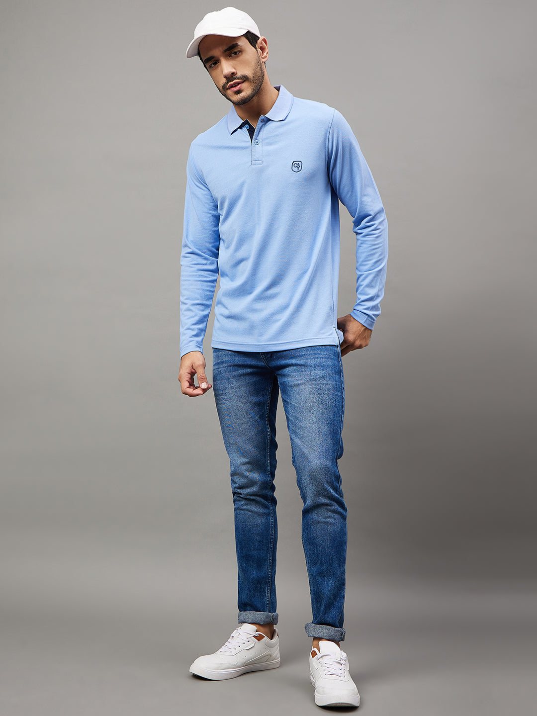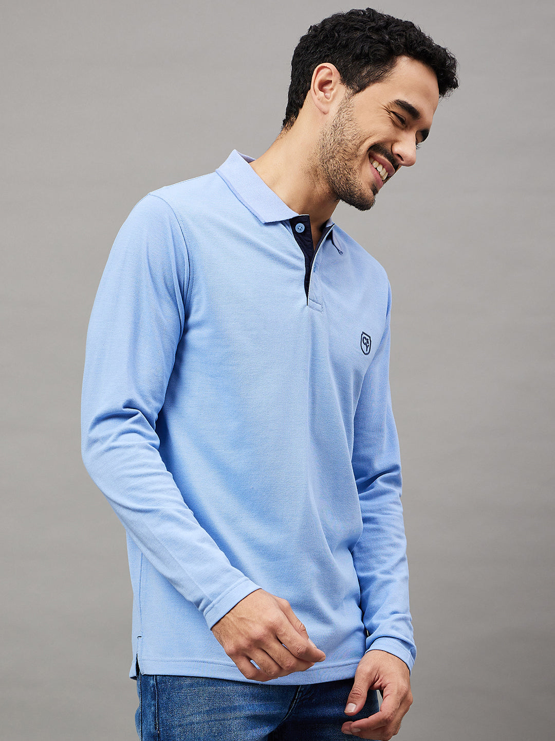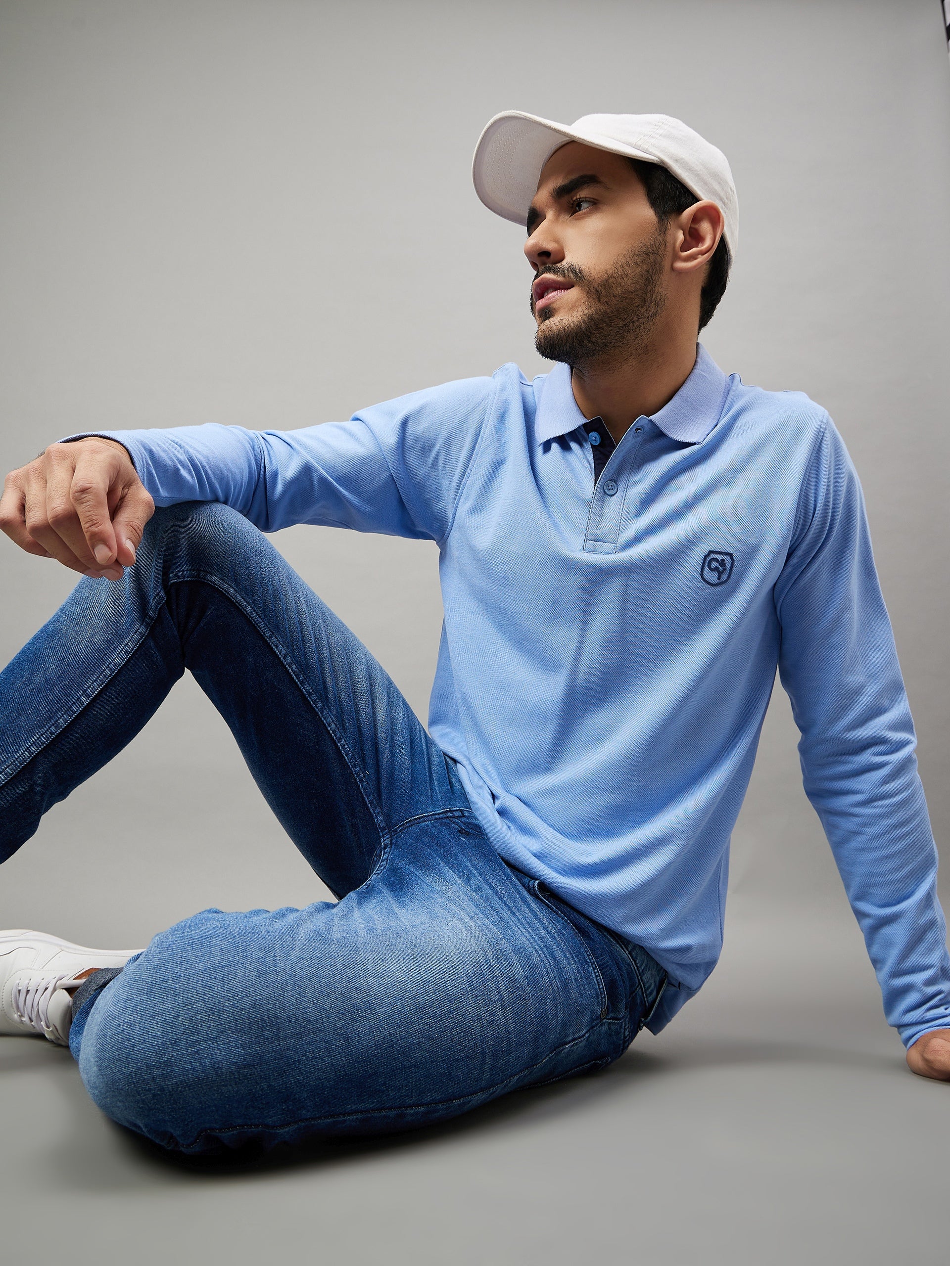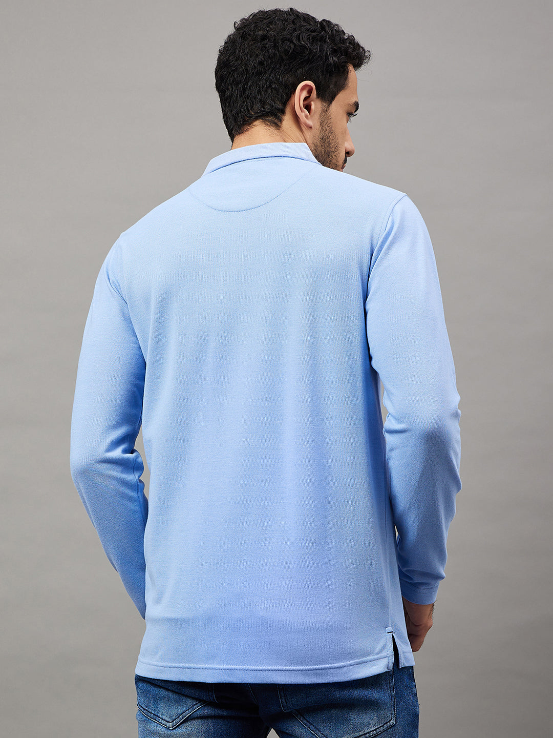 Club York Men Blue Solid Full Sleeve Polo Neck T Shirt 4681