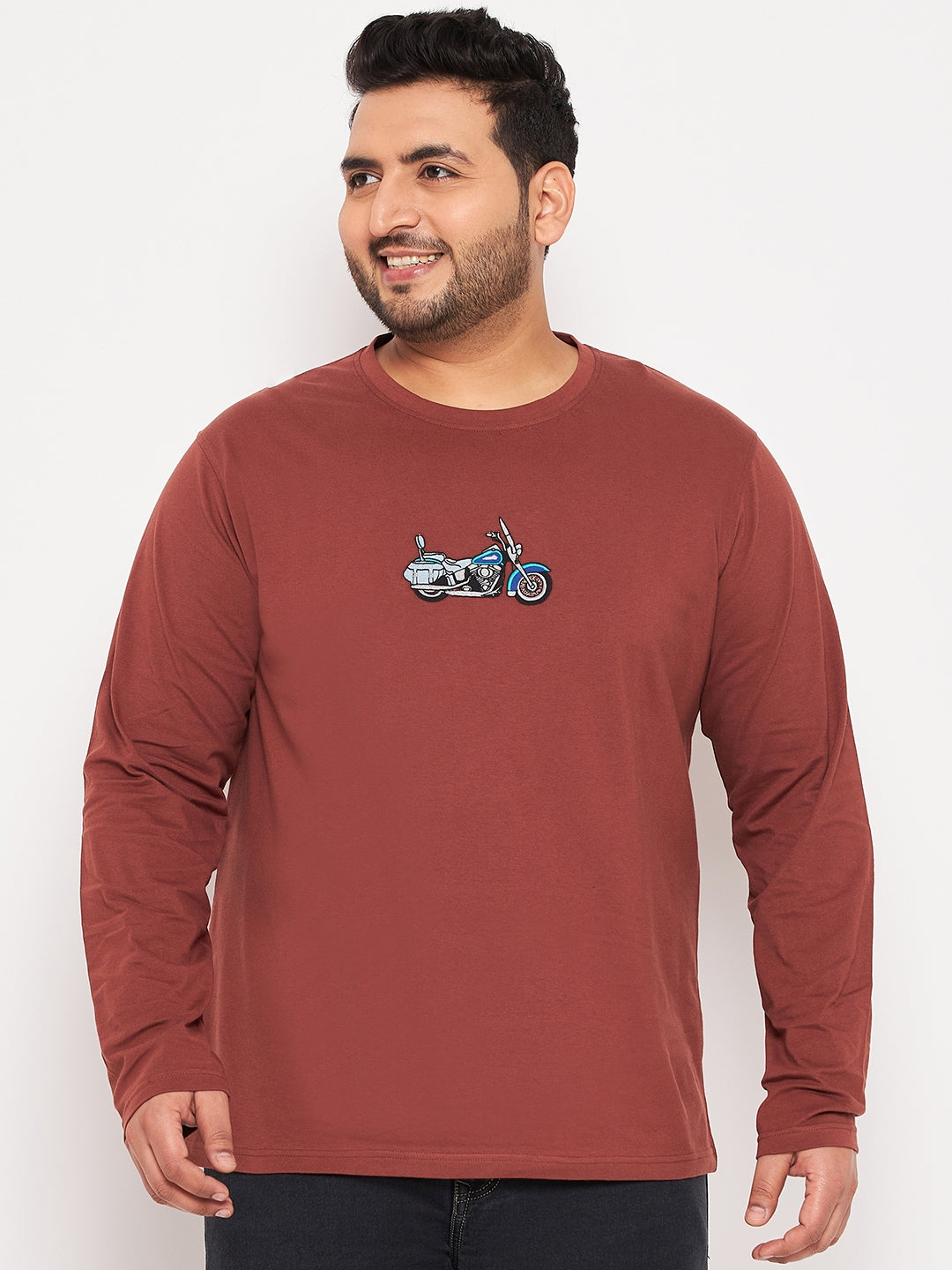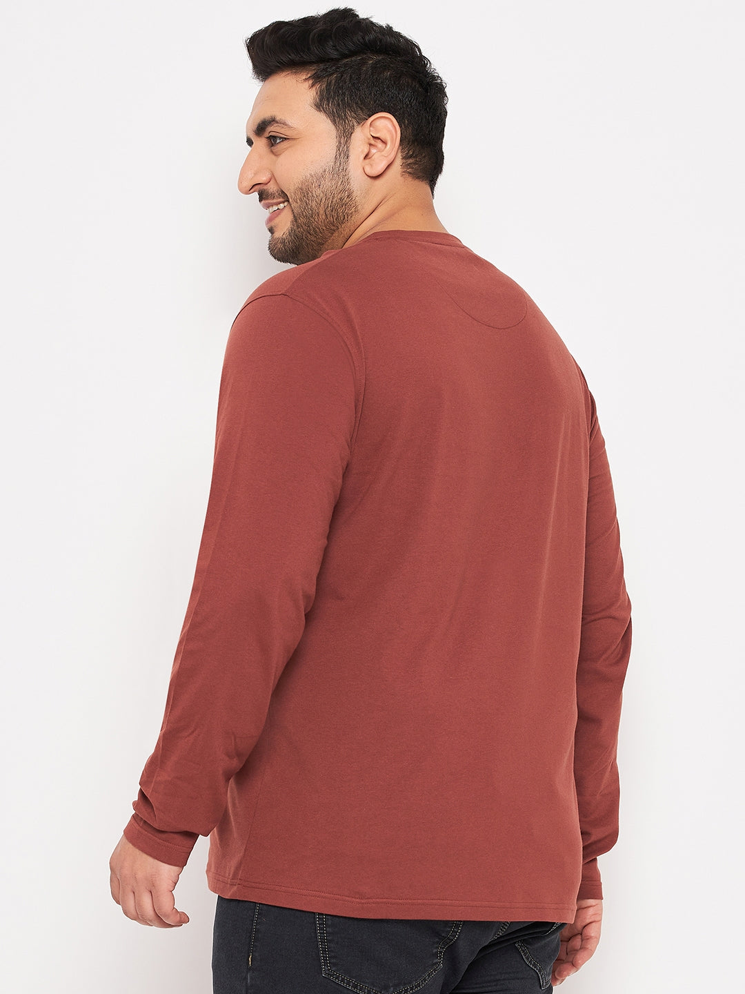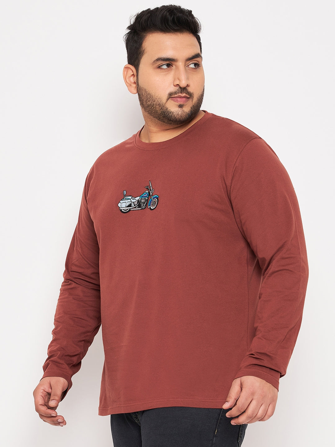 Club York Men Brown Printed Full Sleeve Round Neck Plus Size T Shirt 8833