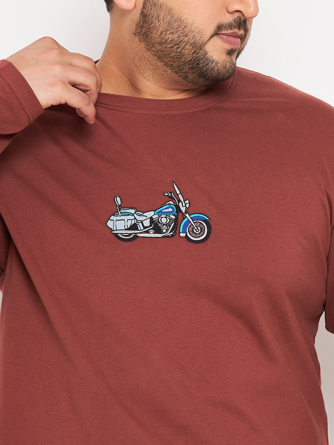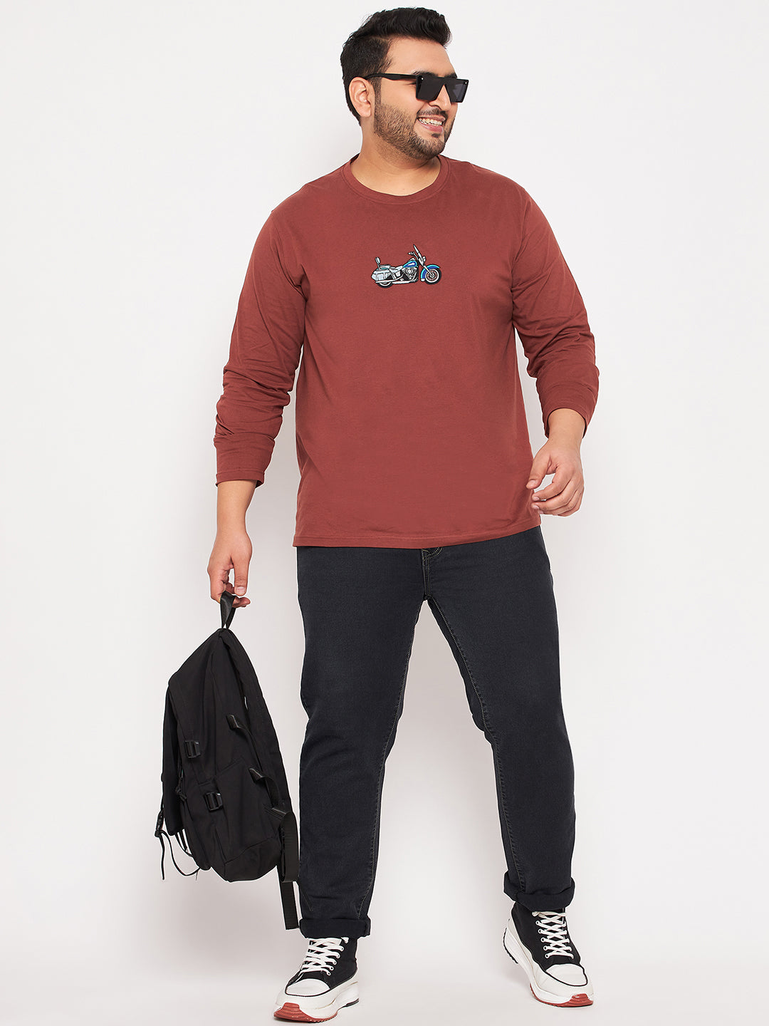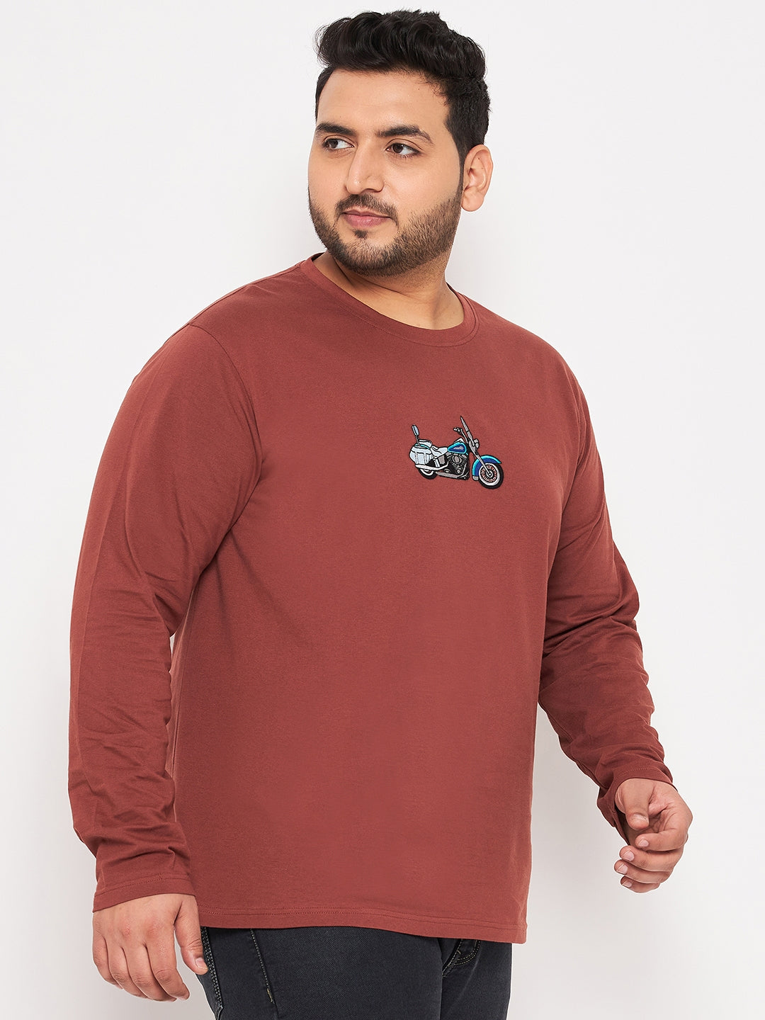 Club York Men Brown Printed Full Sleeve Round Neck Plus Size T Shirt 8833
