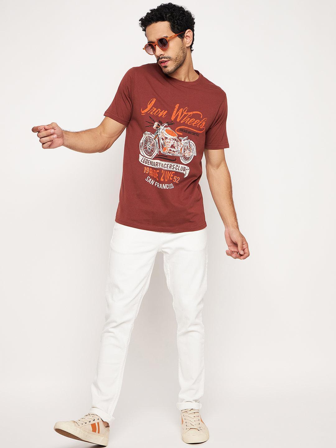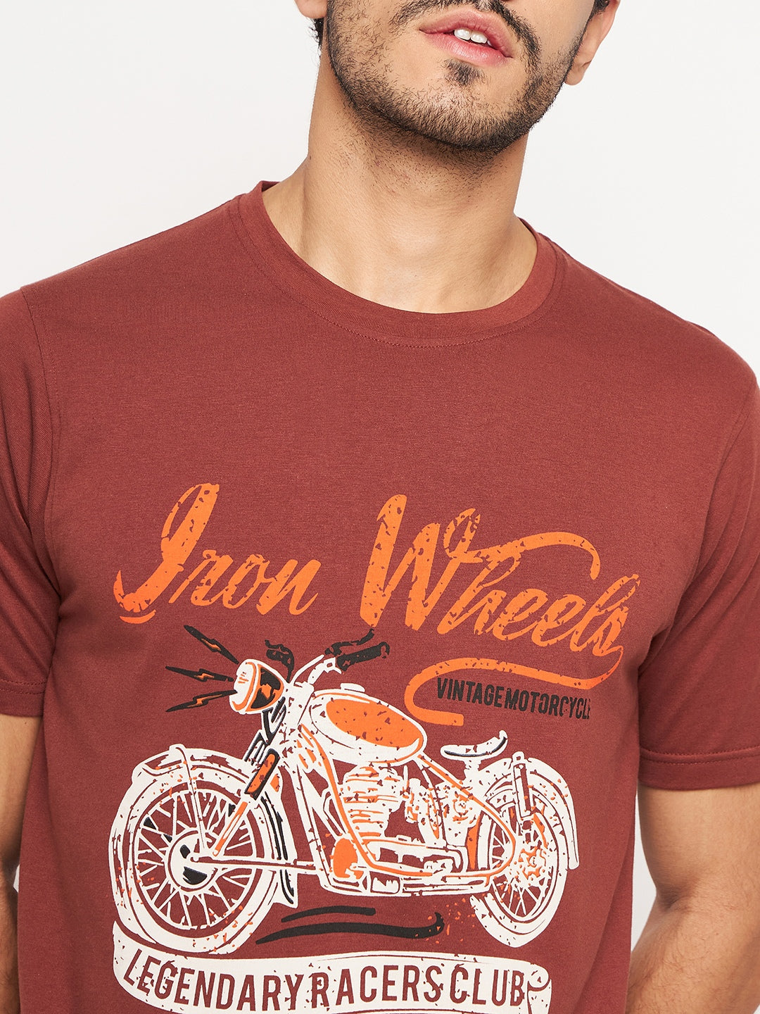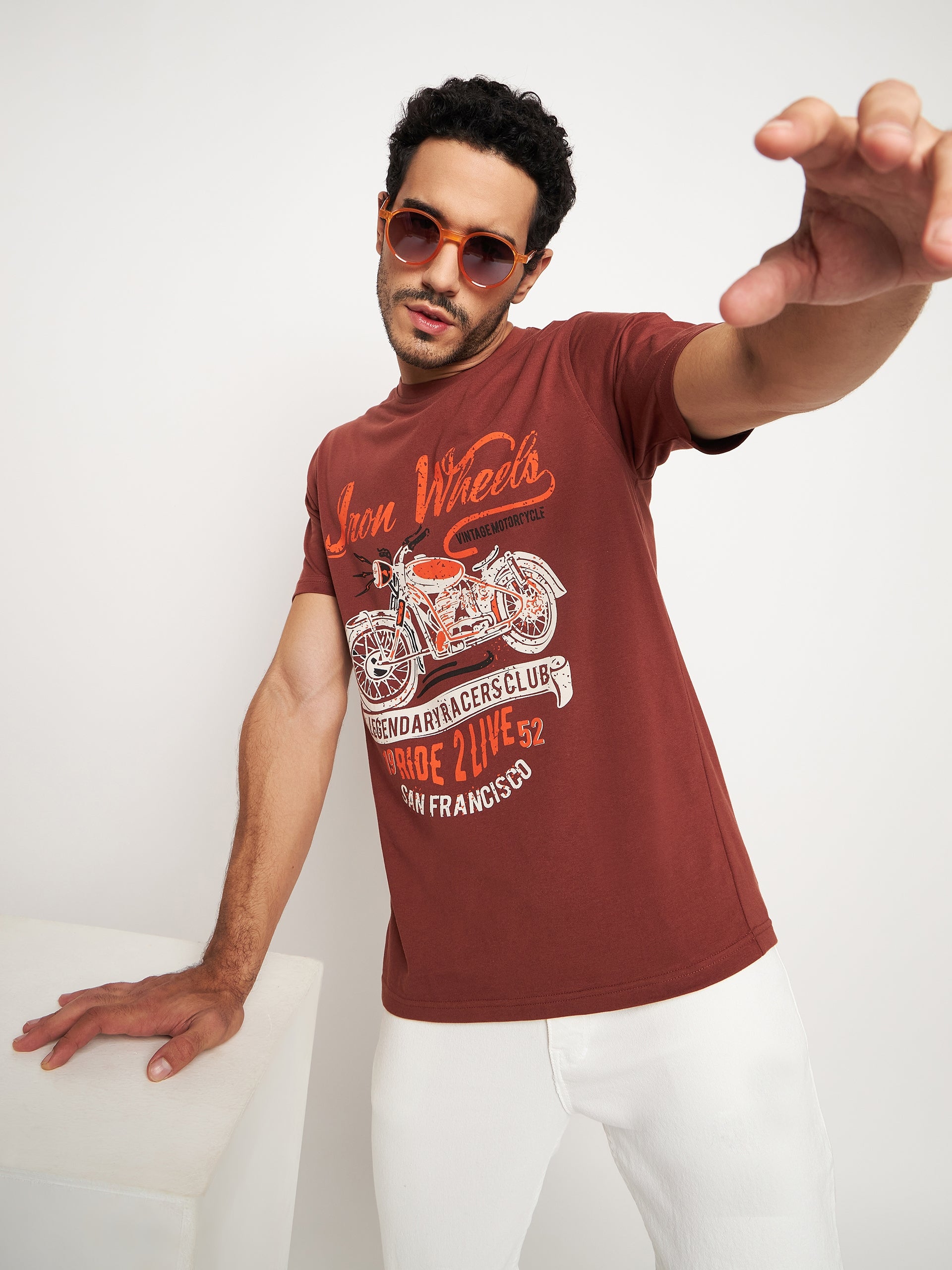 Club York Men Coffee Brown Printed Half Sleeve Round Neck T Shirt 7980