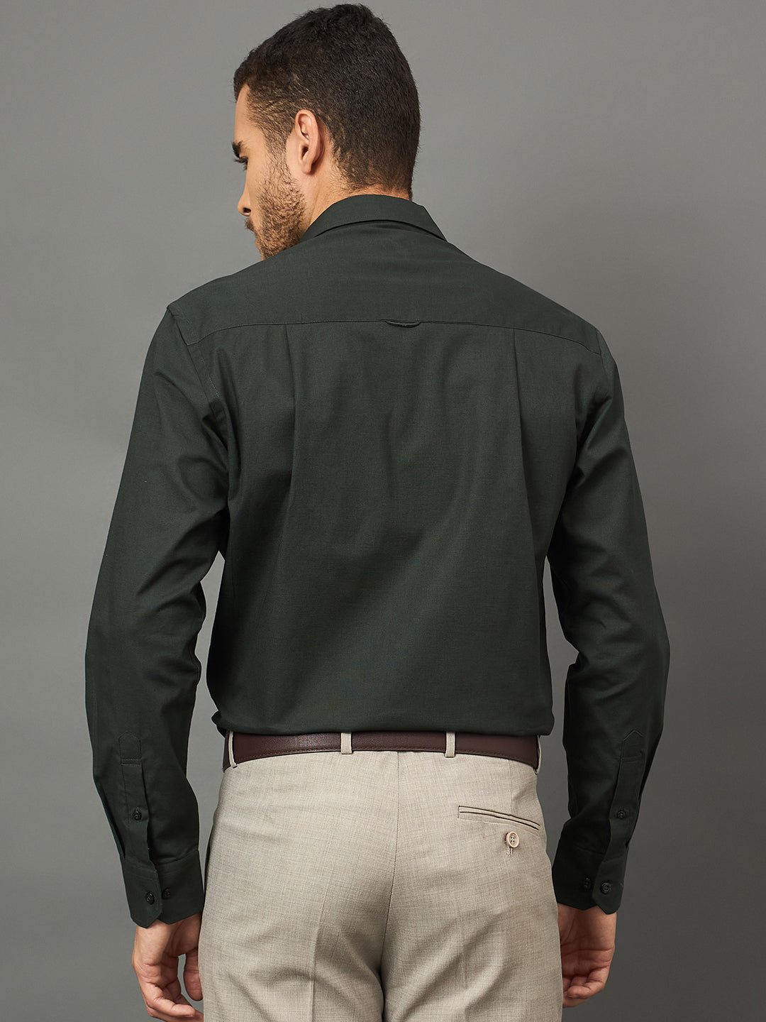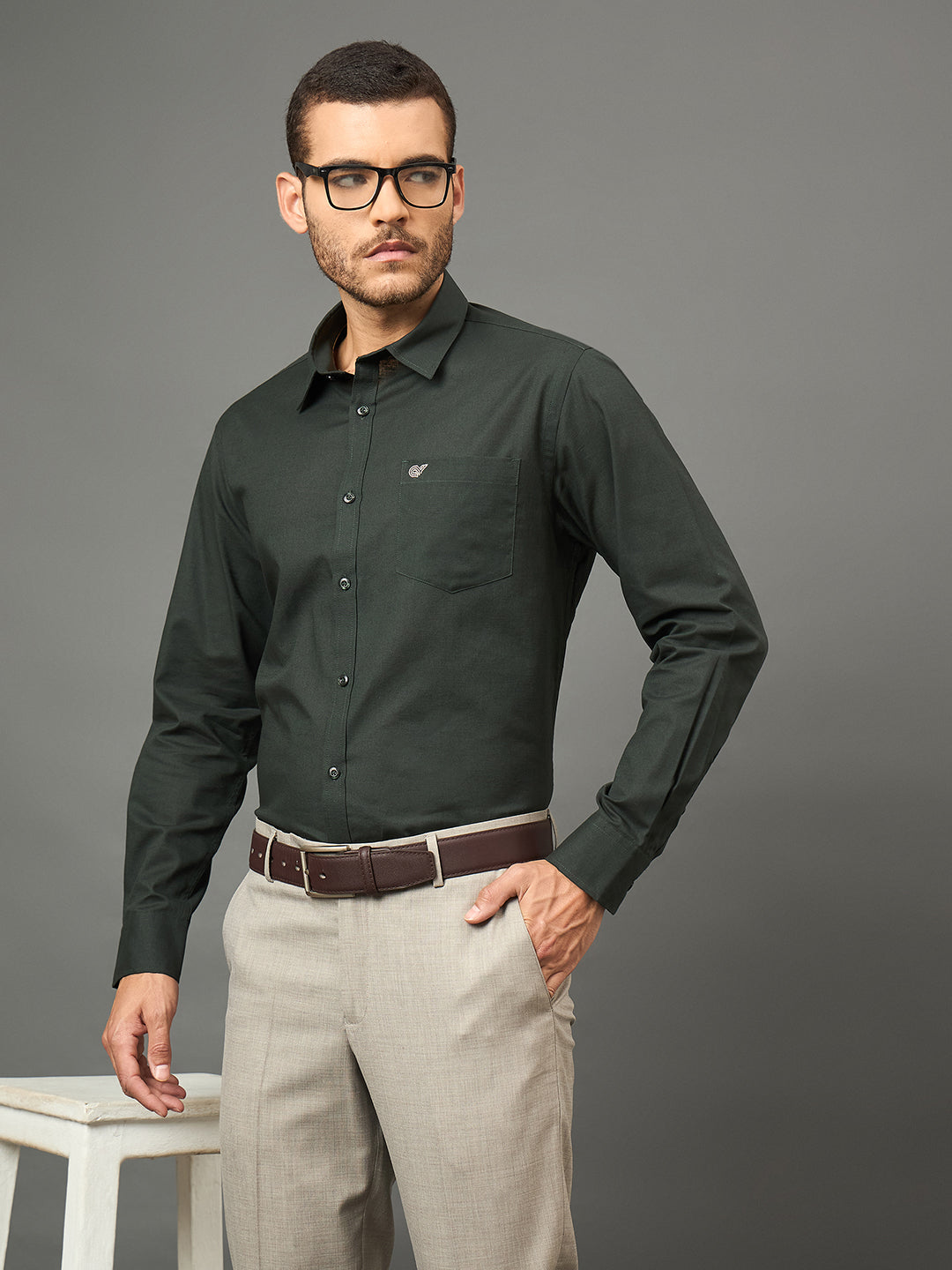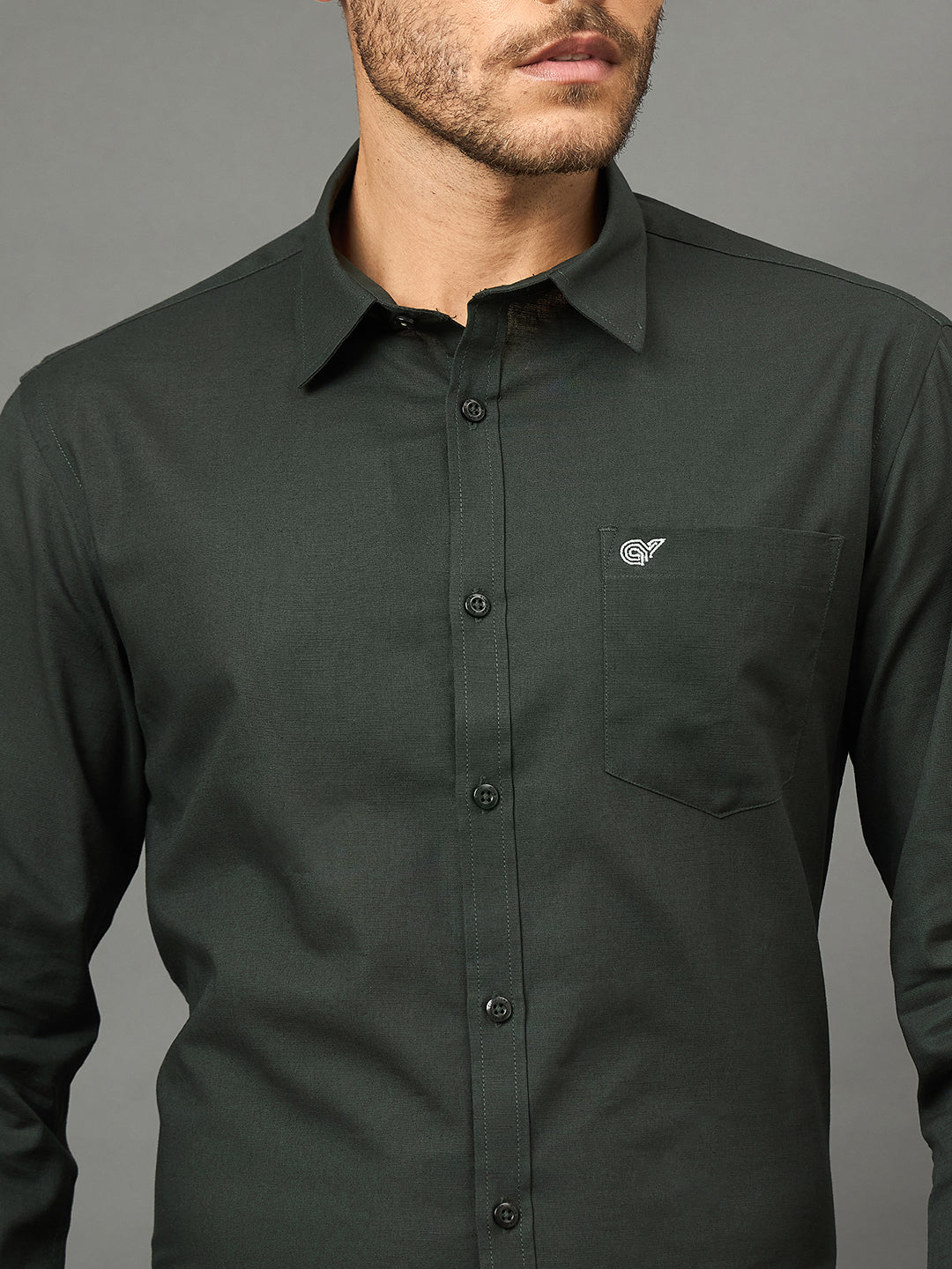 Club York Men Cotton Blend Dark Green Solid Shirt 6400