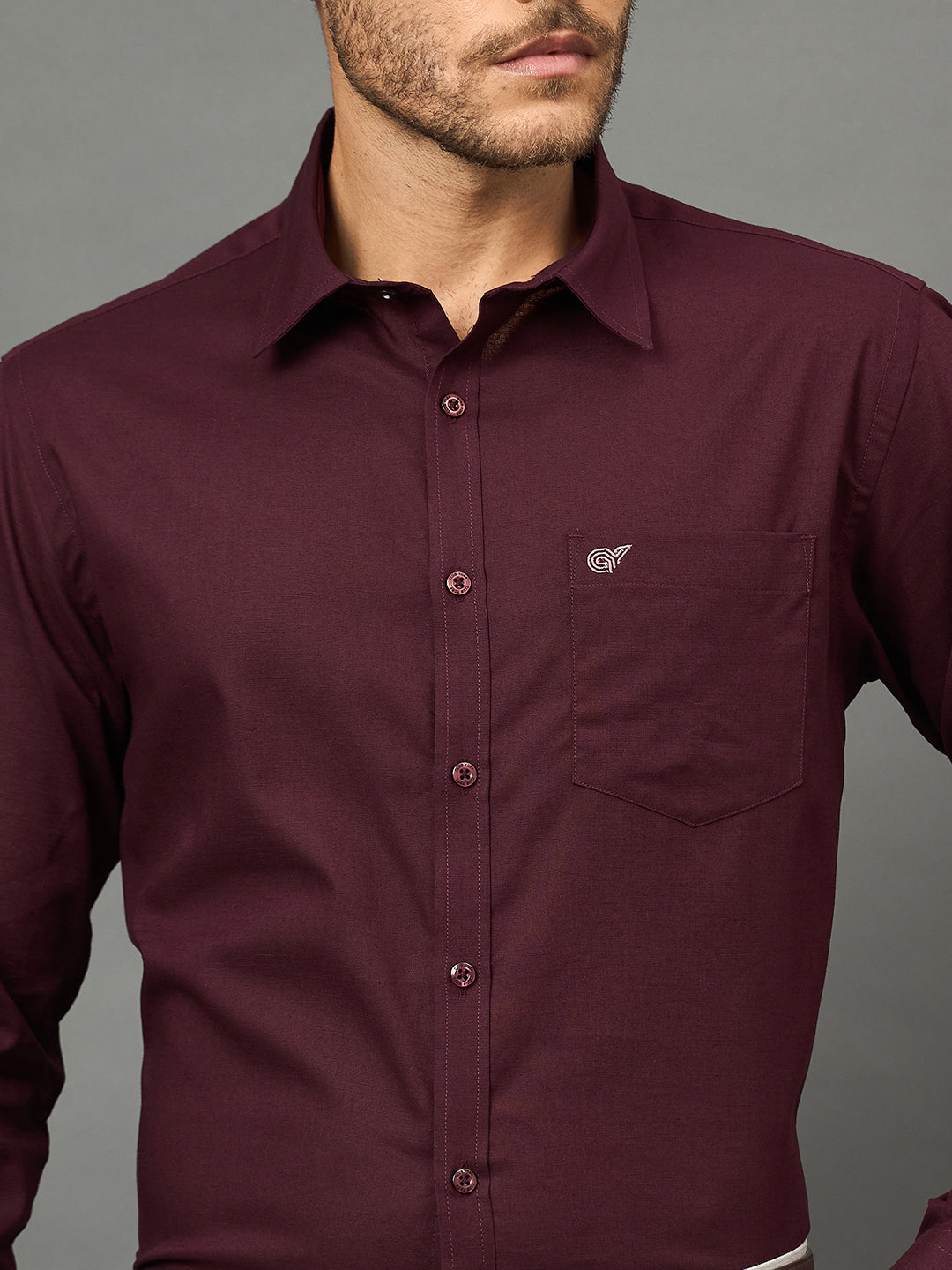 Club York Men Cotton Blend Wine Solid Shirt 6536