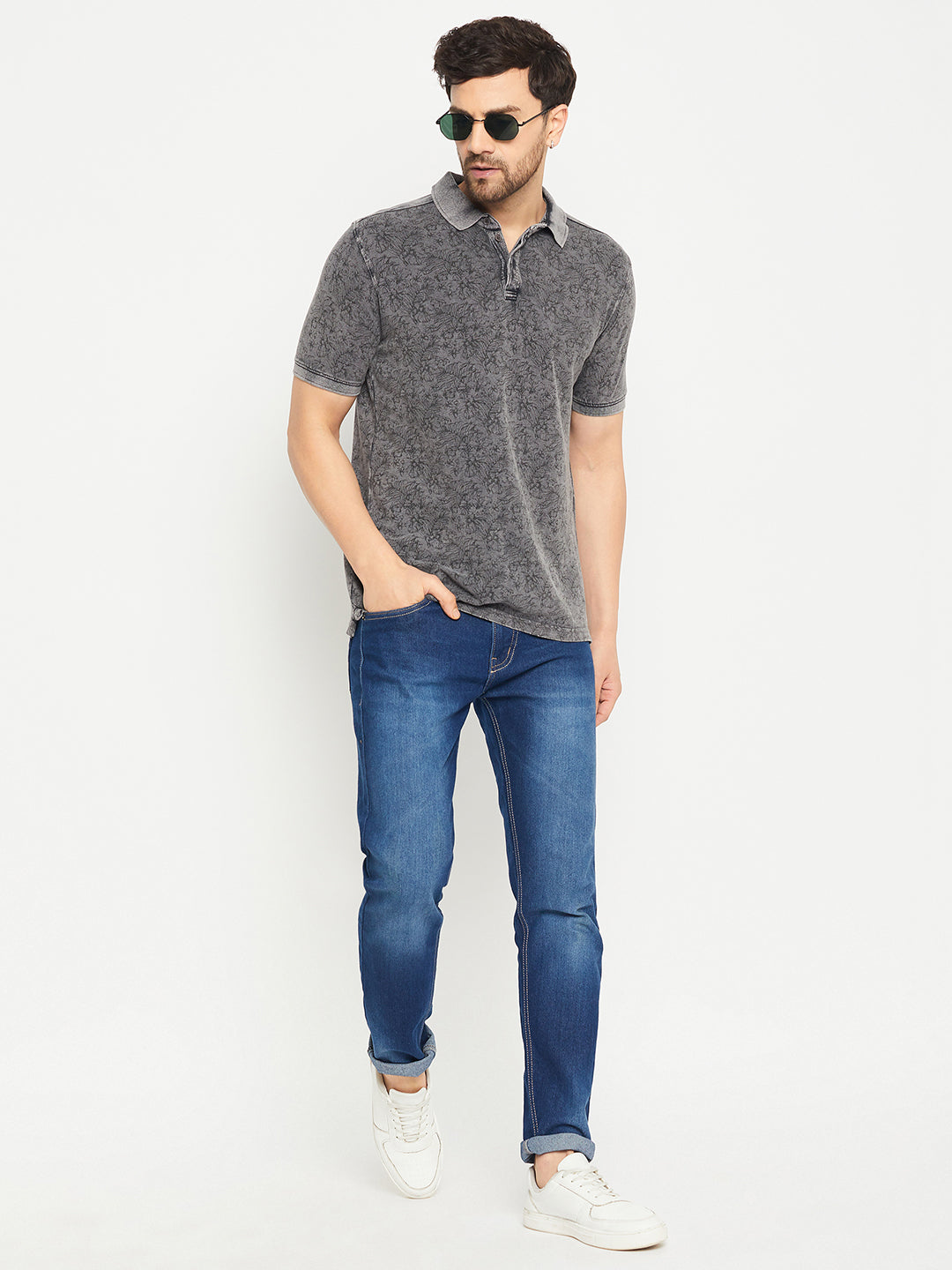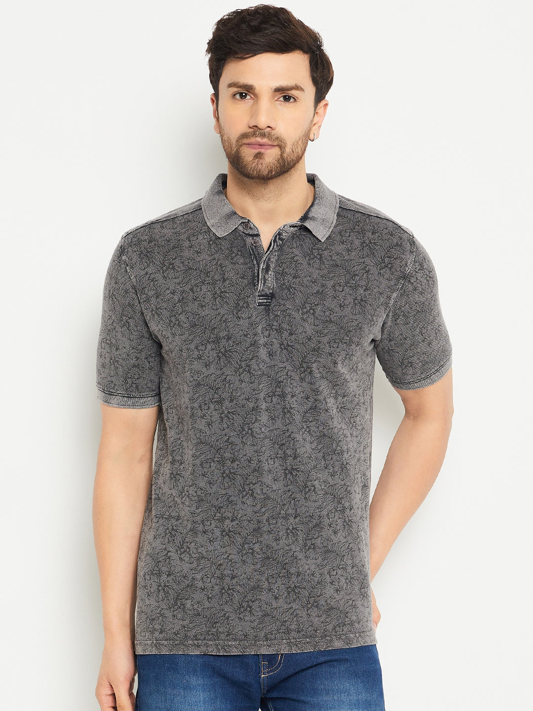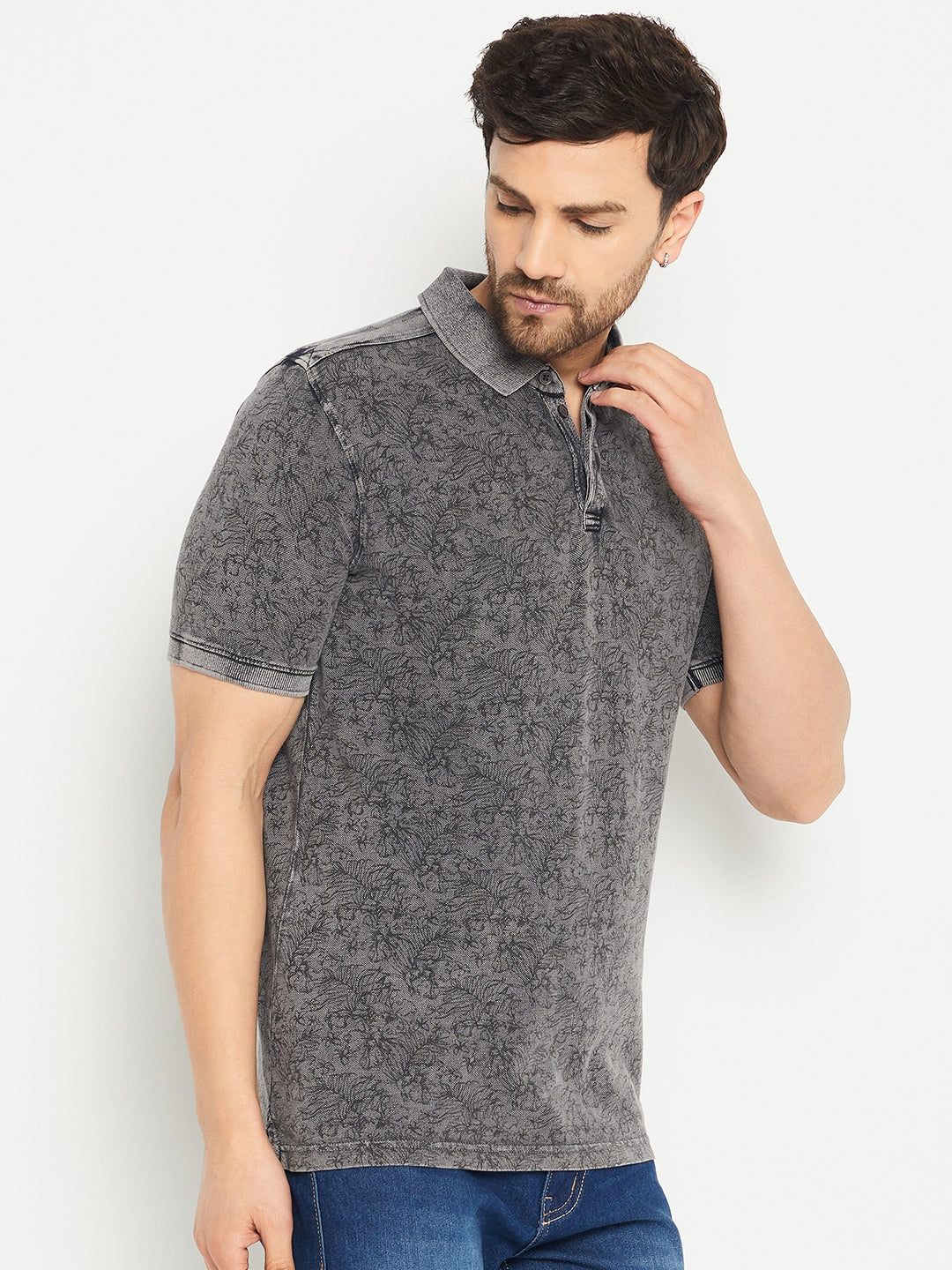 Club York Men Grey Half Sleeve Printed Polo Neck T Shirt 3917