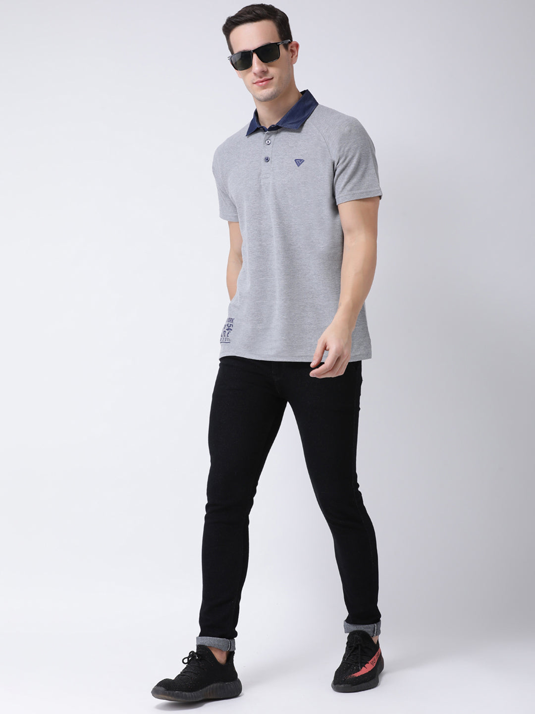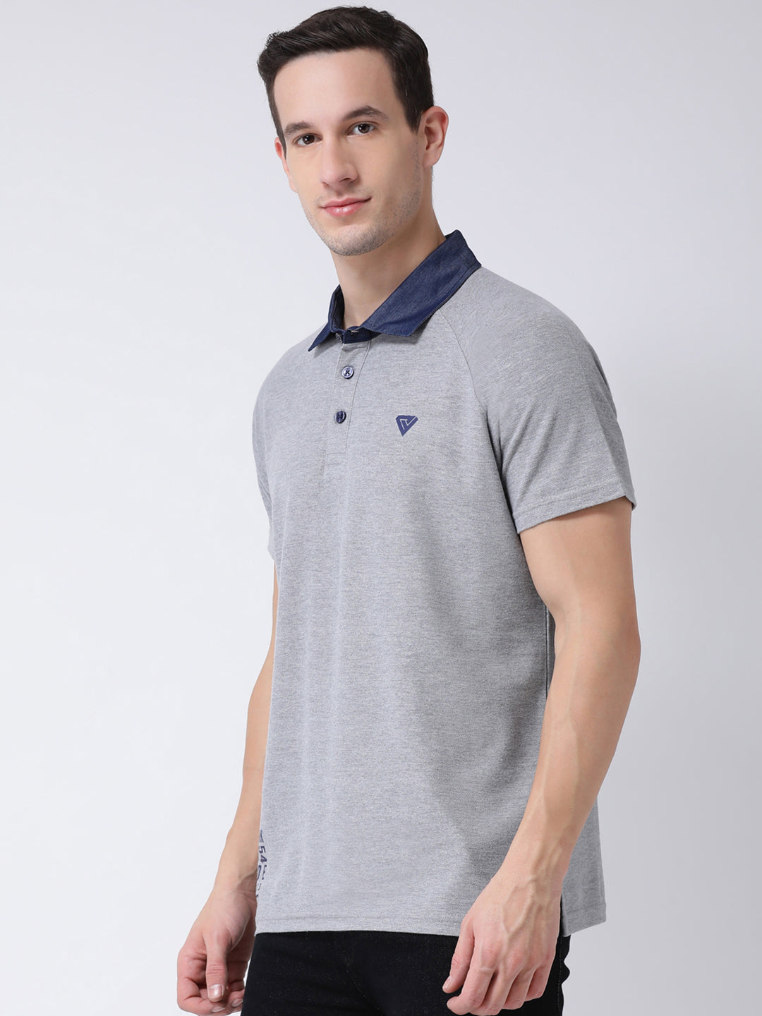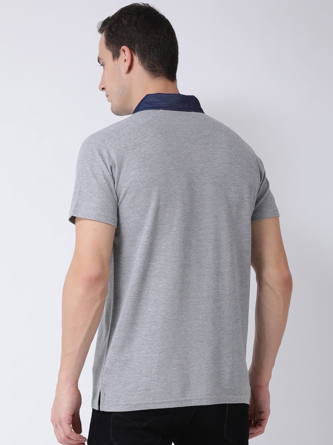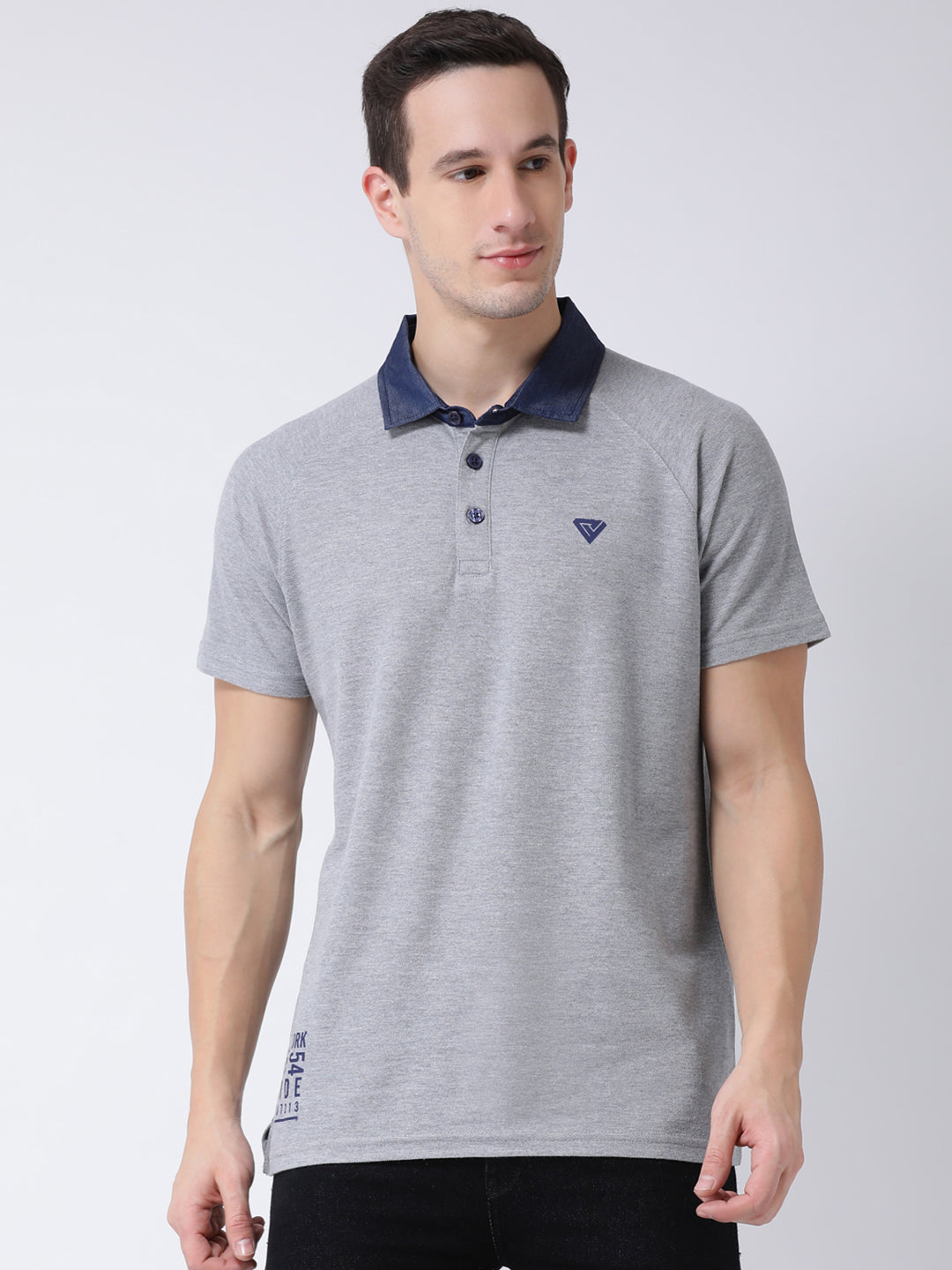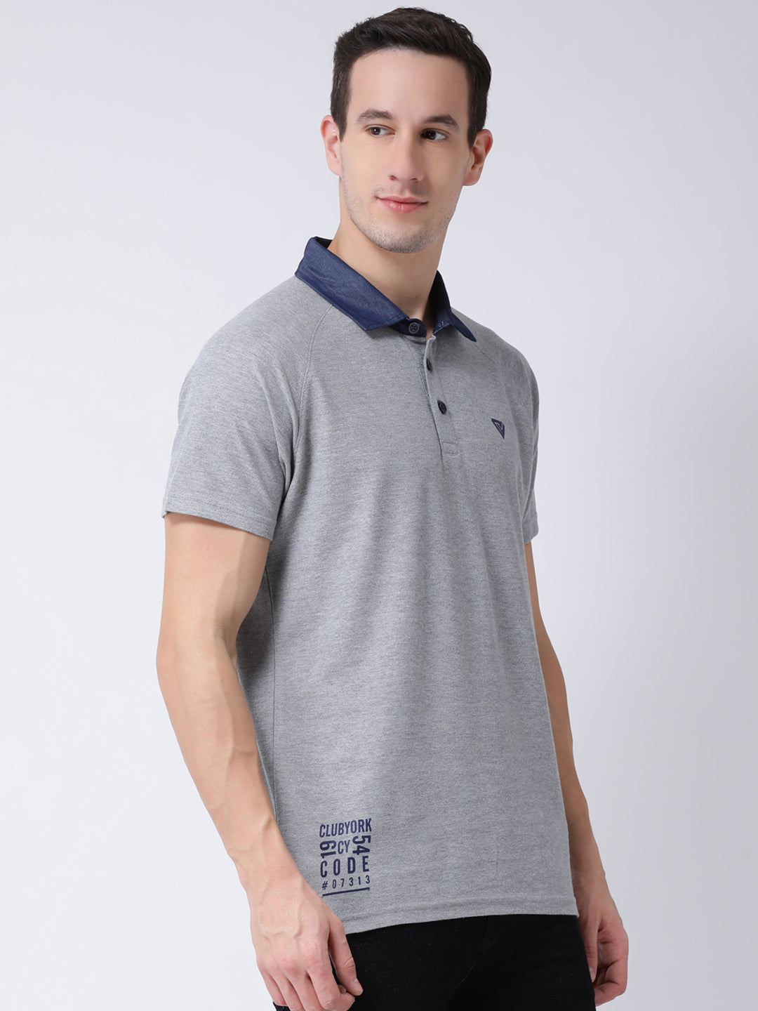 Club York Men Grey Solid Cotton Polo Collar T Shirt 5009