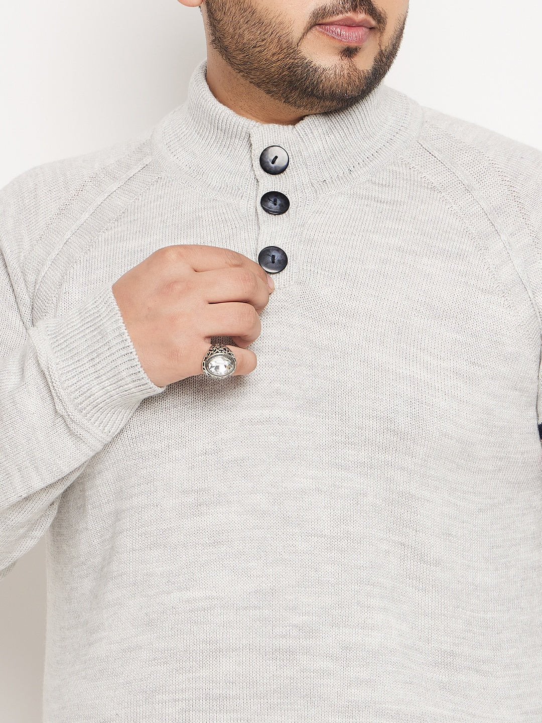 Grey High Neck Plus Size Sweater 1605