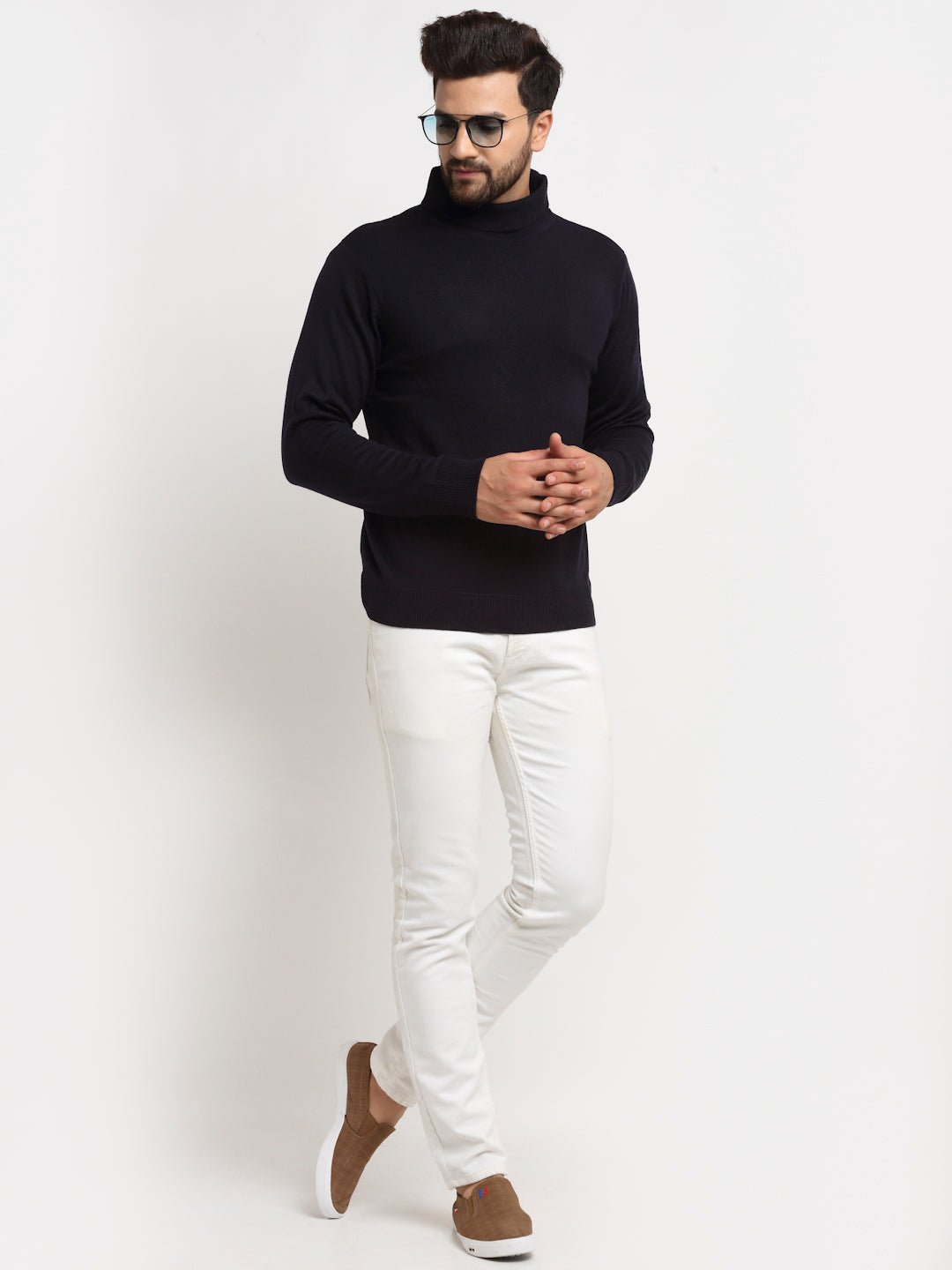 Navy Blue Solid High Neck Sweater 3484