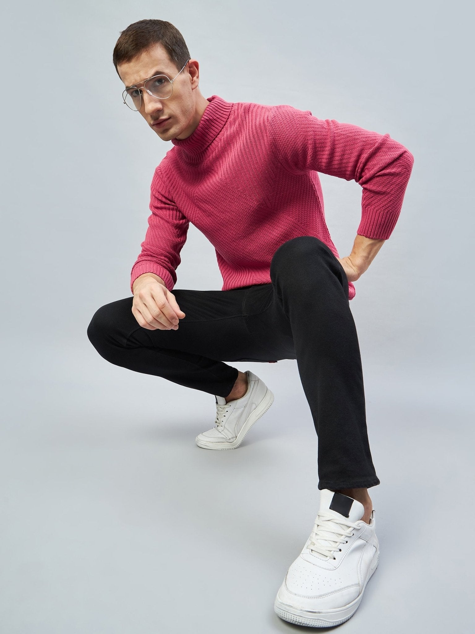 Pink Ribbed High Neck Sweater 6261