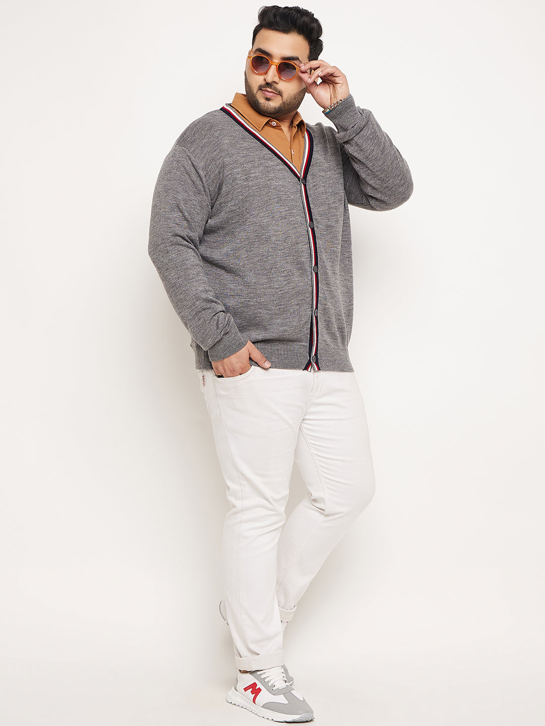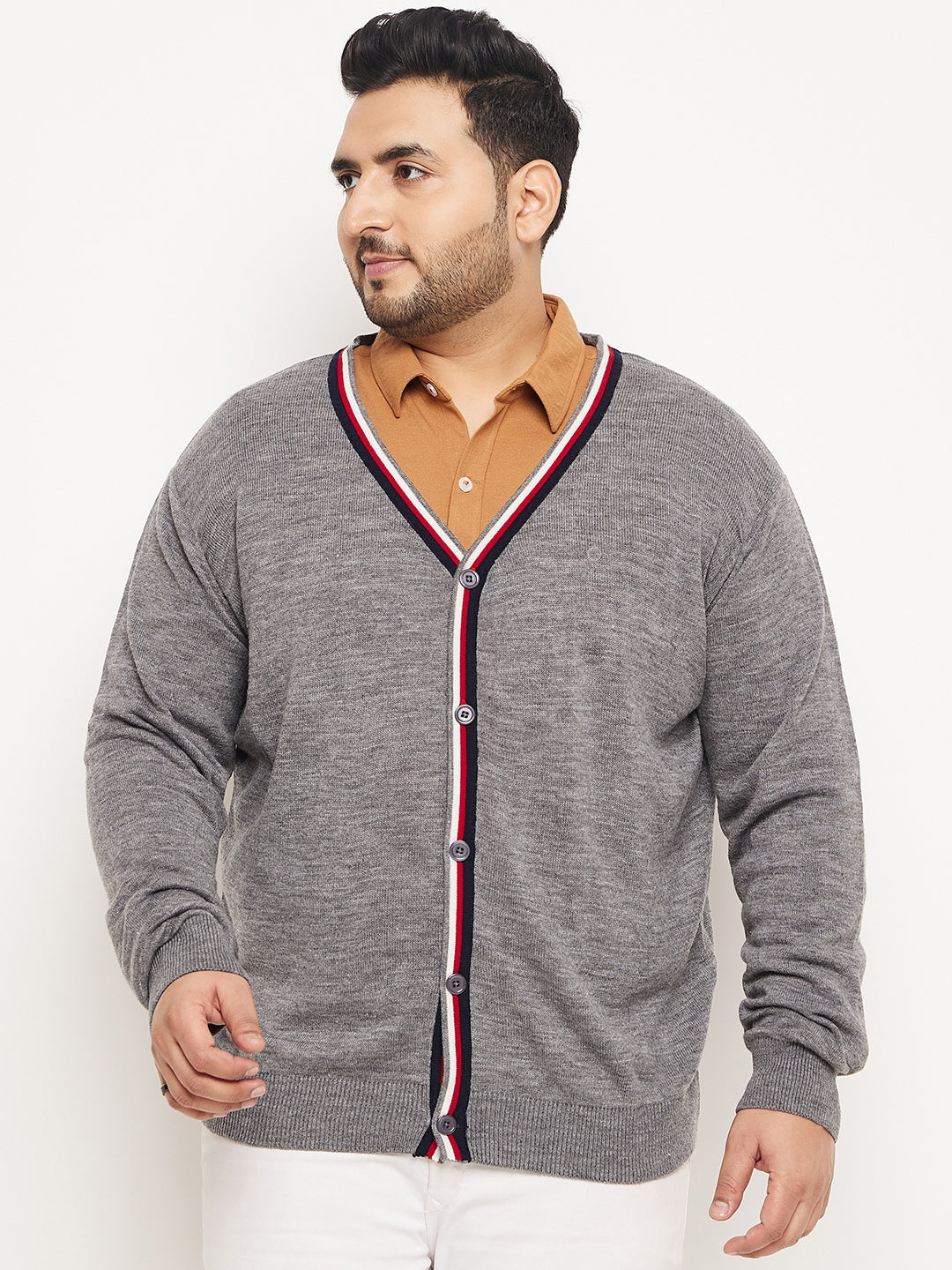 Club York Men Grey White Solid Cardigan 7559