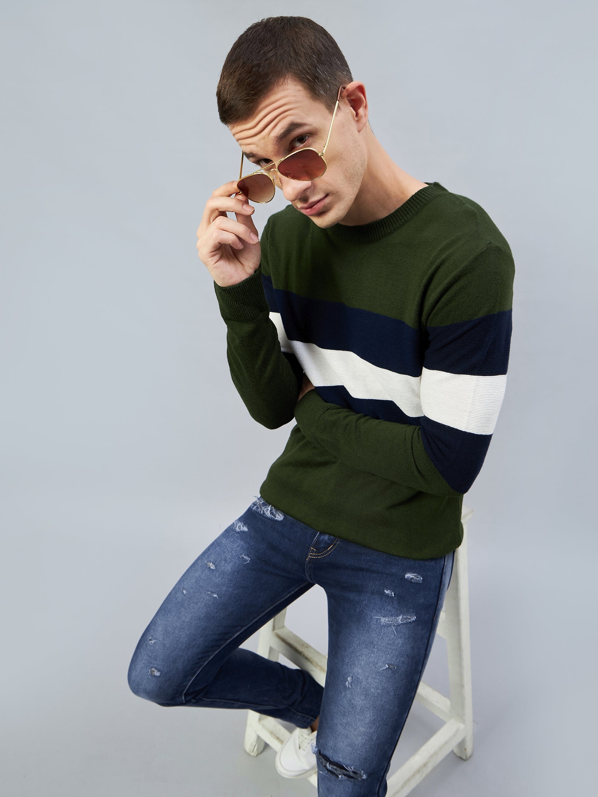 Multi Colourblocked Round Neck Sweater 8578