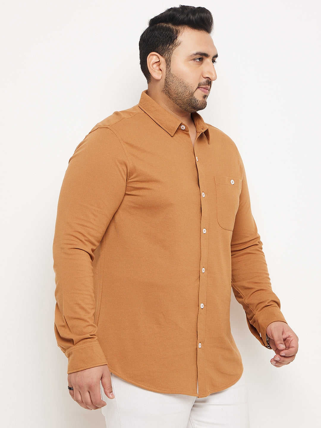 Club York Men Khaki Full Sleeve Solid Plus Size Shirt 7902
