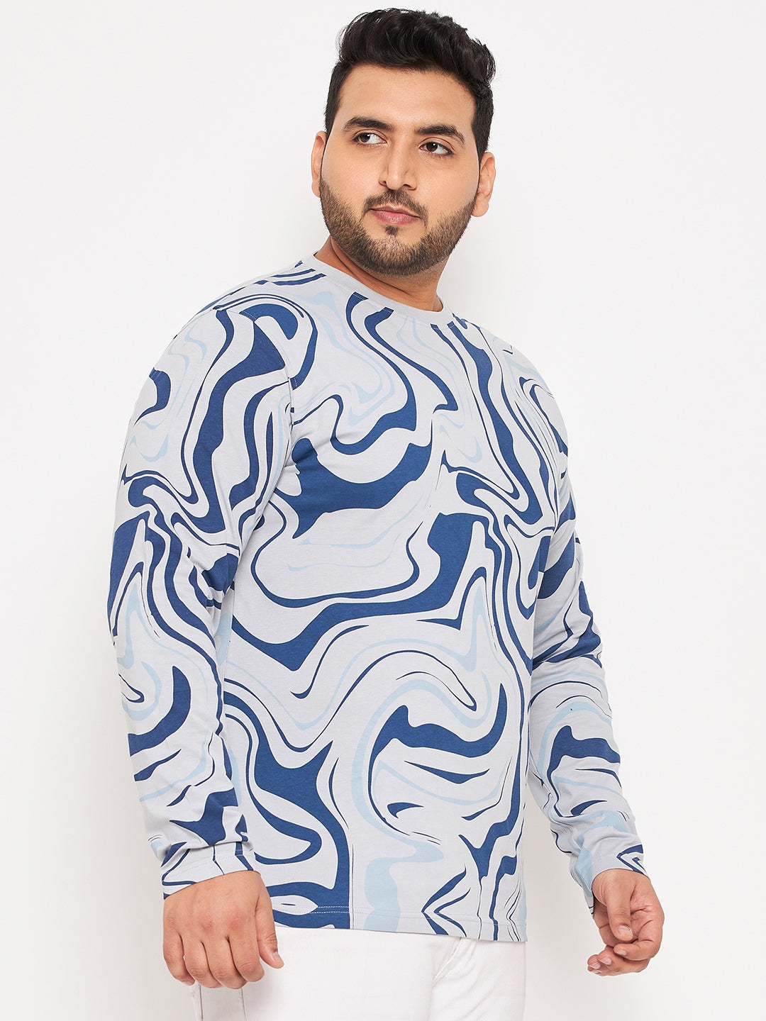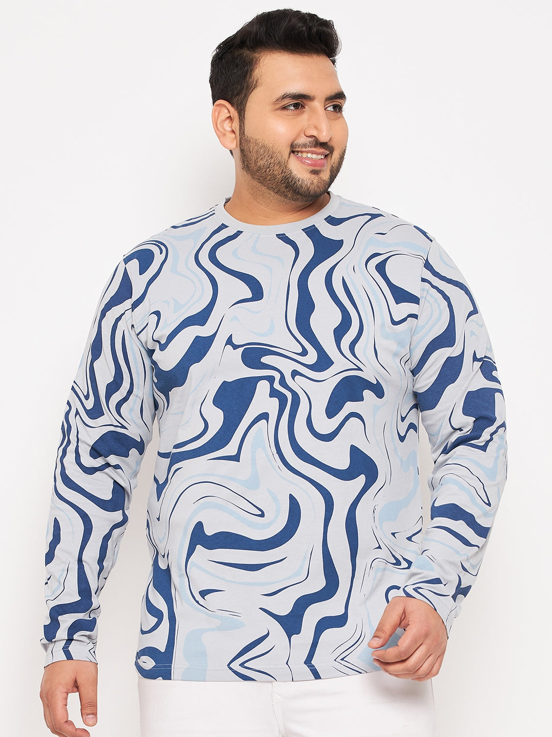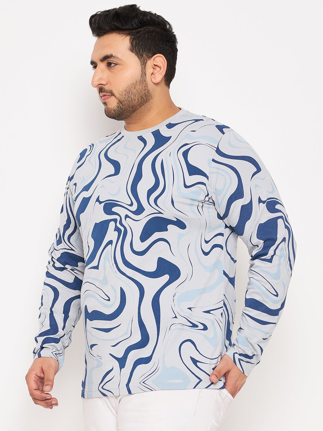 Club York Men Light Grey Printed Full Sleeve Round Neck Plus Size T Shirt 6718