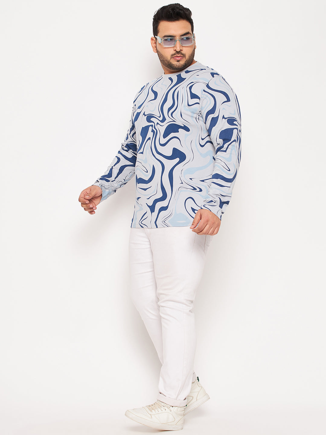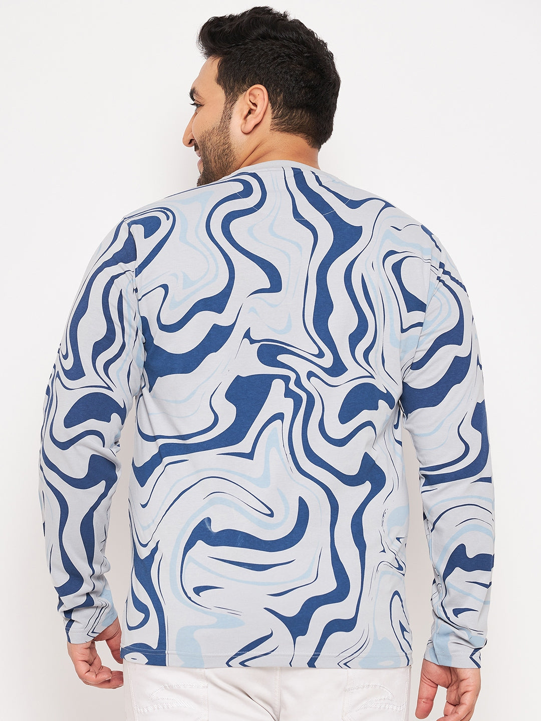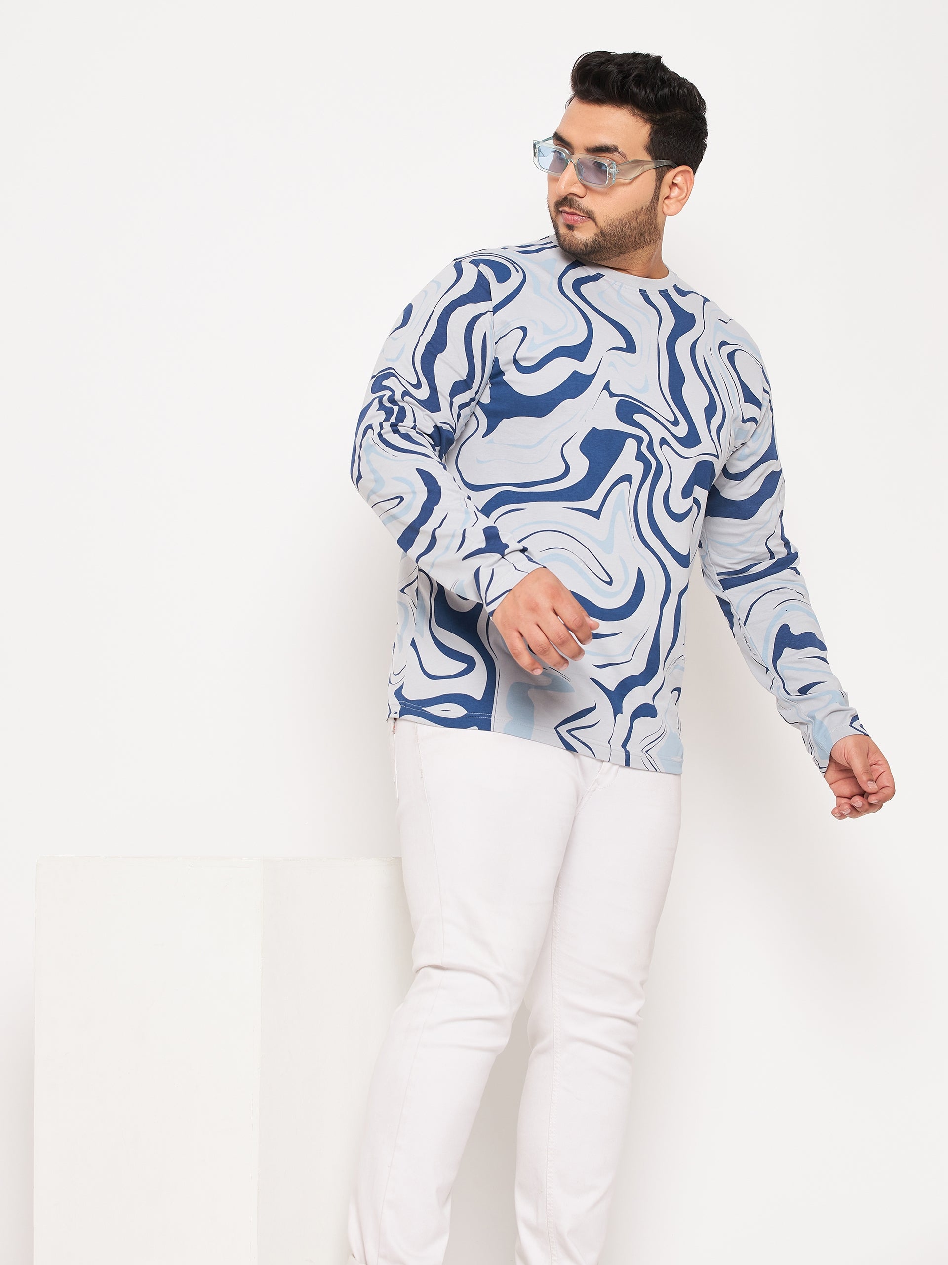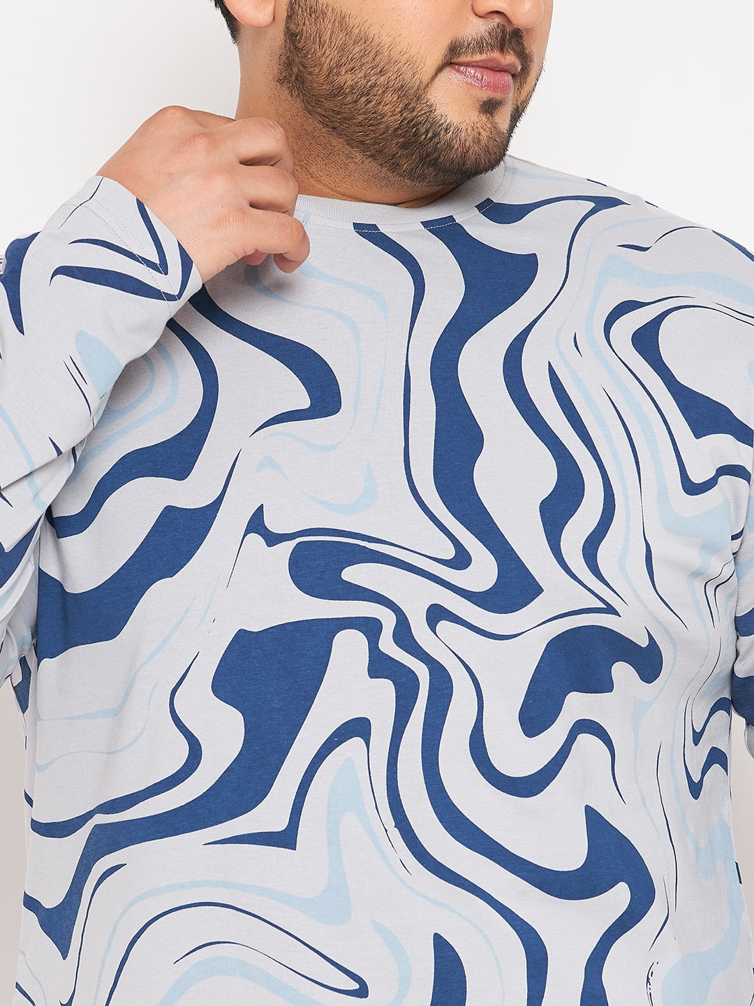 Club York Men Light Grey Printed Full Sleeve Round Neck Plus Size T Shirt 6718