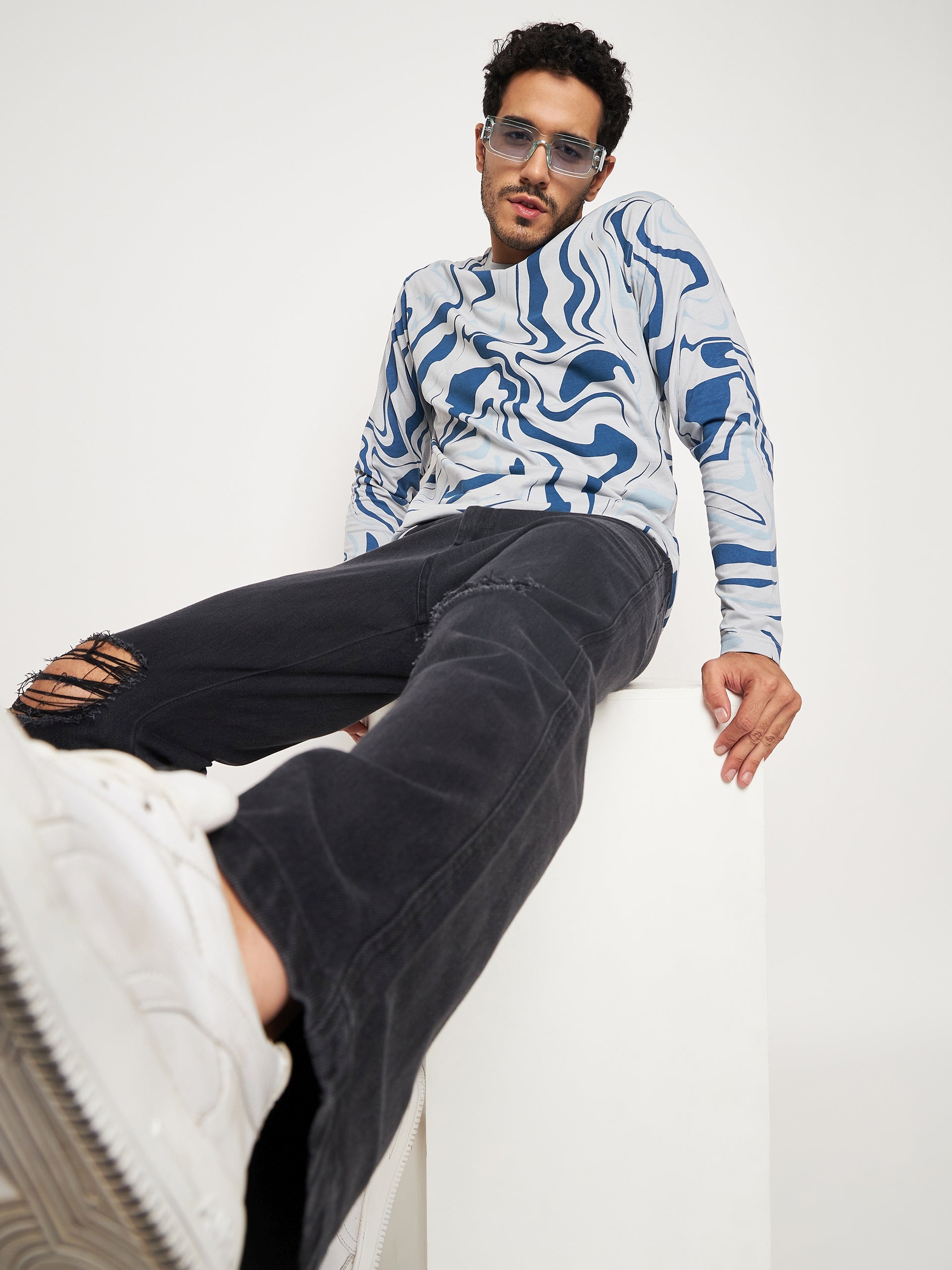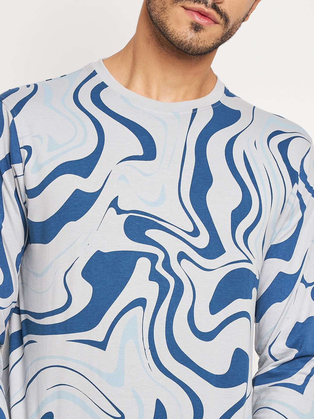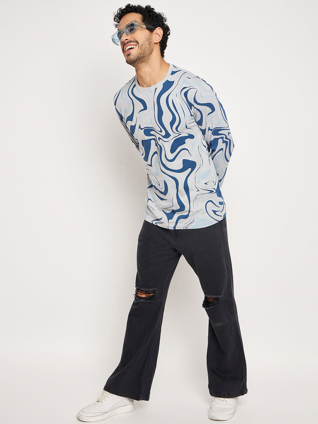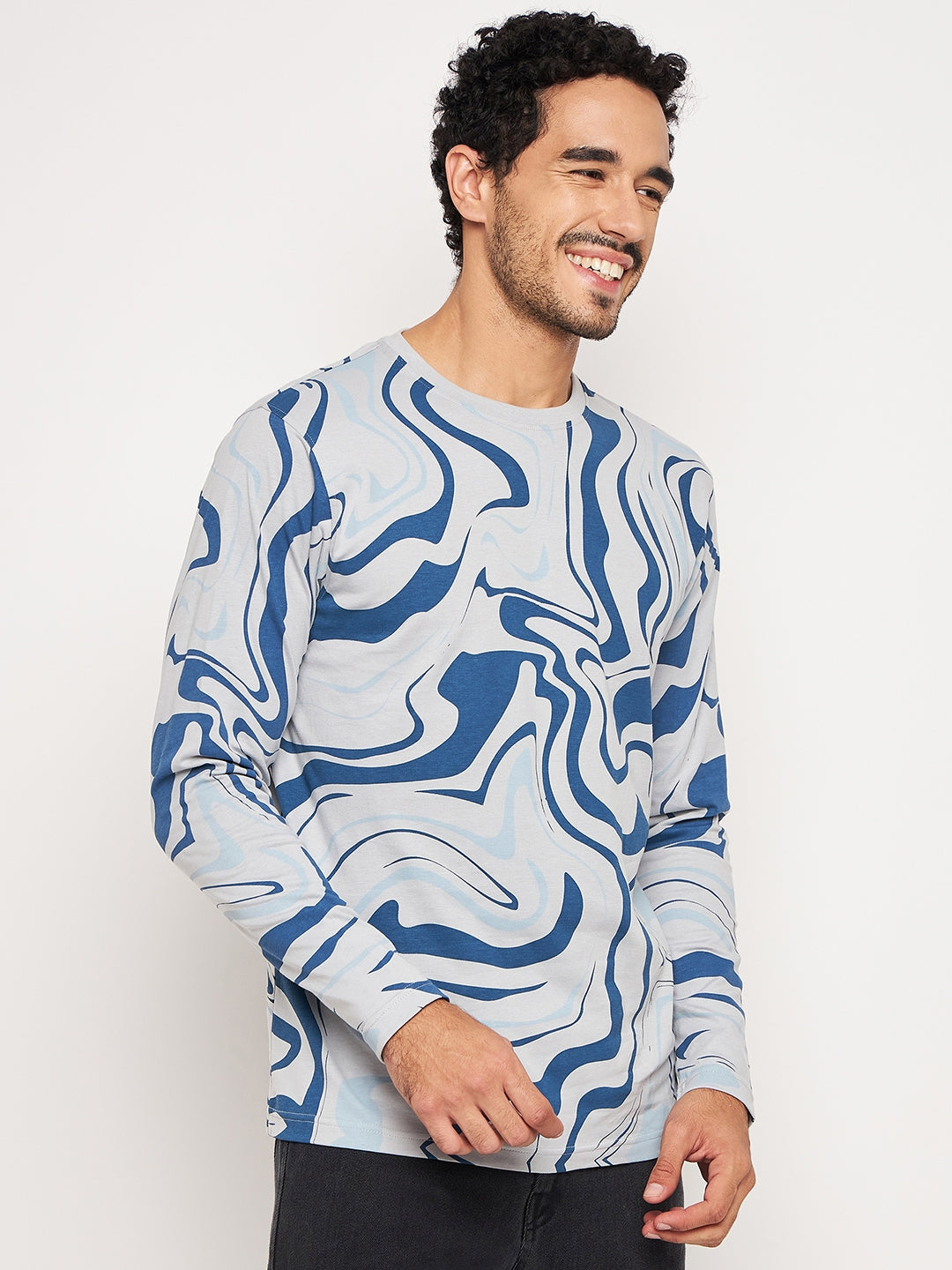 Club York Men Light Grey Printed Full Sleeve Round Neck T Shirt 3714