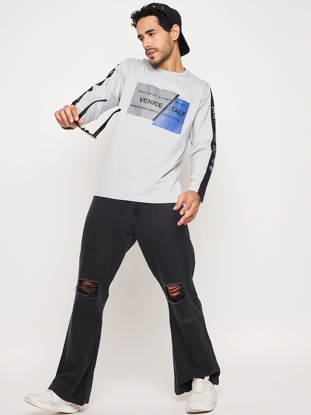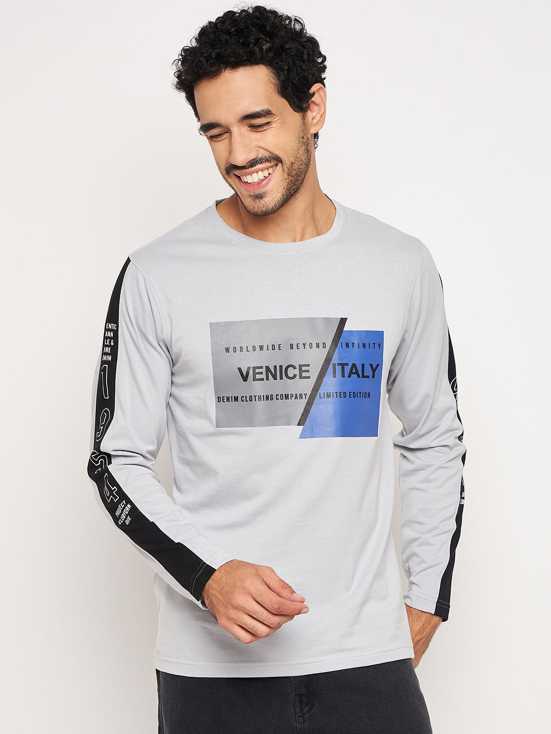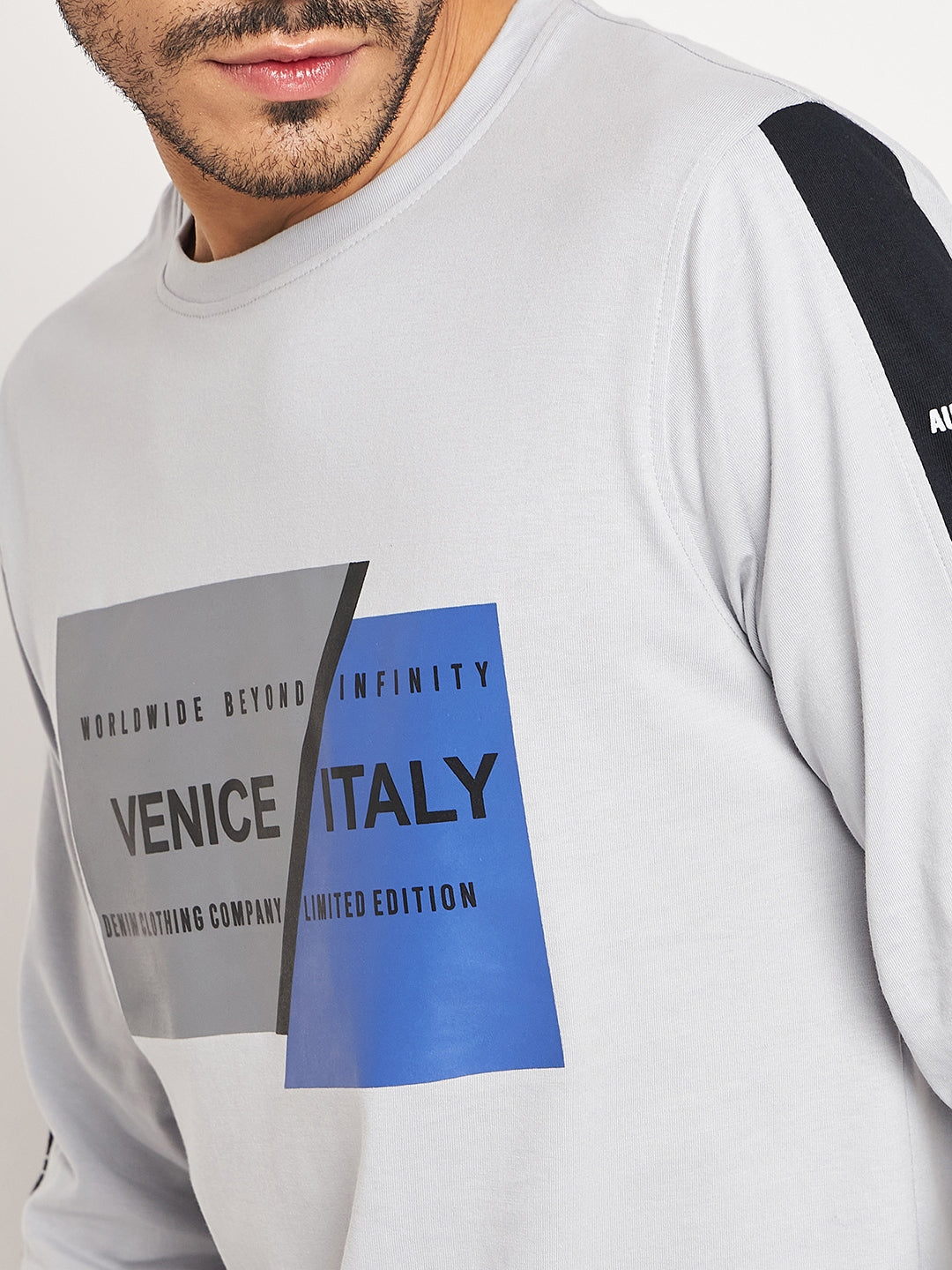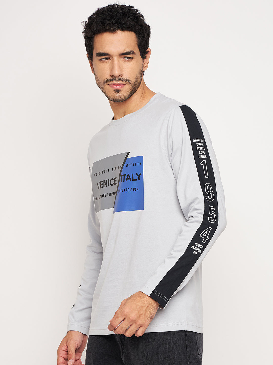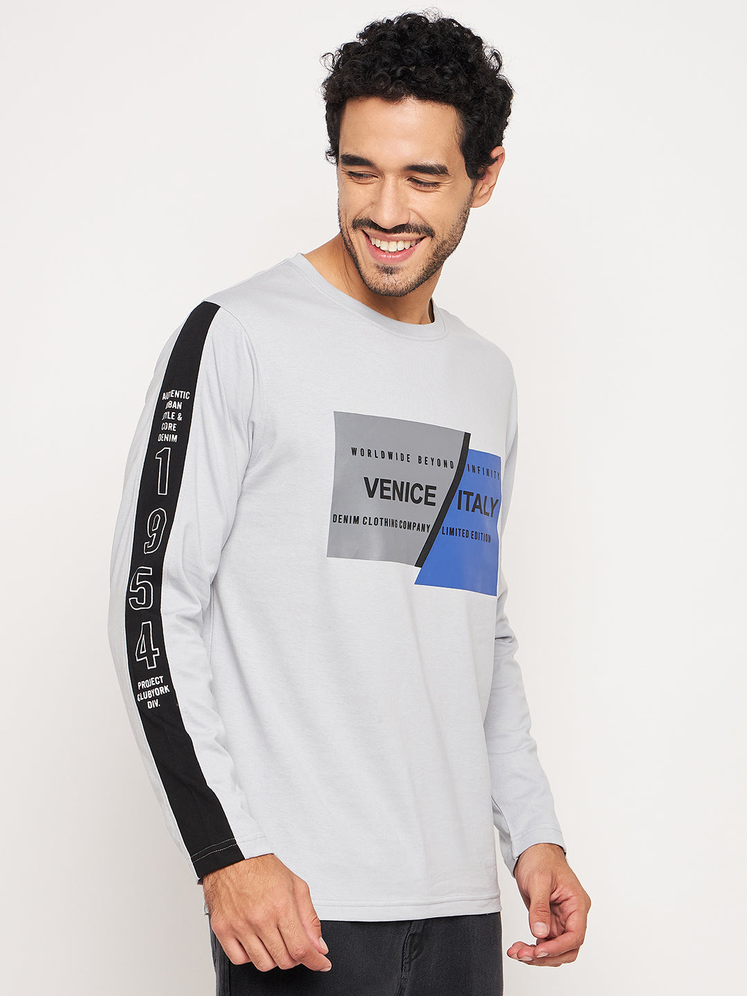 Club York Men Light Grey Printed Full Sleeve Round Neck Tshirt 2184
