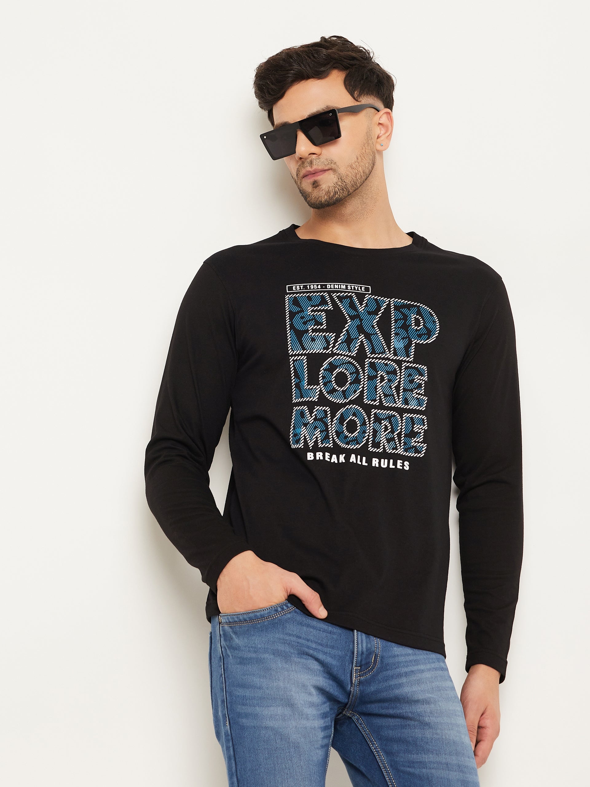 Black Printed Round Neck Plus Size T-Shirt 8114