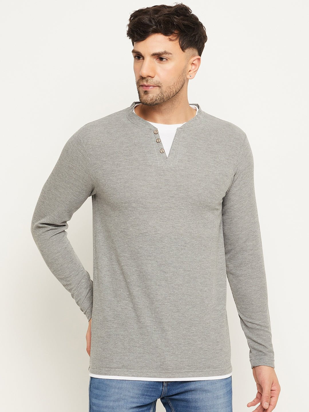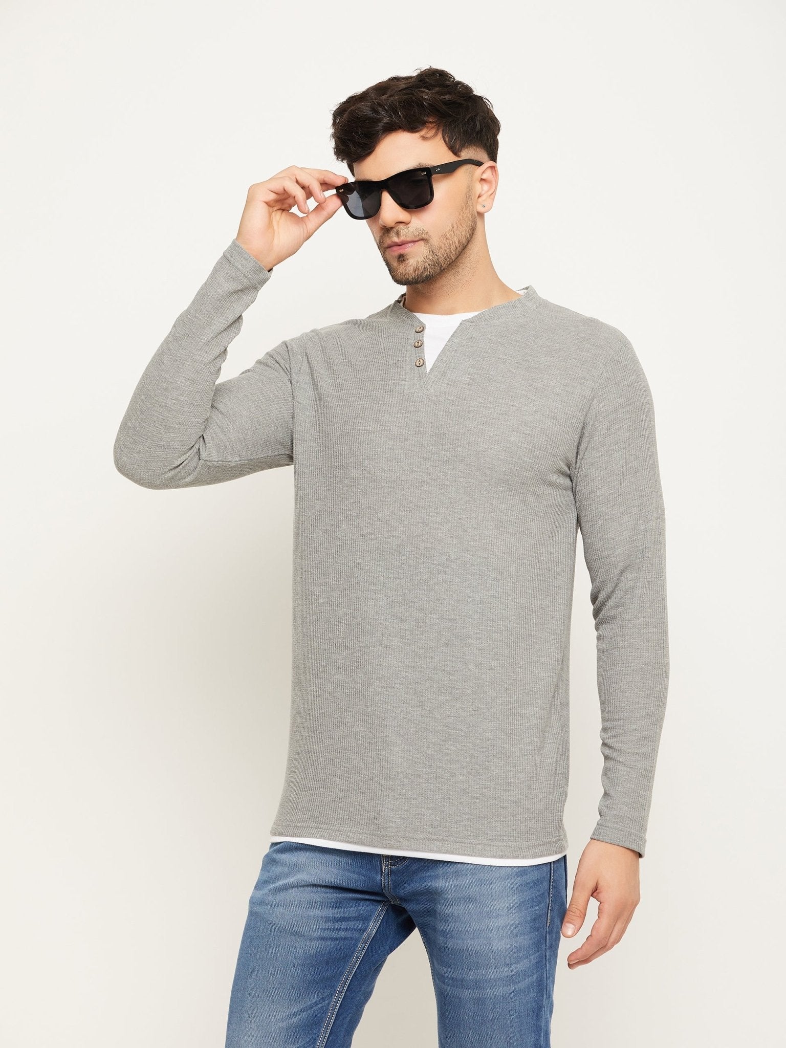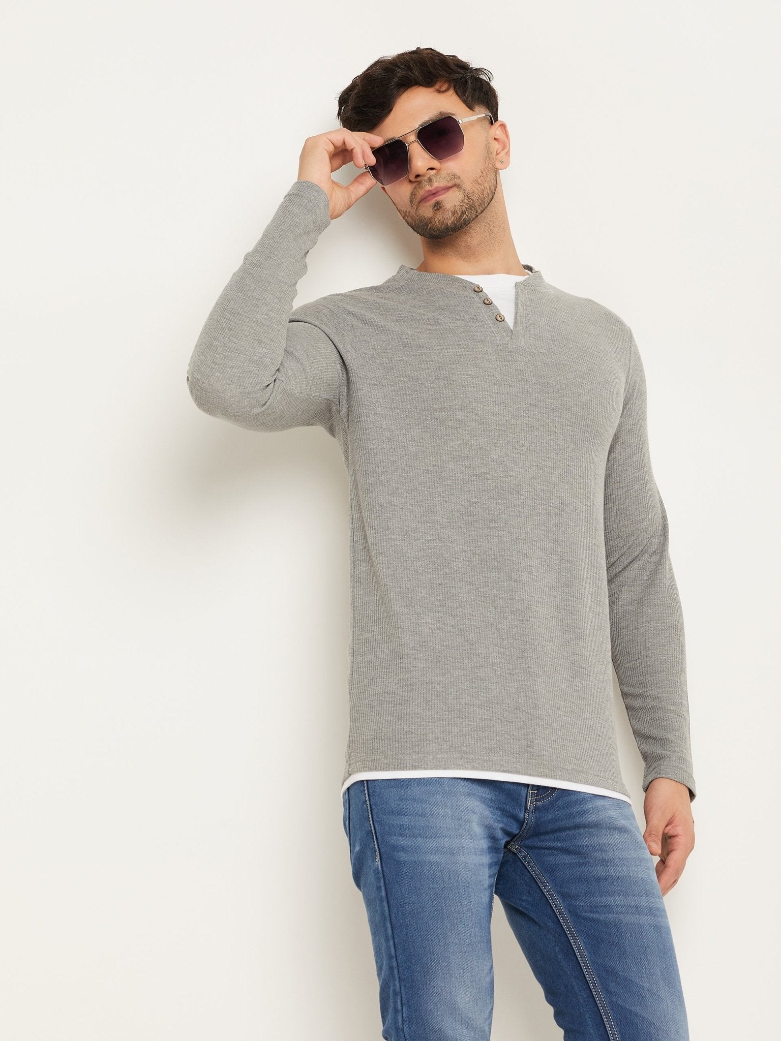 Club York Men Light Grey Solid Full Sleeve V Neck T Shirt Cypm1357 3194