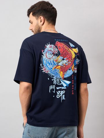Men Solid Light Blue Round Neck Oversized T Shirt