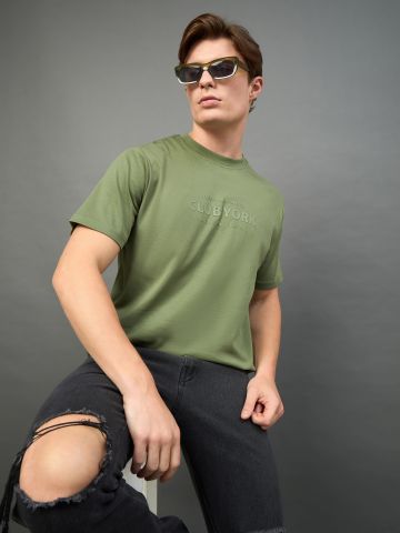Olive Green Printed Round Neck Plus Size T-Shirt 5450