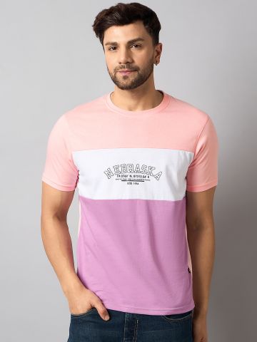 Bright Peach Printed Round Neck Plus Size T-Shirt 9770
