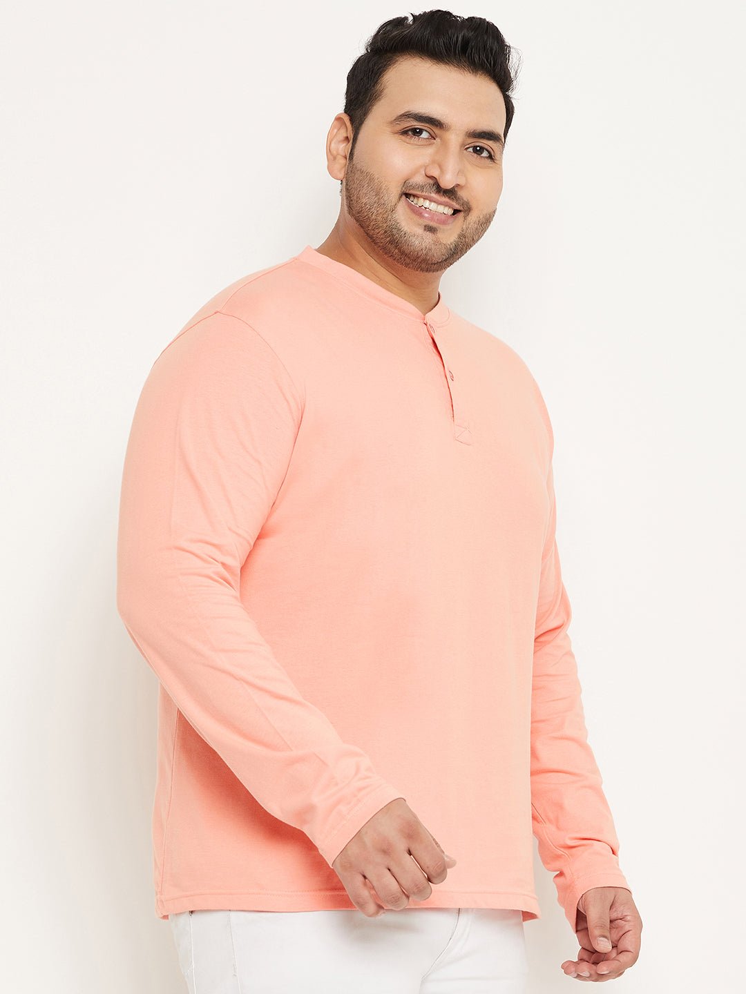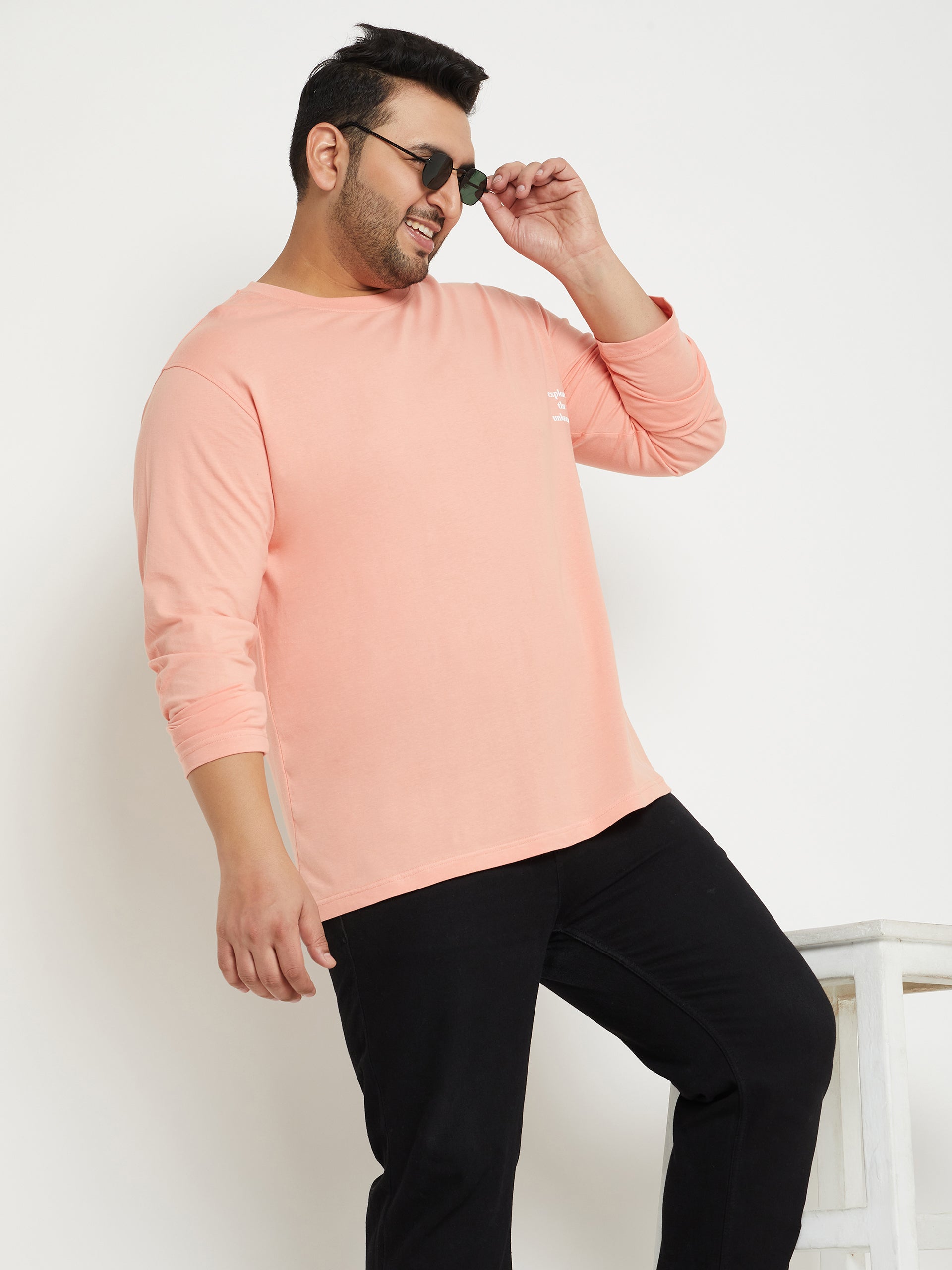 Bright Peach Printed Round Neck Plus Size T-Shirt 3878