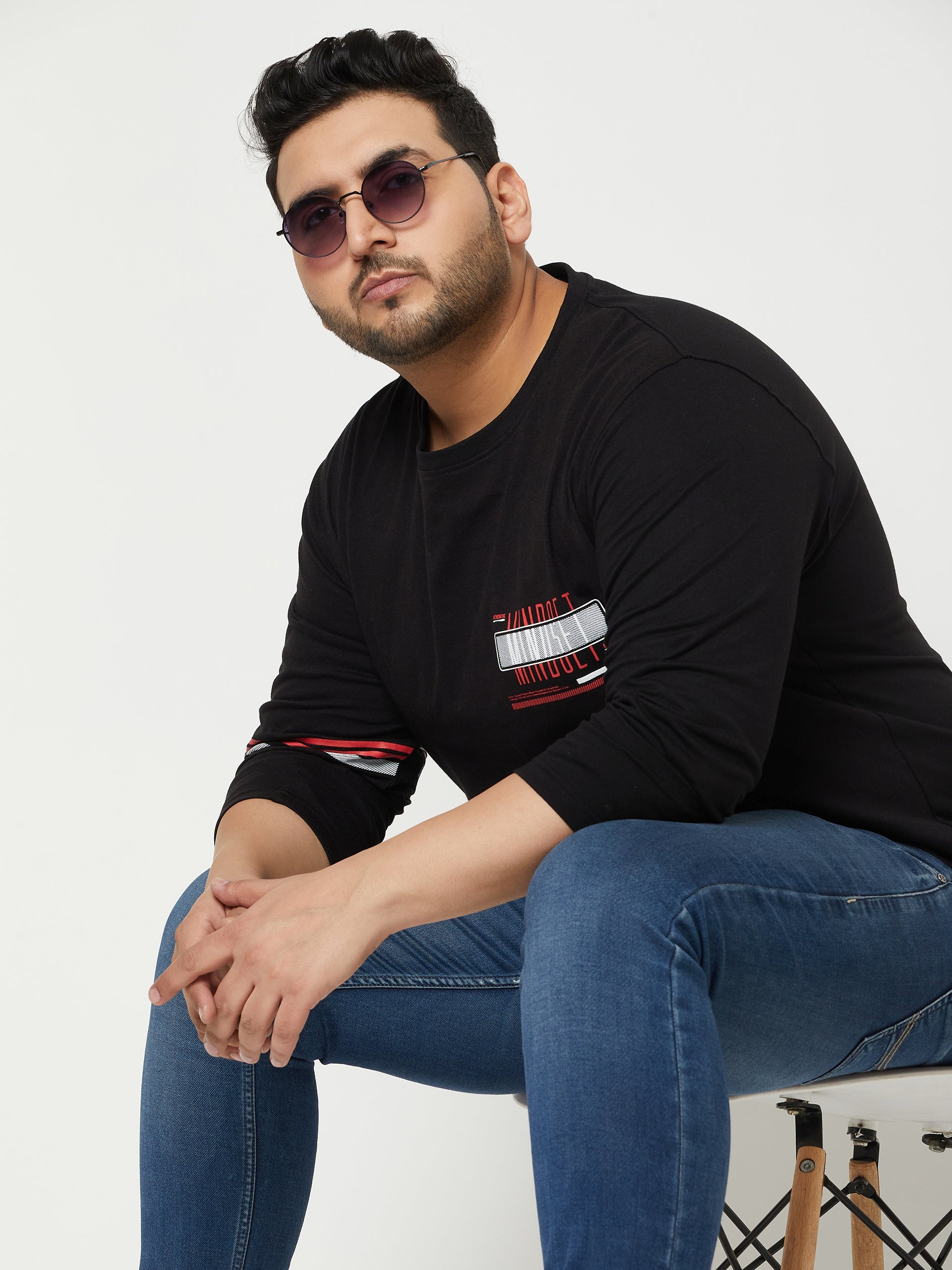 Black Printed Round Neck Plus Size T-Shirt 8824