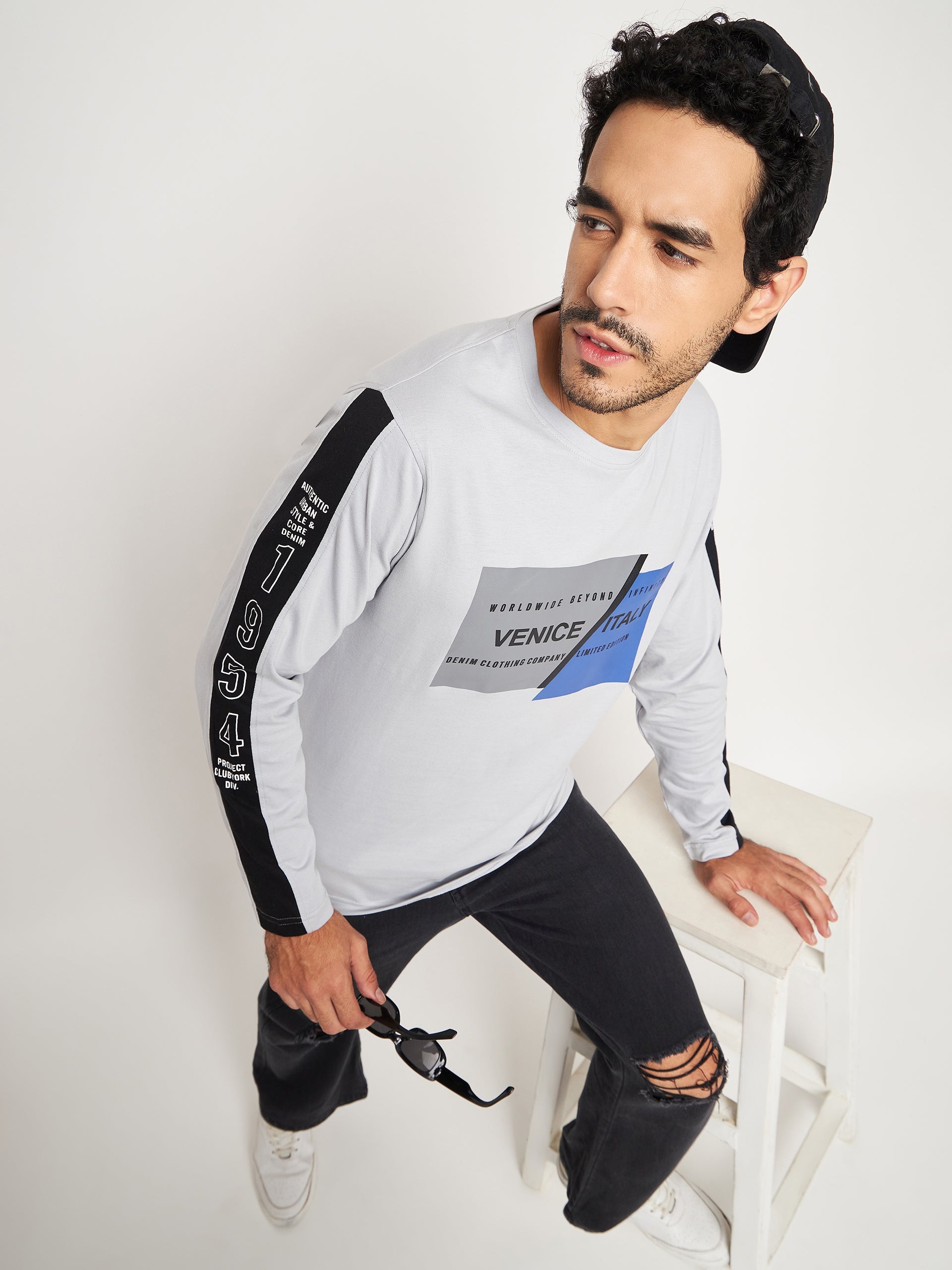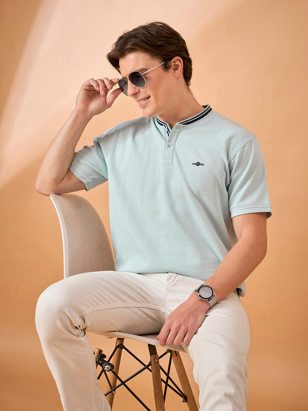 Men Sky Blue Striped Regular Fit T-Shirt 8310