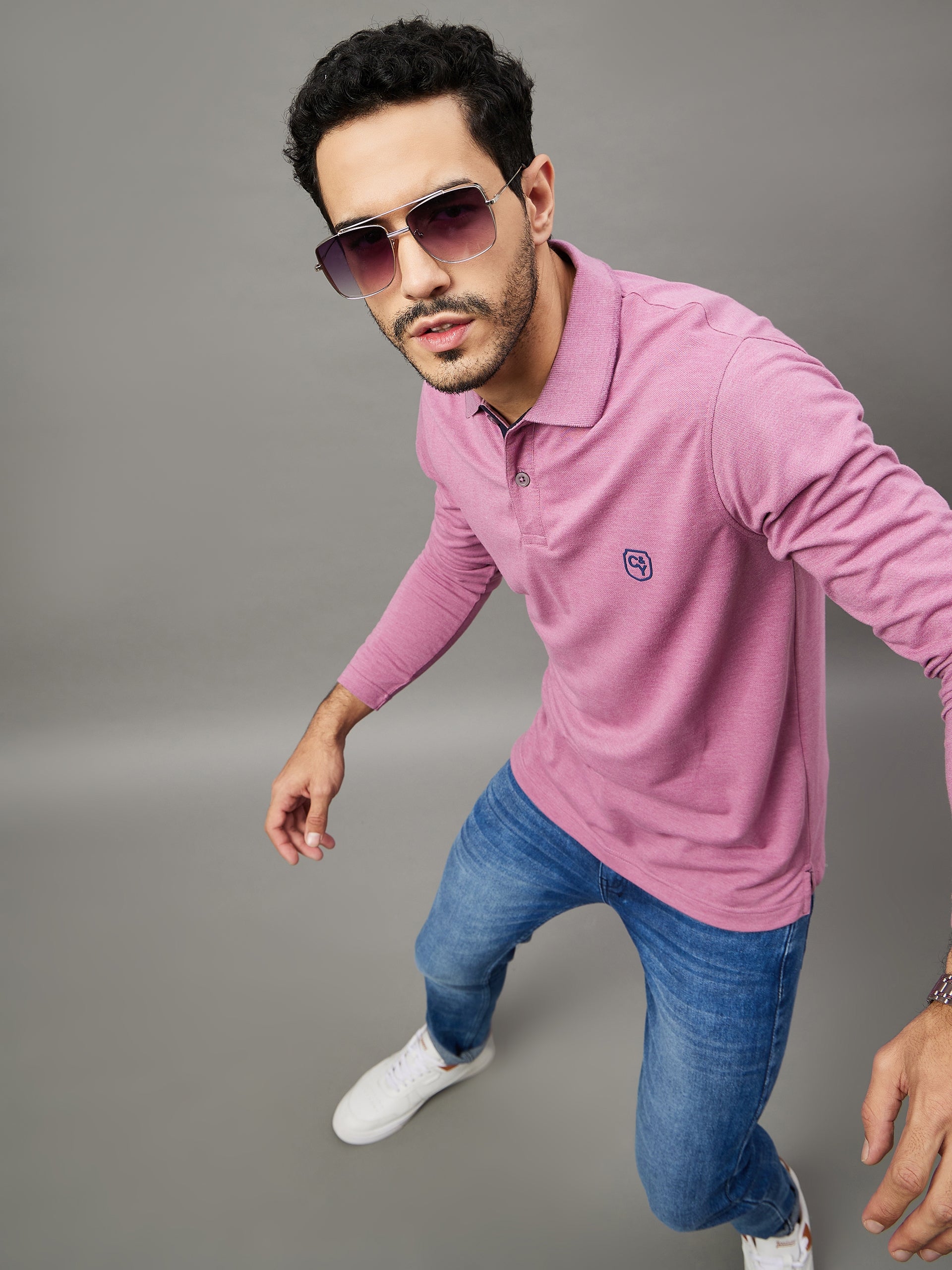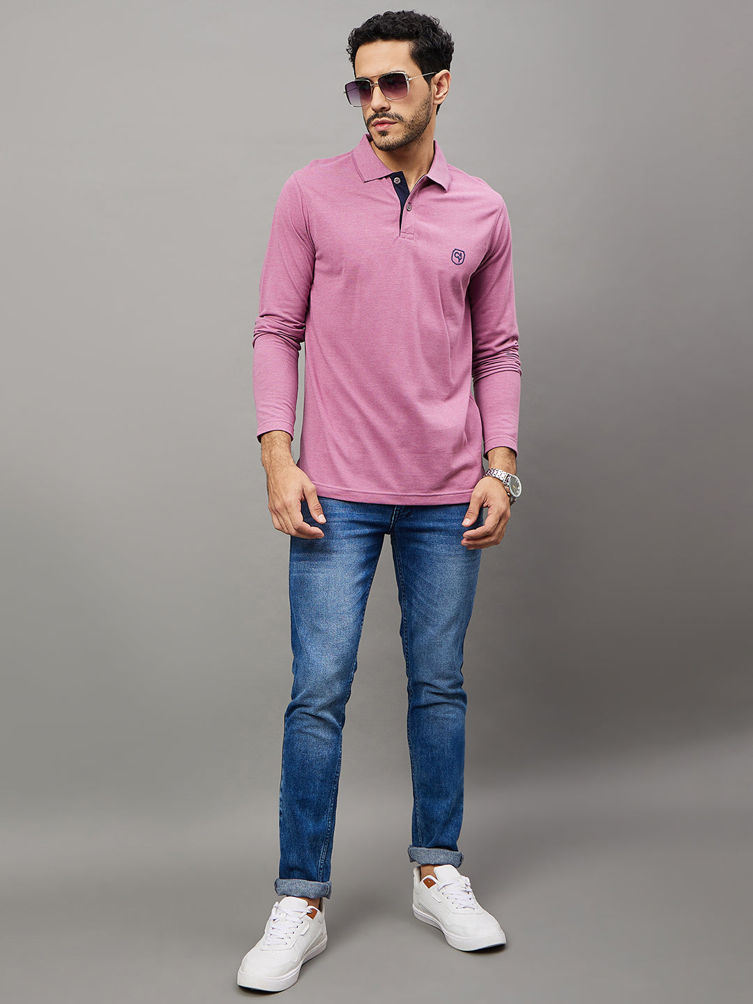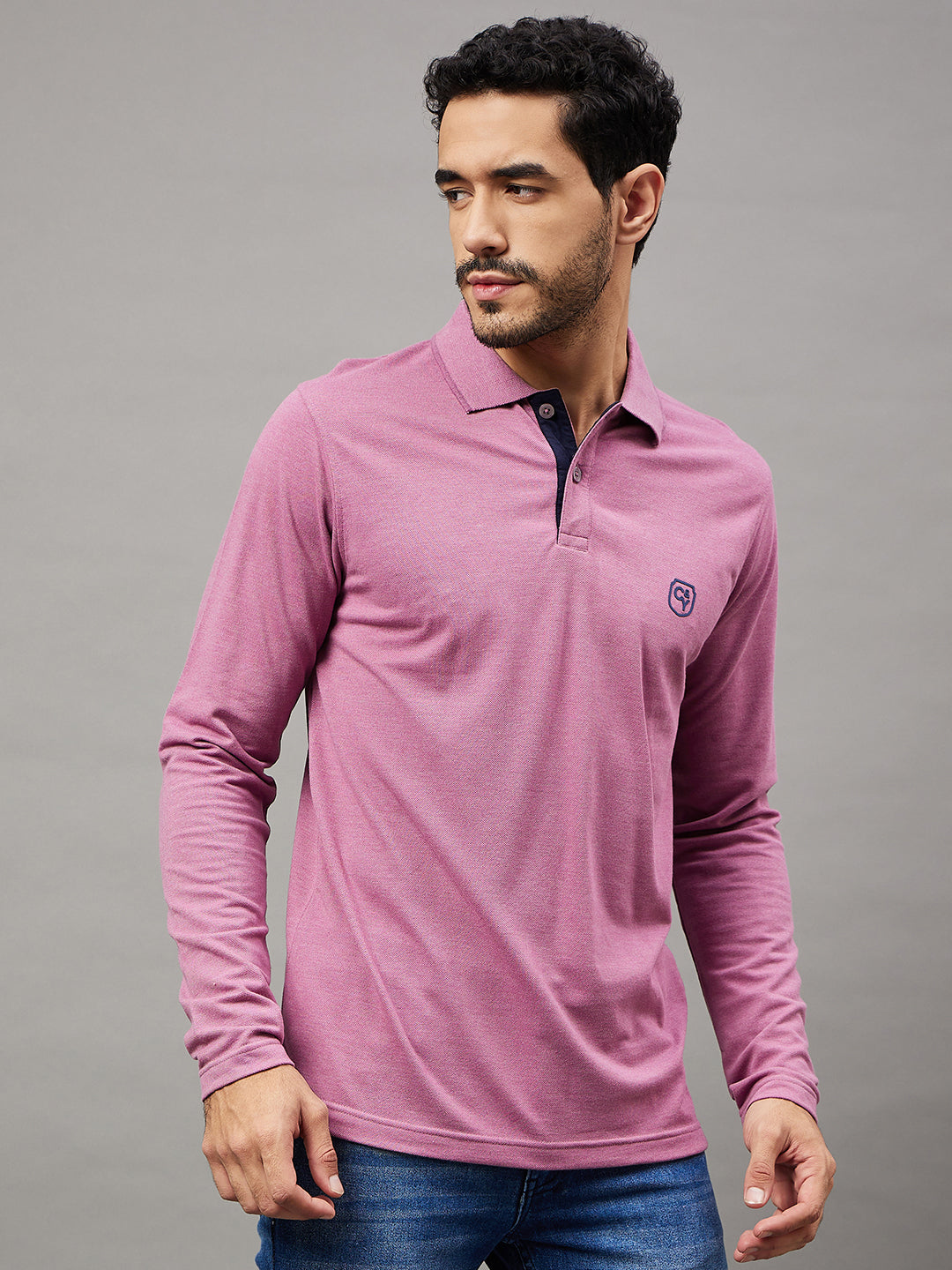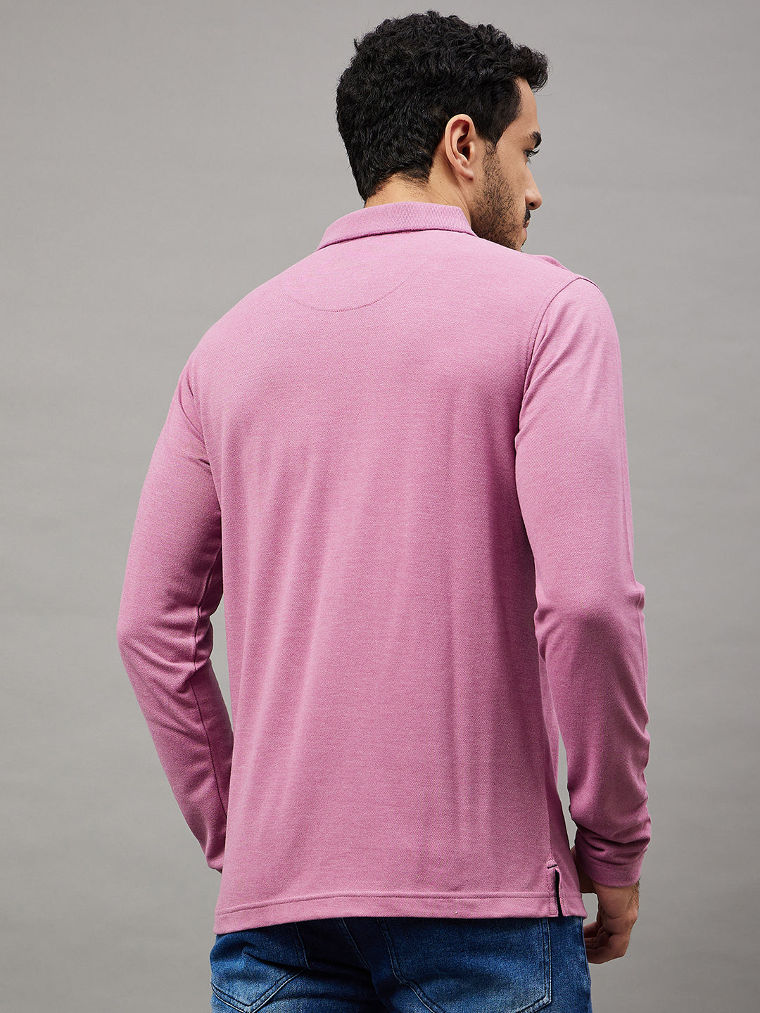 Club York Men Lilac Solid Full Sleeve Polo Neck T Shirt 5738