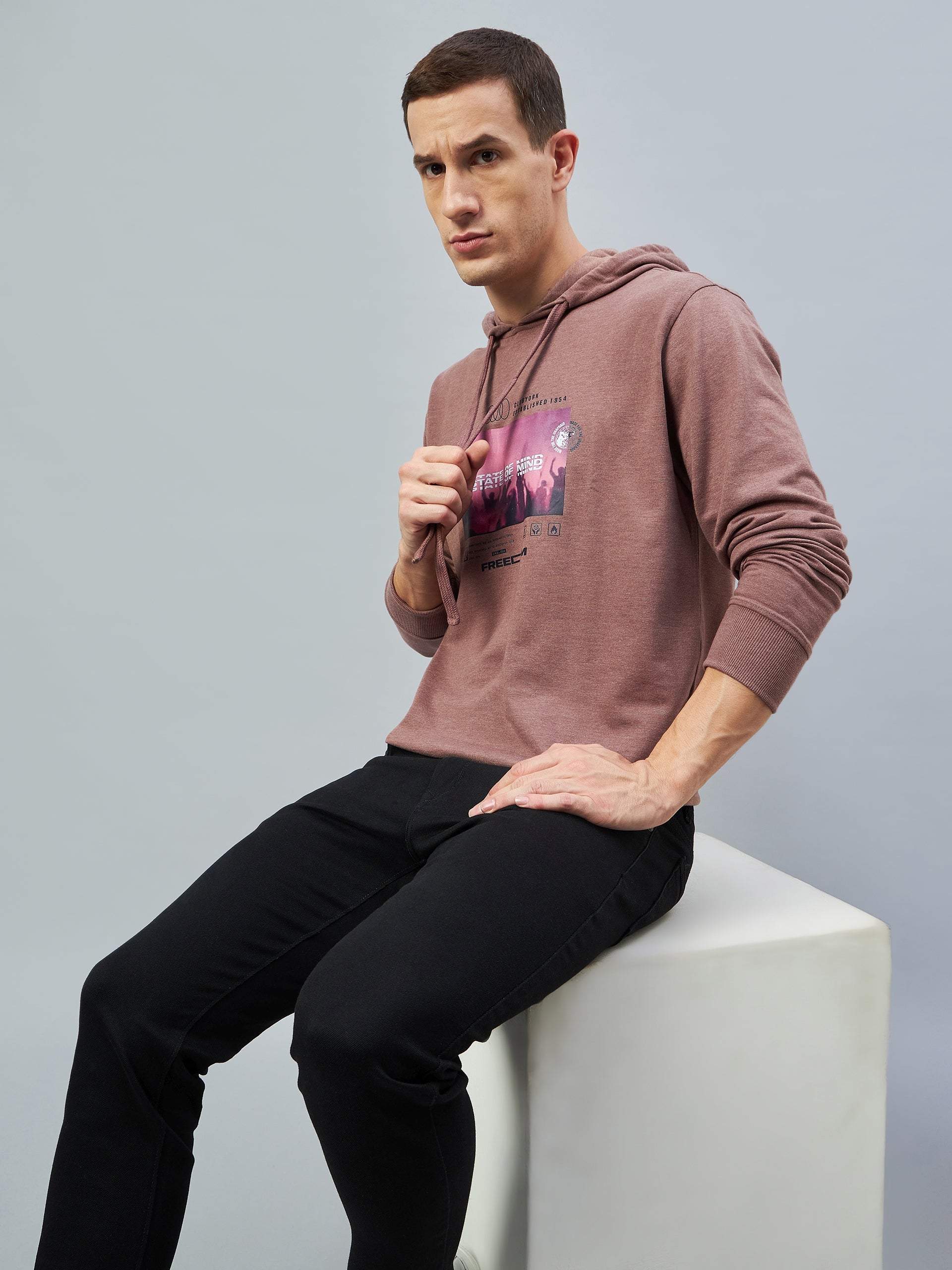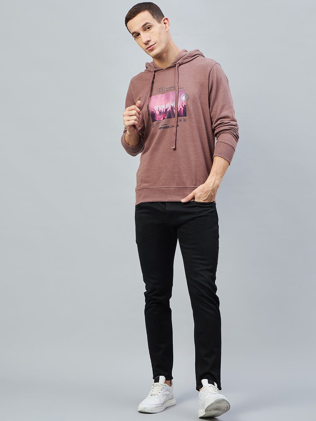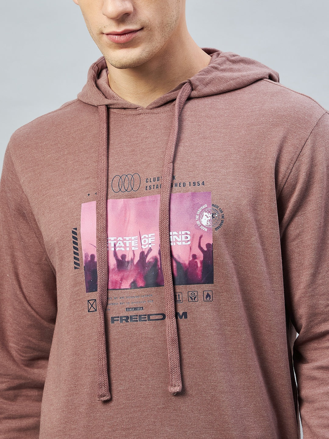 Club York Men Mauve Printed Full Sleeve Hooded Sweatshirt 5128