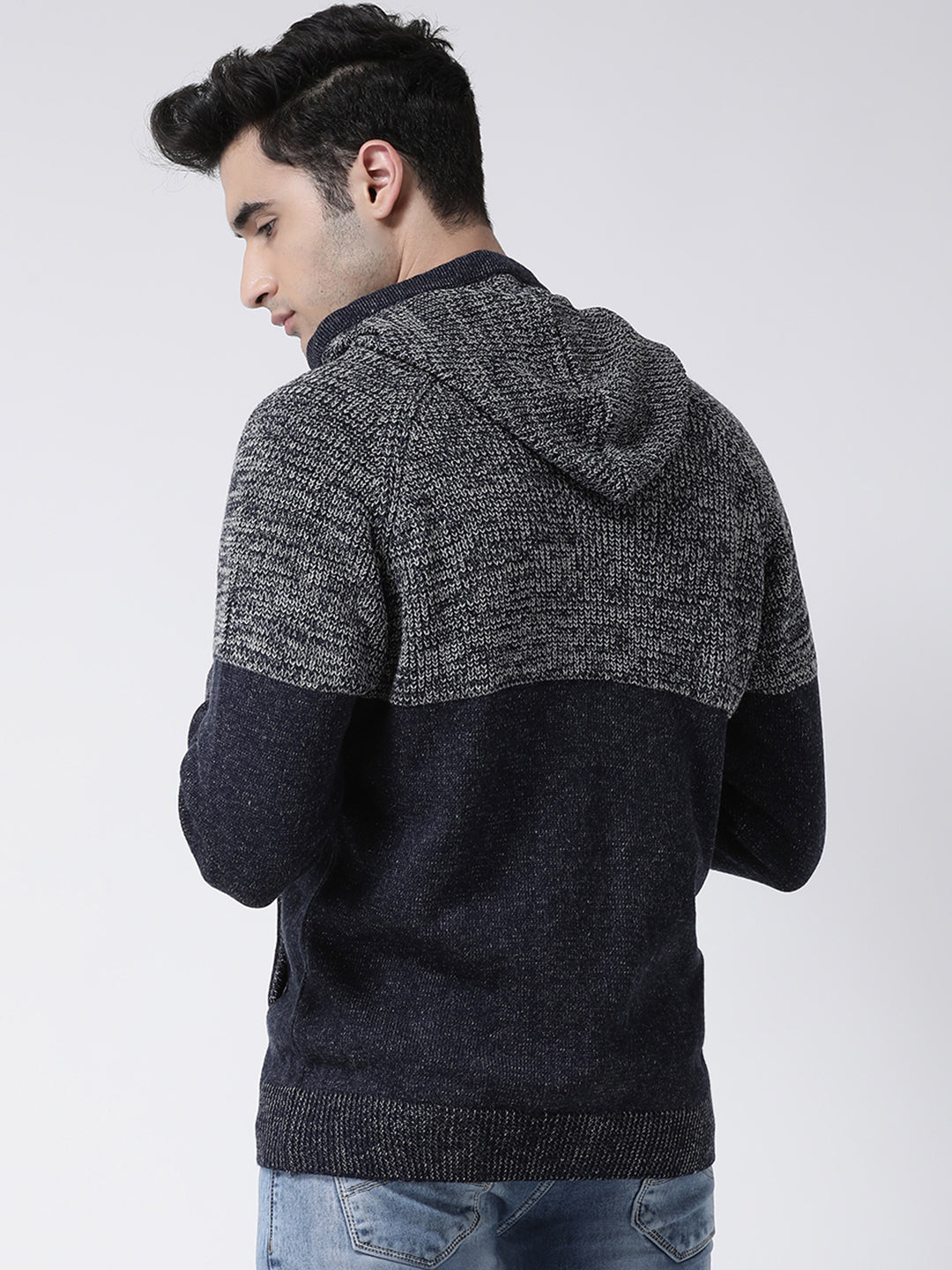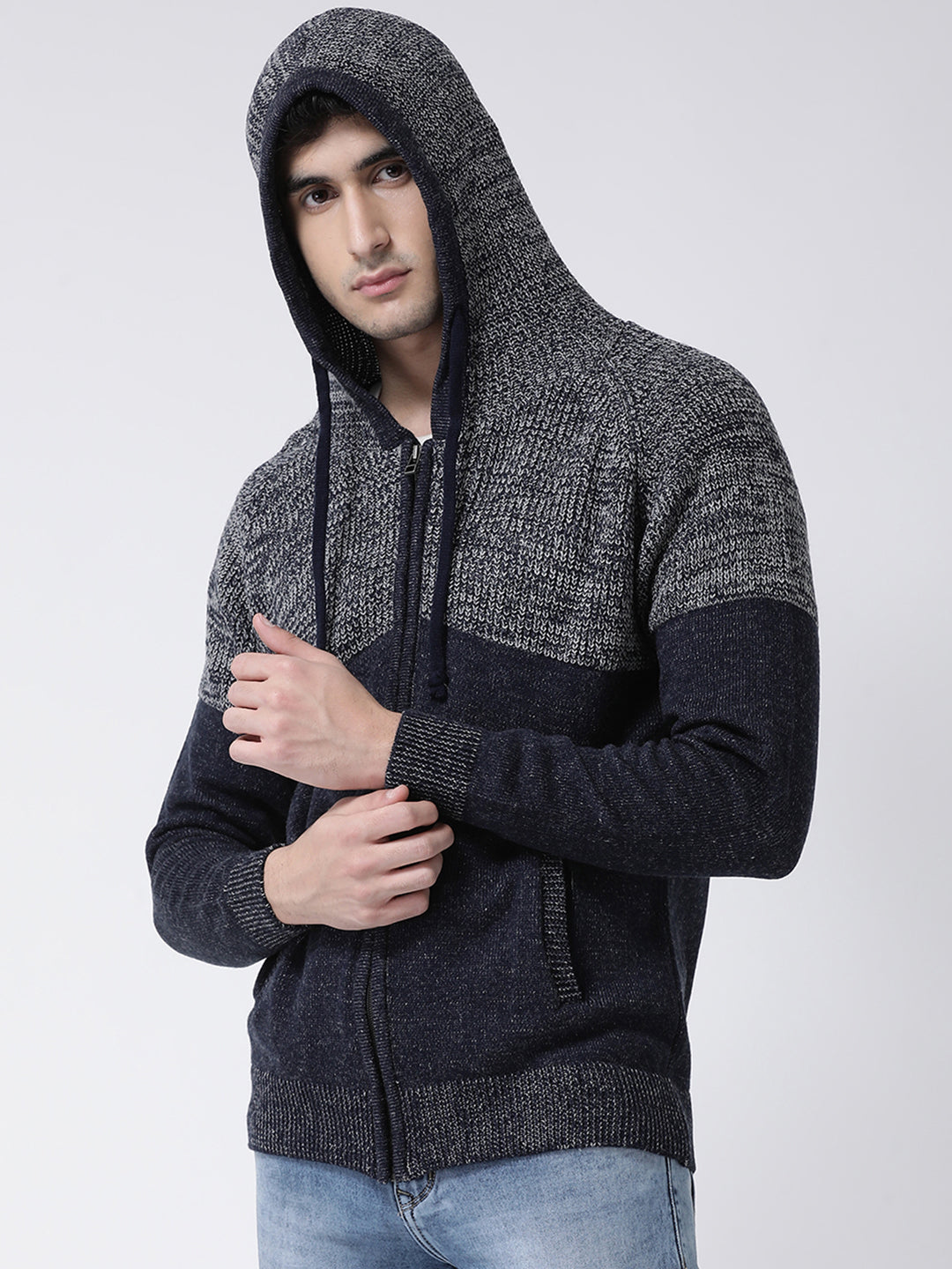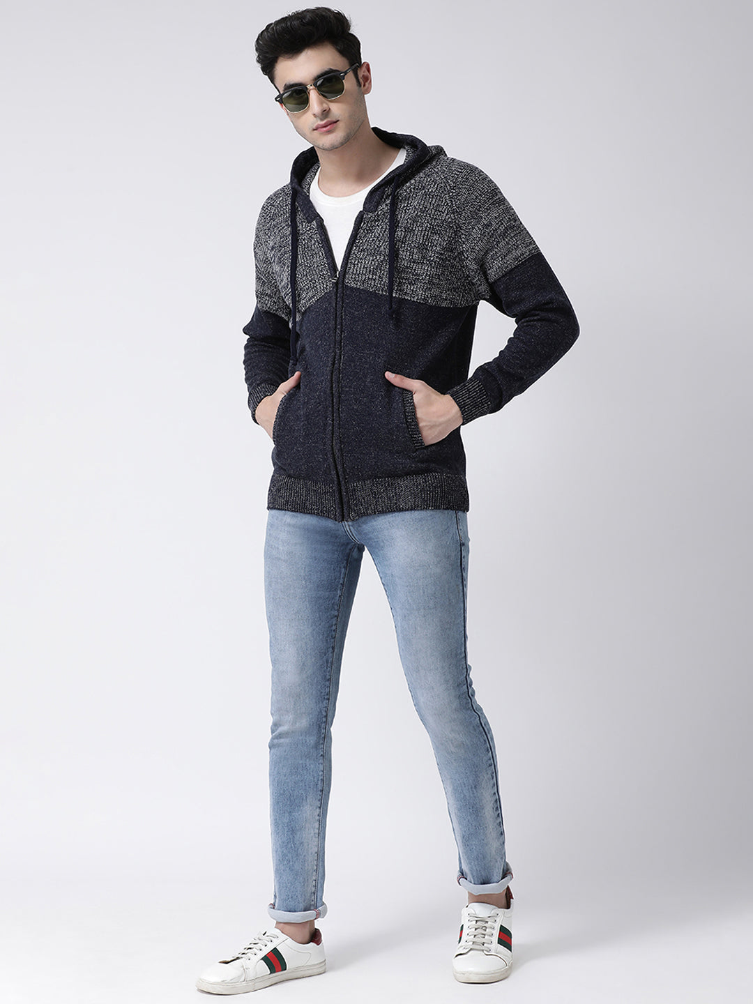 Club York Men Navy Blue Grey Colourblocked Front Open Sweater 9276