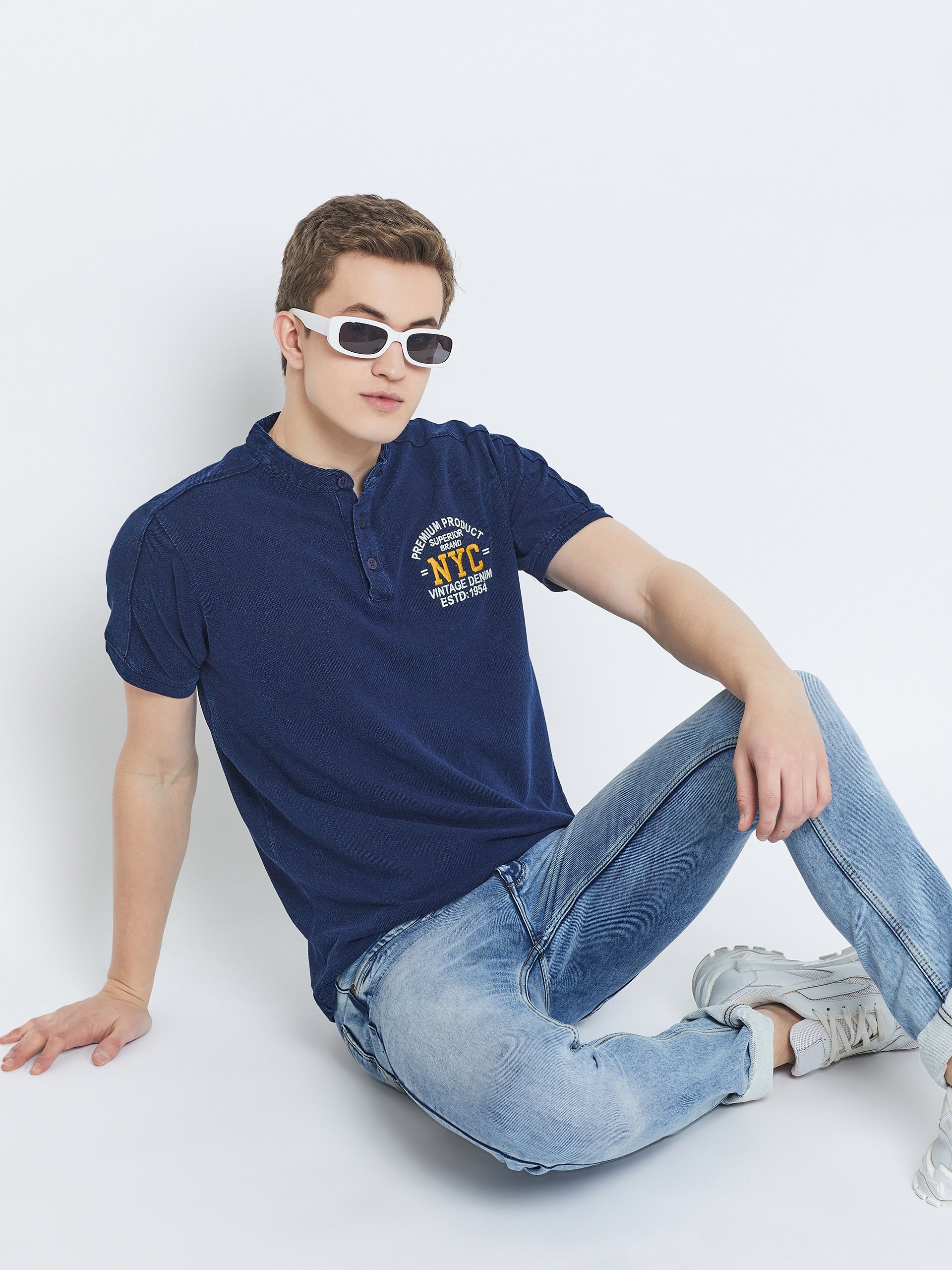 Club York Men Navy Blue Half Sleeve Solid Polo Neck T Shirt 7705