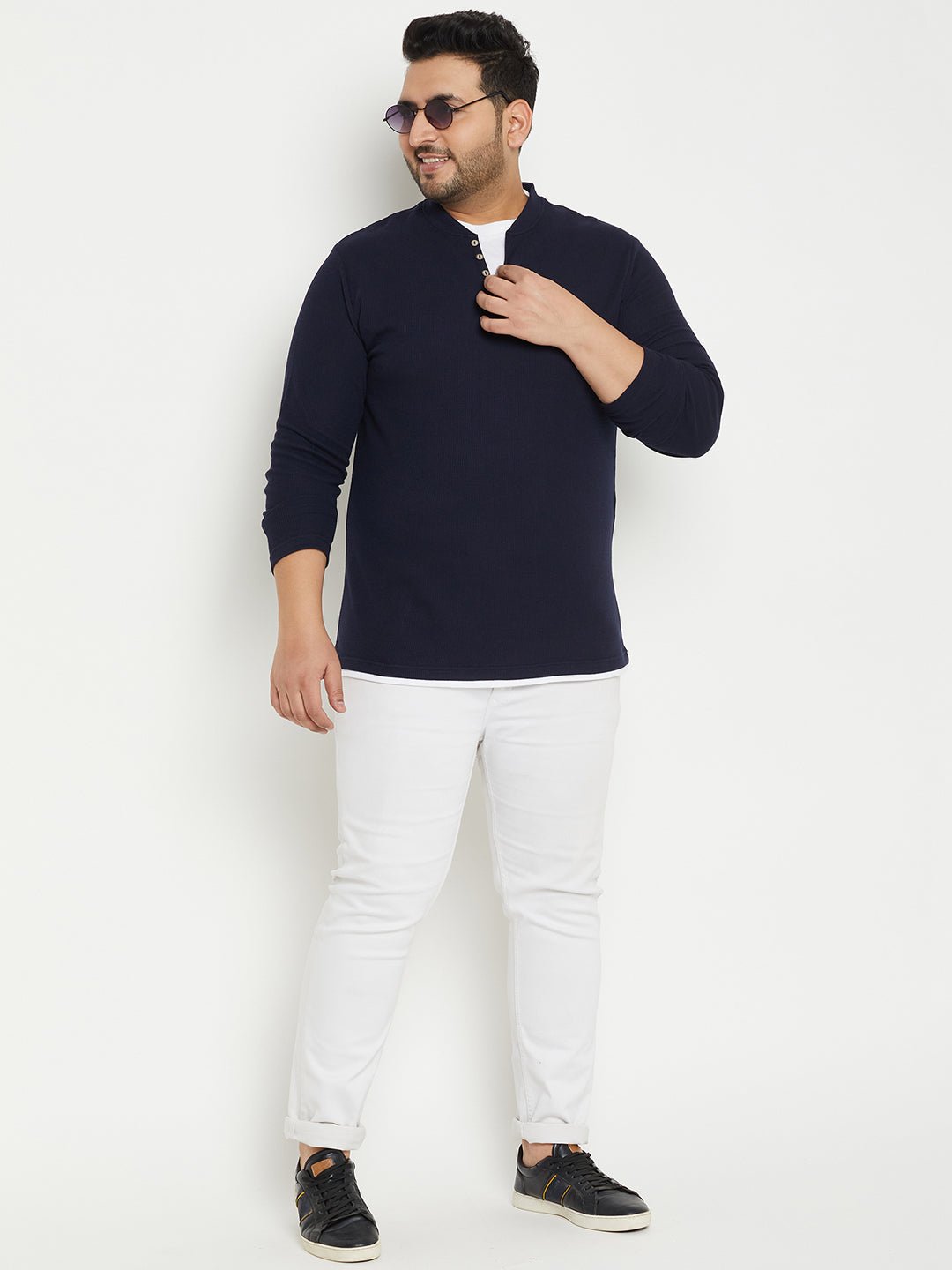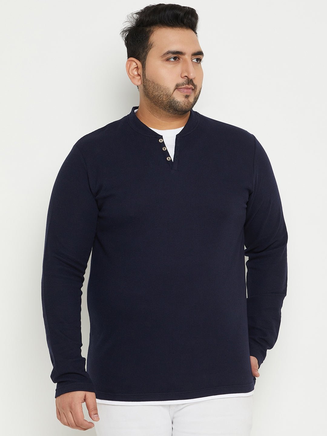 Club York Men Navy Solid Full Sleeve V Neck Plus Size T Shirt Cypm1355xl 6526