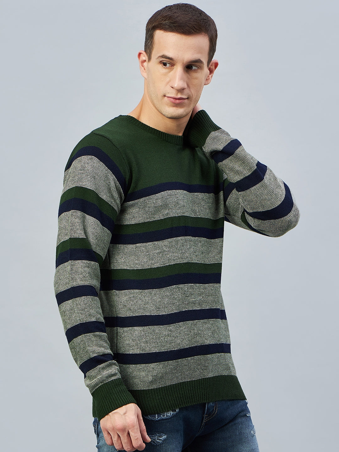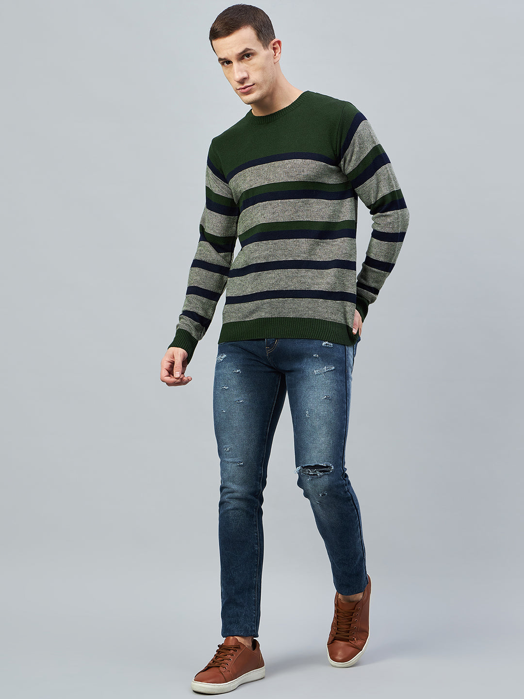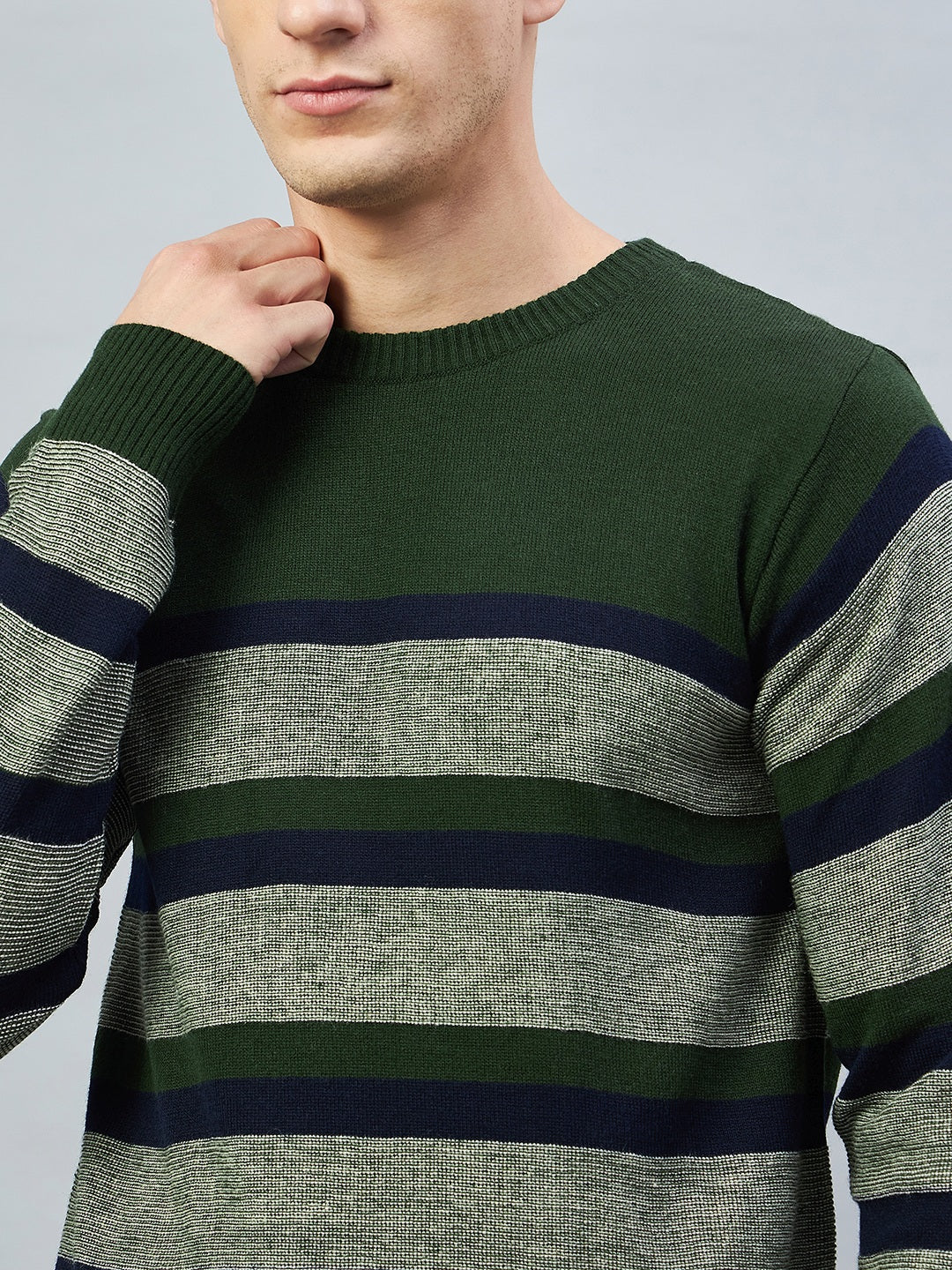 Club York Men Olive Colorblocked Full Sleeve Round Neck Sweater 3025