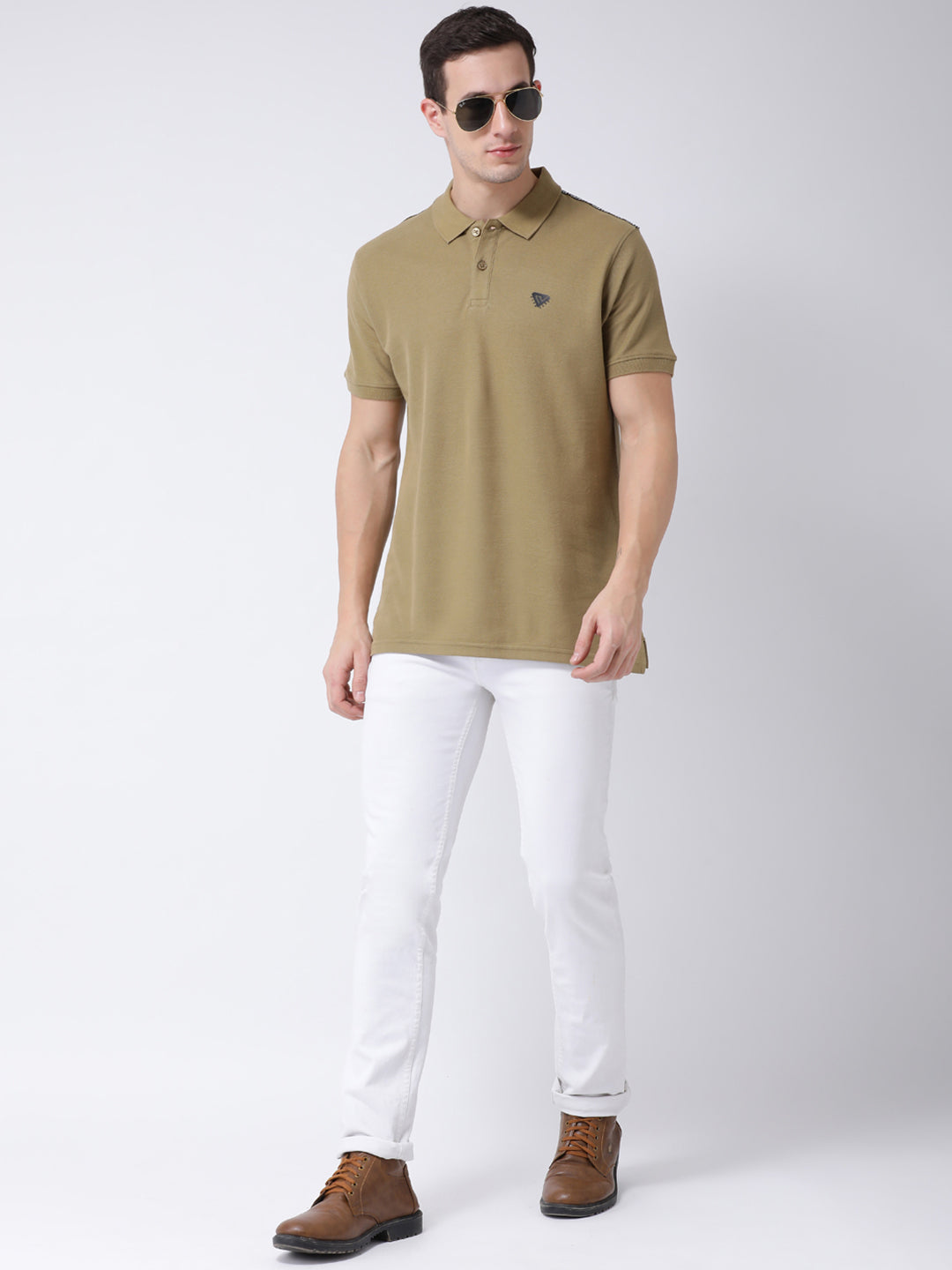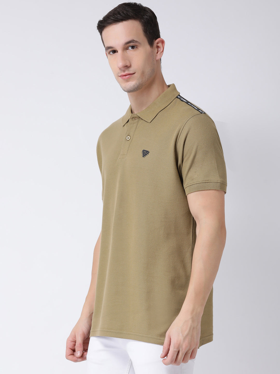 Club York Men Olive Green Solid Polo Collar T Shirt 3539