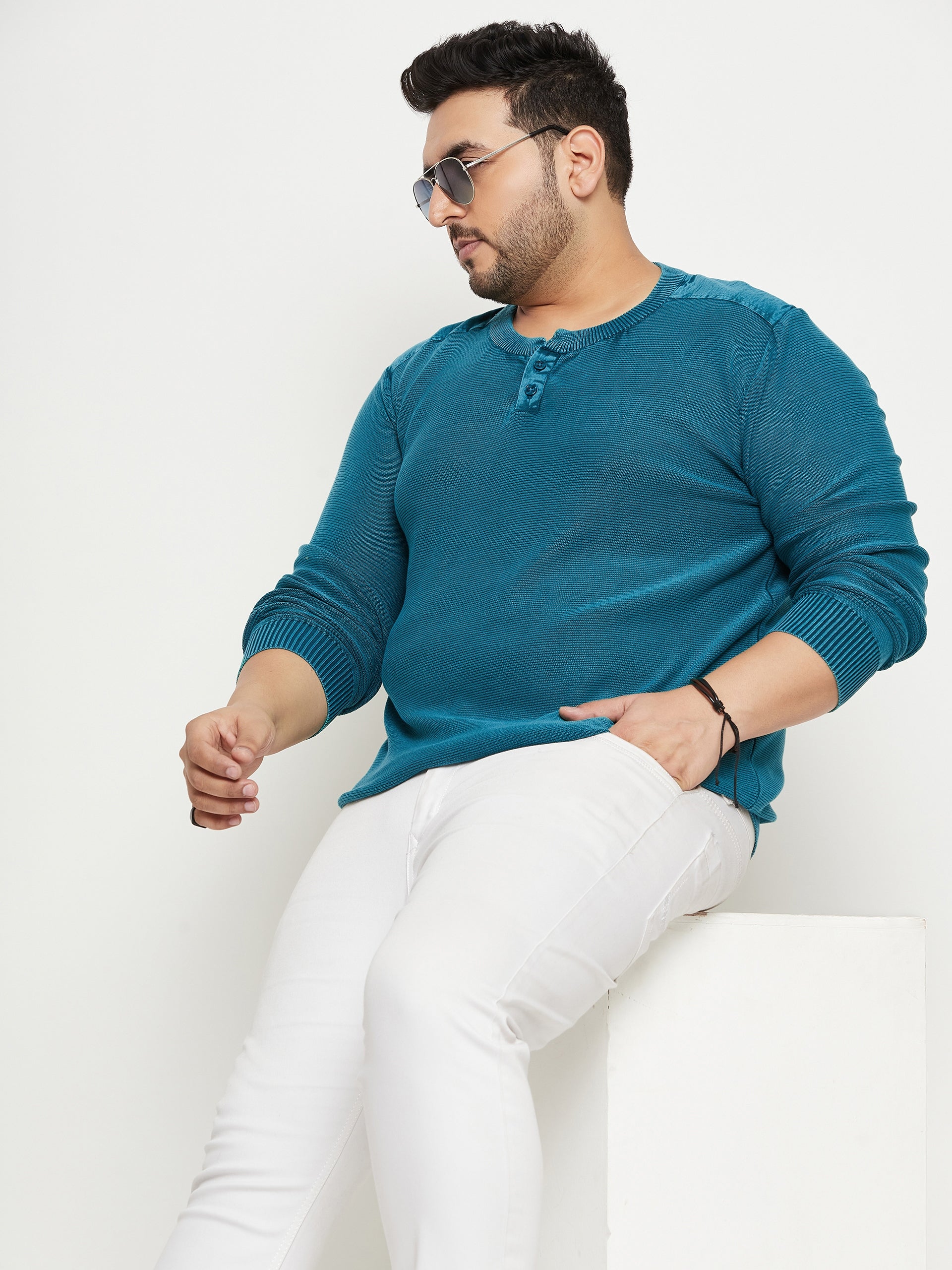 Teal Colorblocked V Neck Sweater 5376