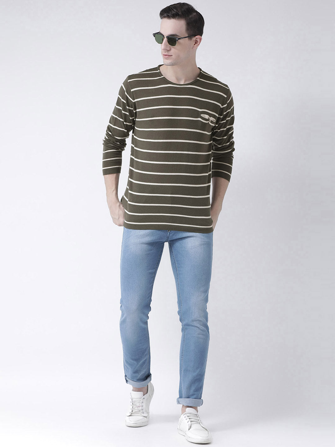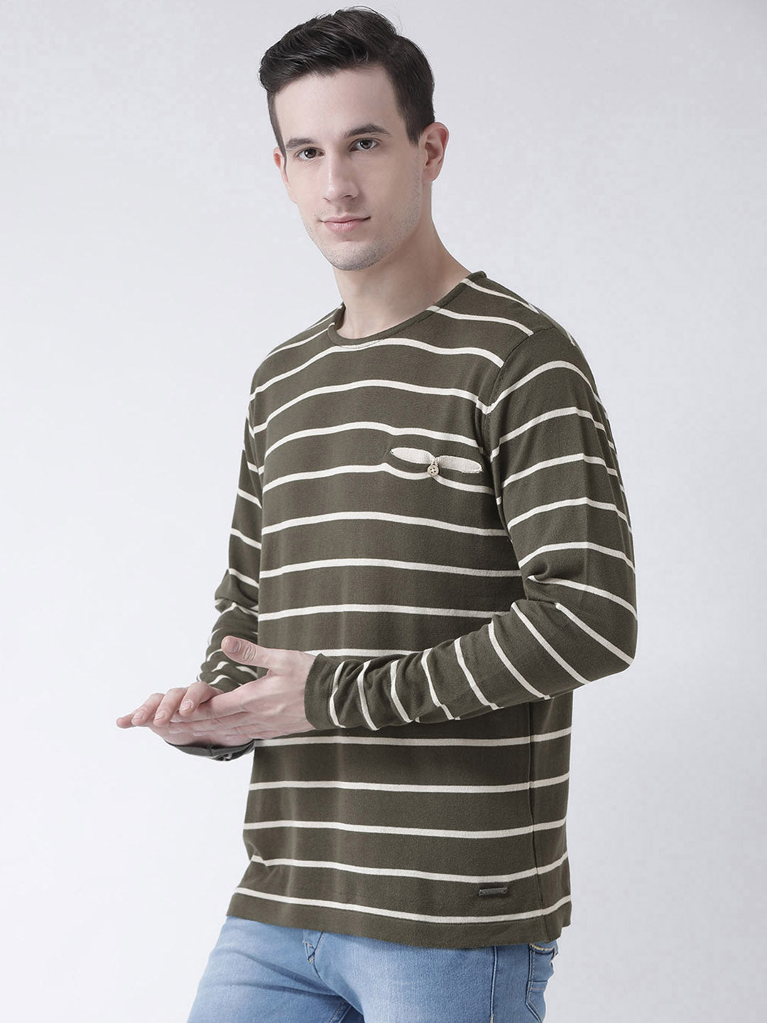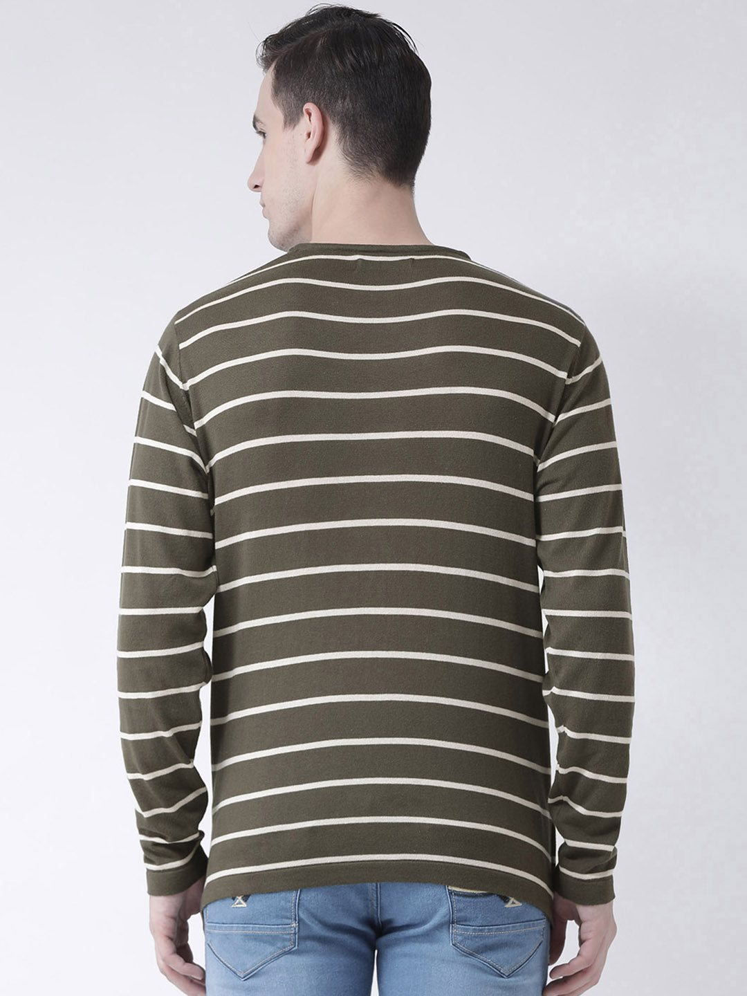 Club York Men Olive Green Striped Pullover 8325