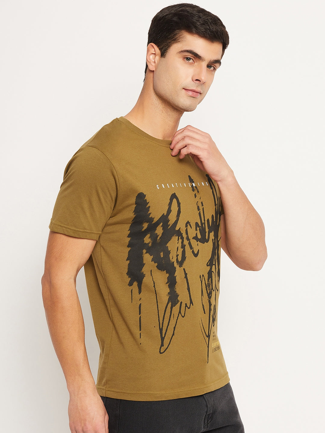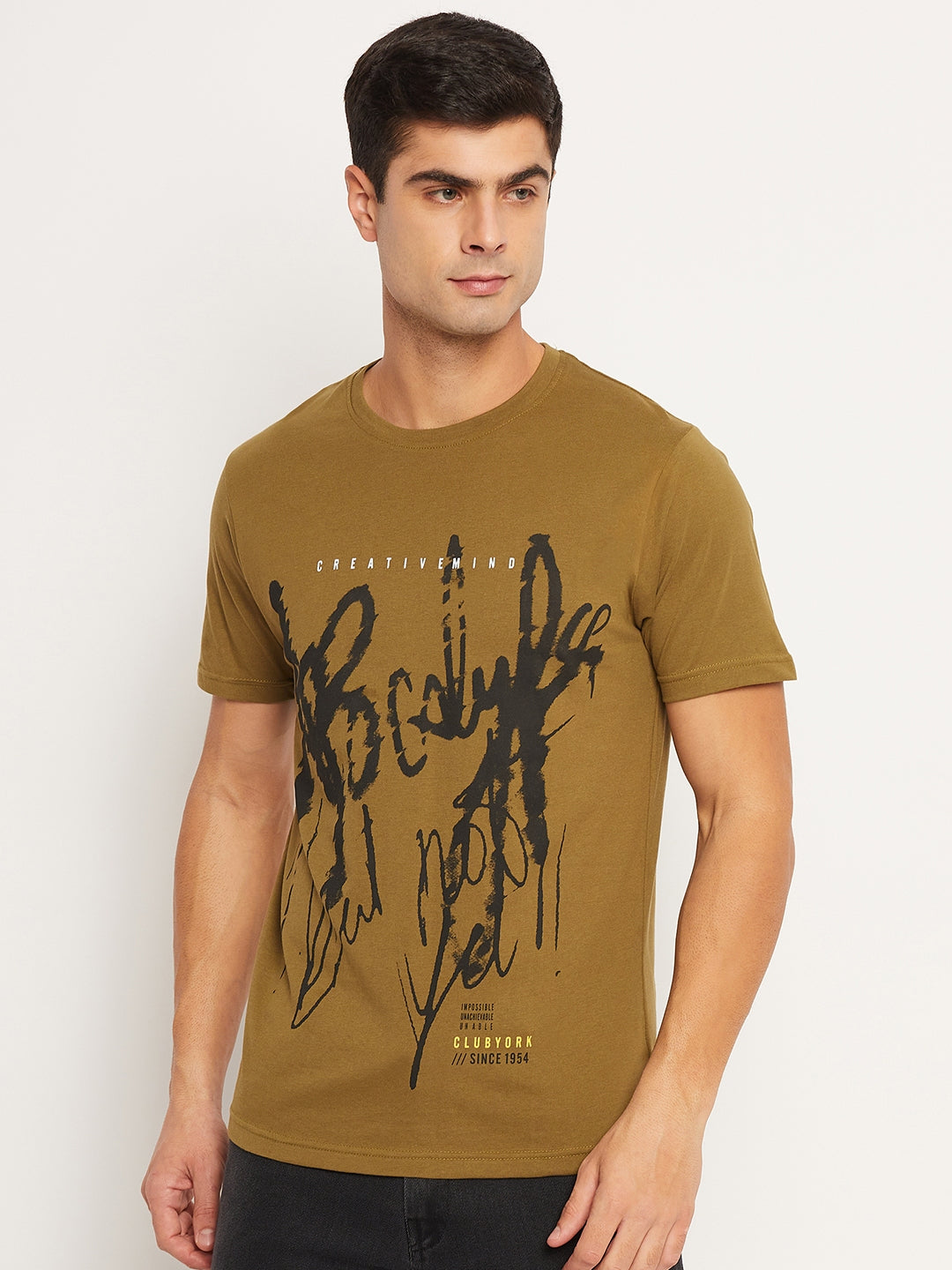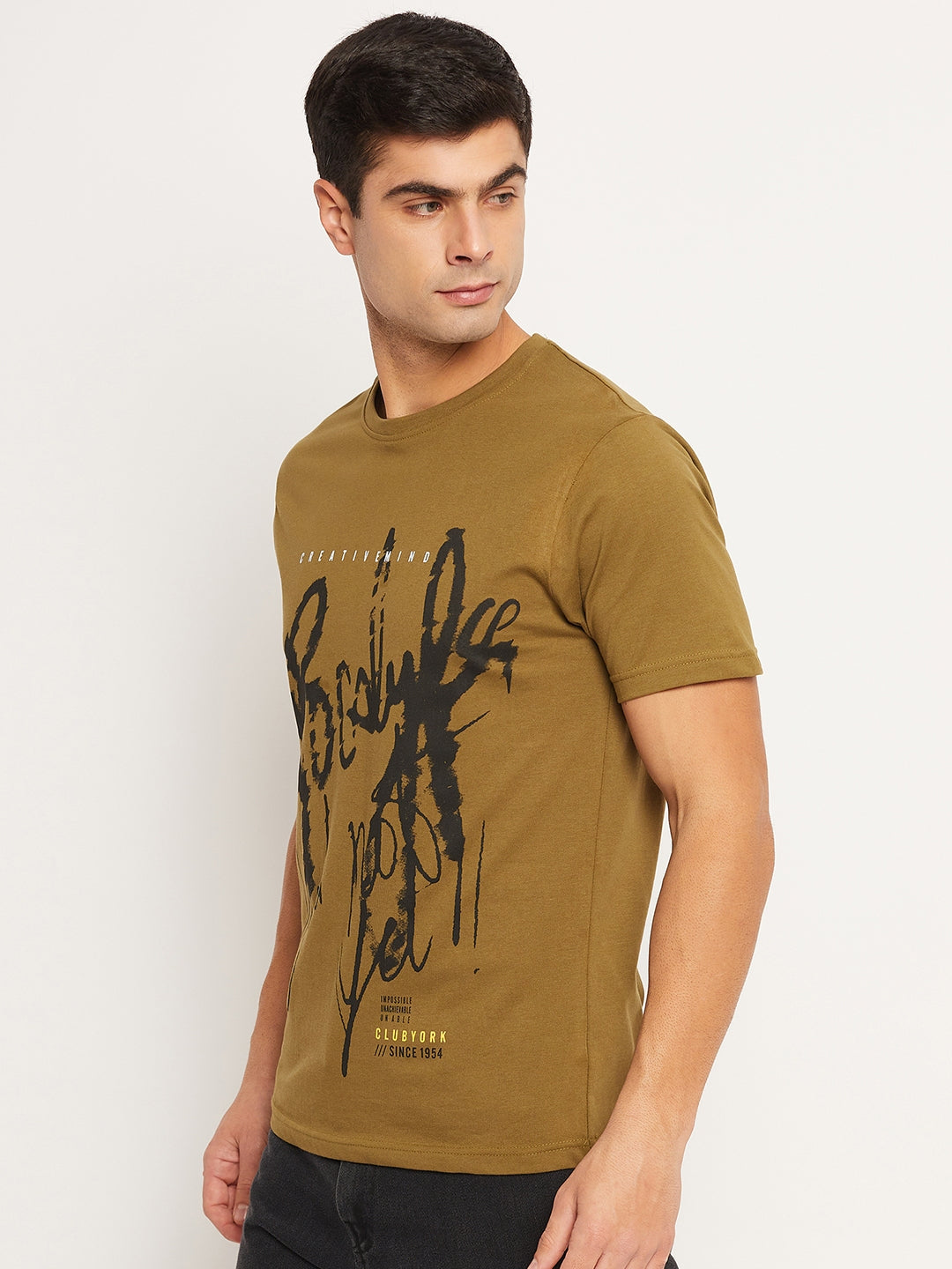 Club York Men Olive Half Sleeve Printed T Shirt 8010
