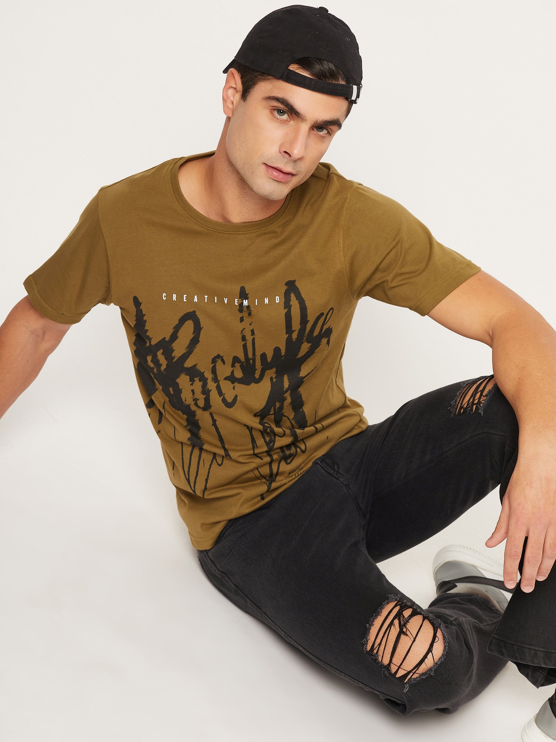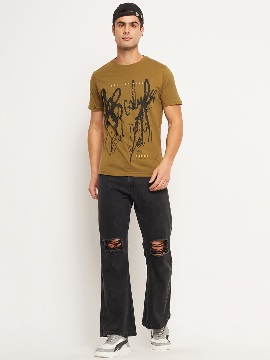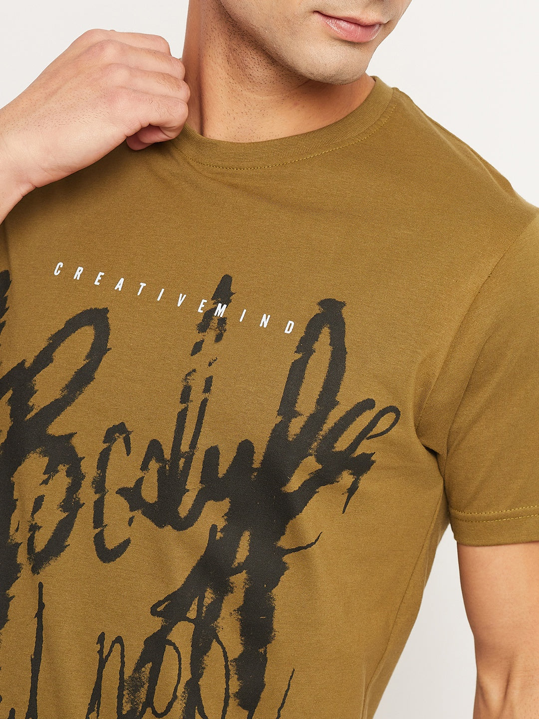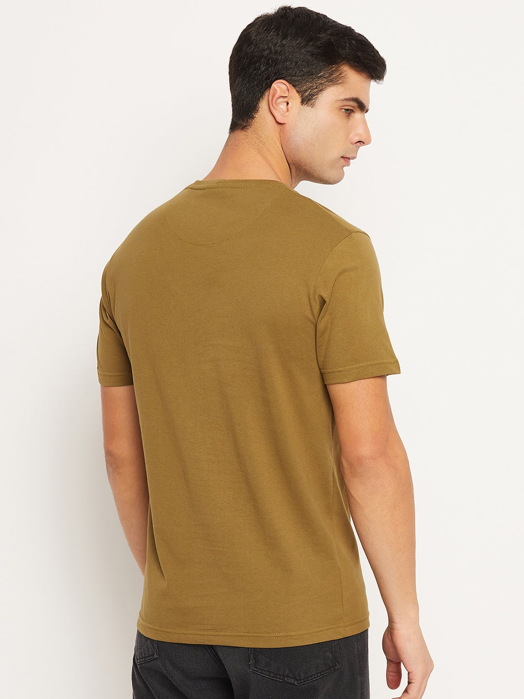 Club York Men Olive Half Sleeve Printed T Shirt 8010