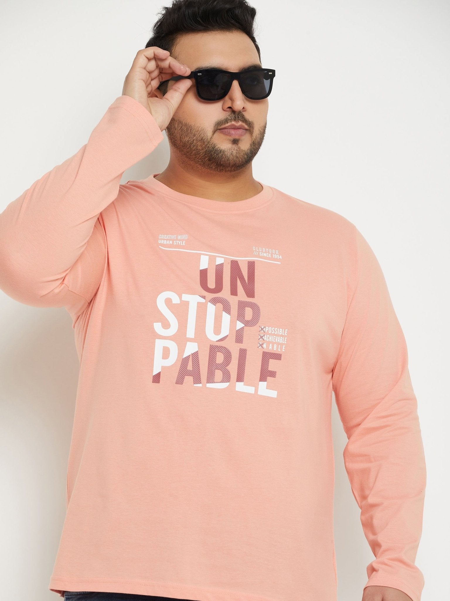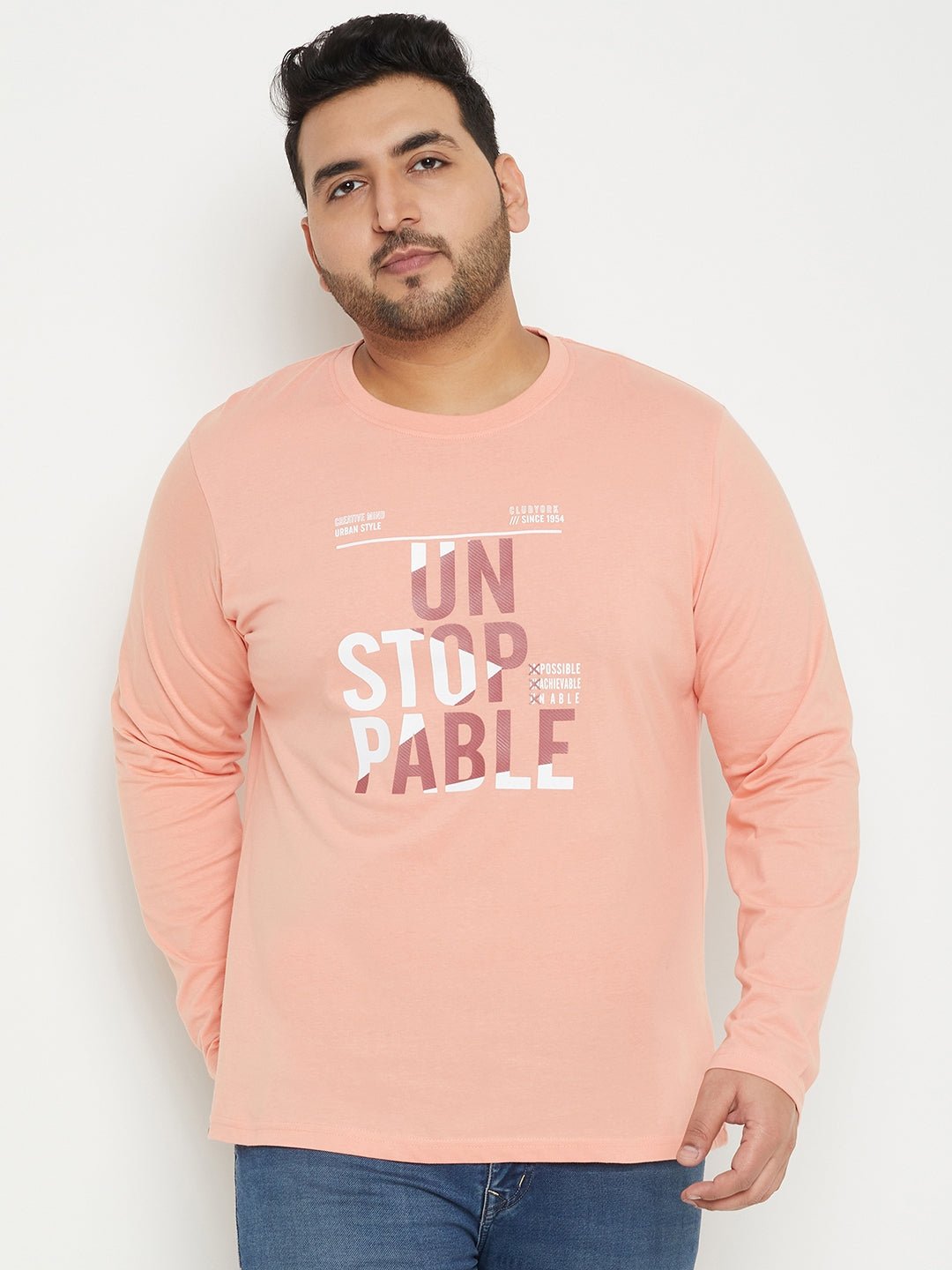 Club York Men Peach Printed Full Sleeve Round Neck Plus Size T Shirt Mpw529xl 5654