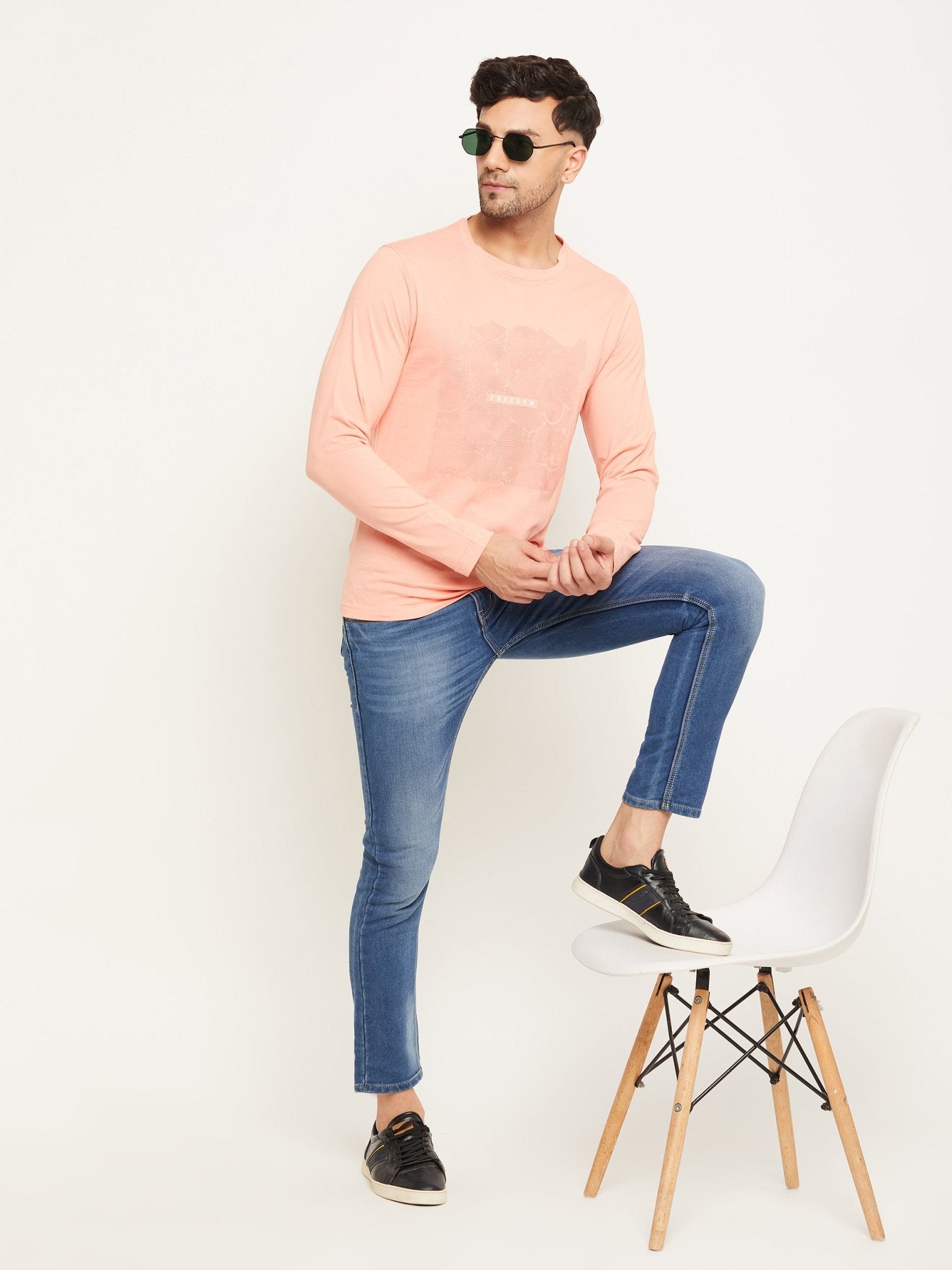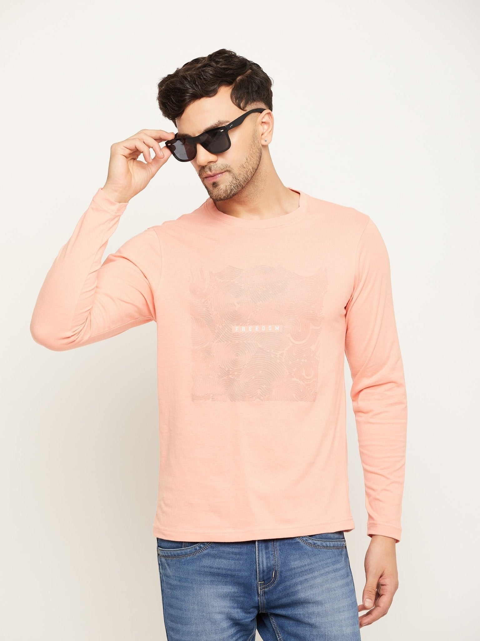 Club York Men Peach Printed Full Sleeve Round Neck T Shirt Mpw526 2503