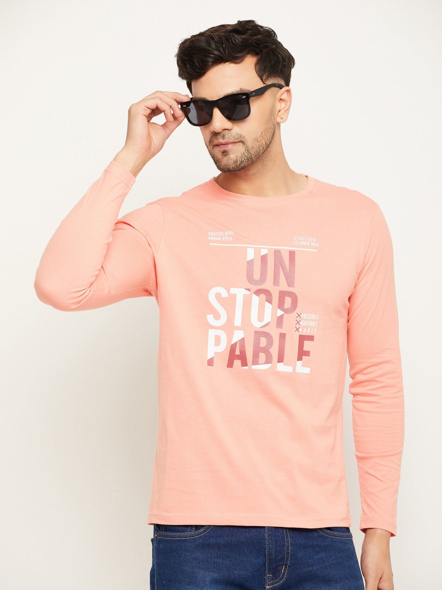 Club York Men Peach Printed Full Sleeve Round Neck T Shirt Mpw529 5358