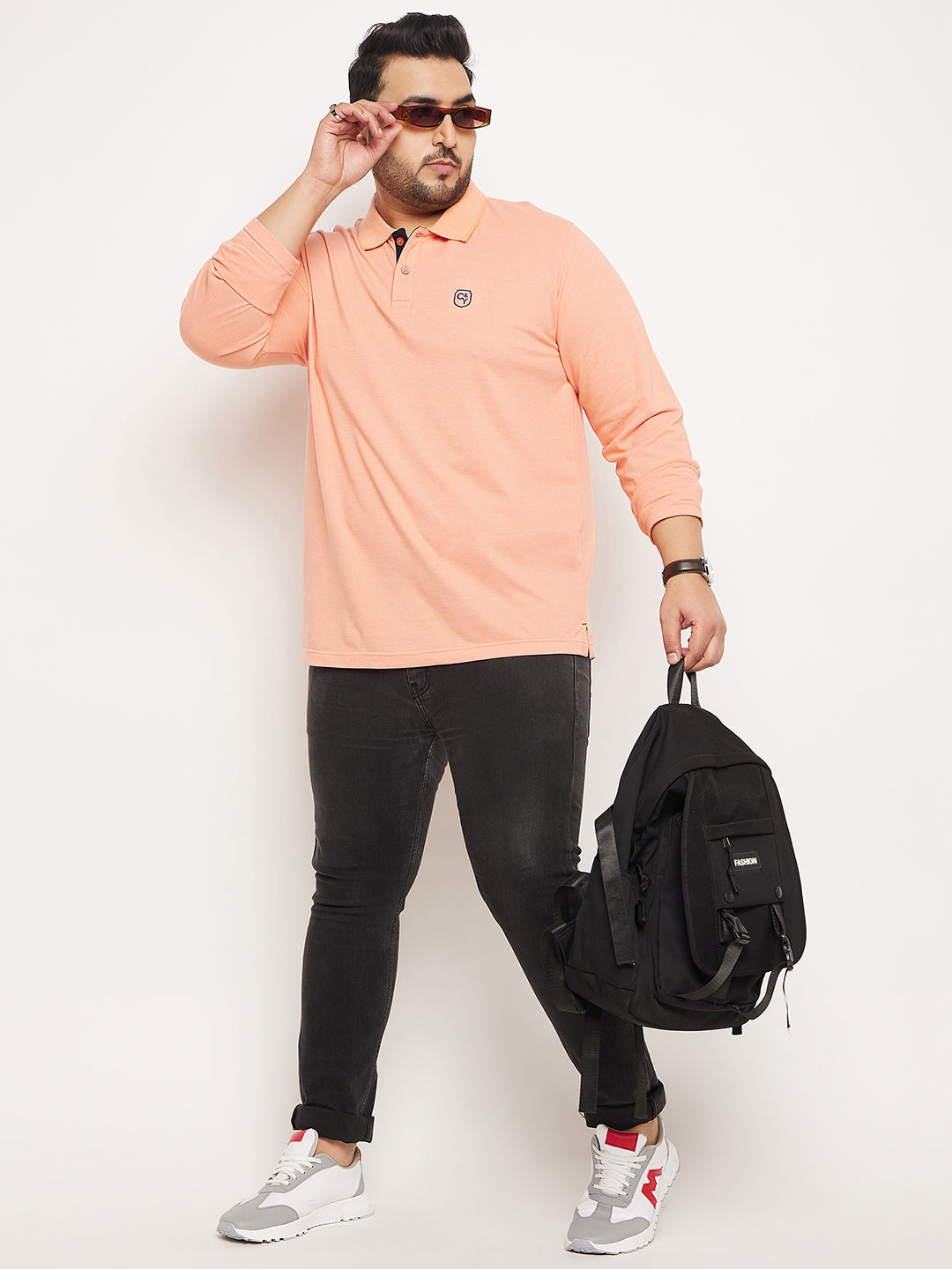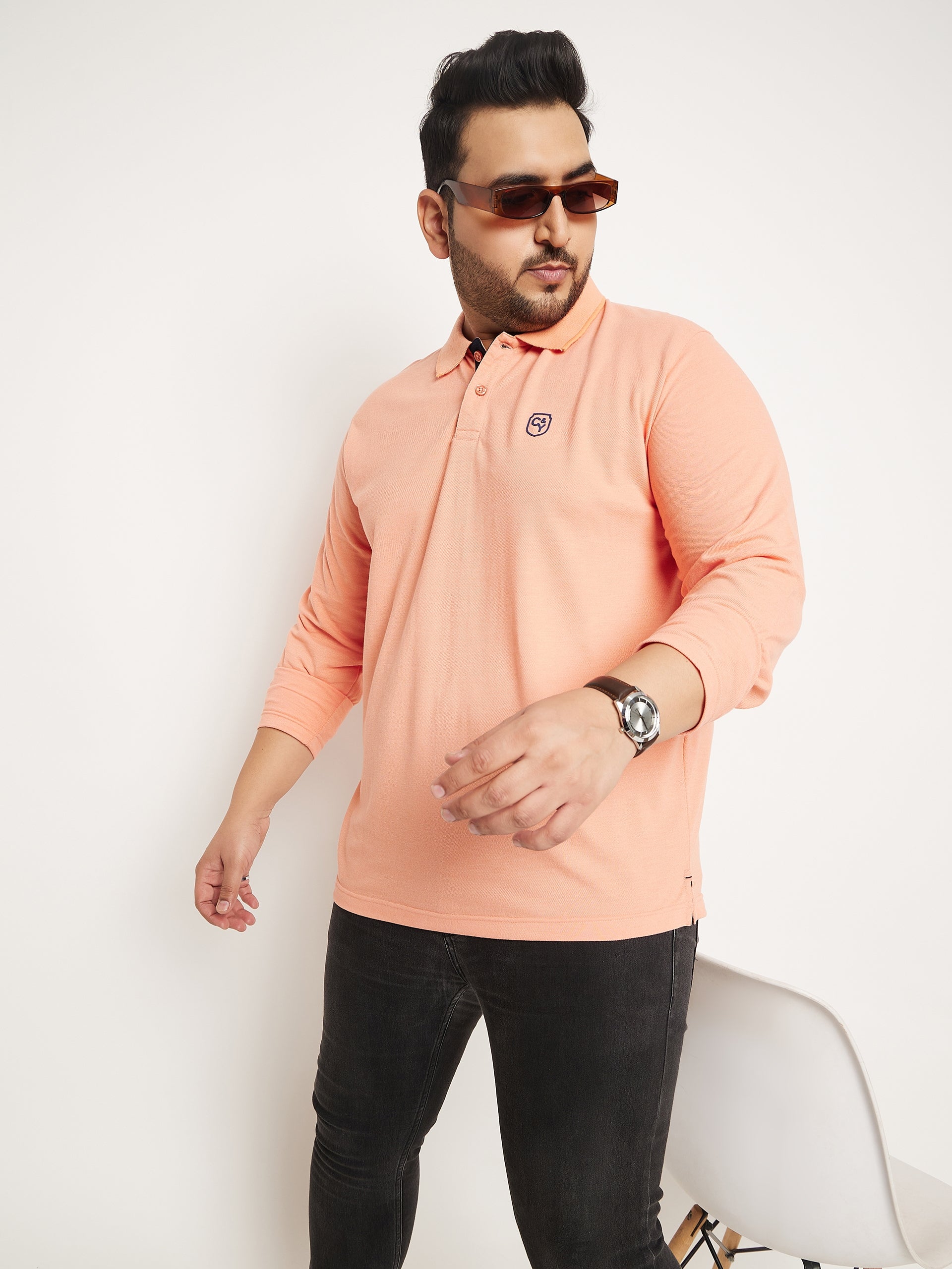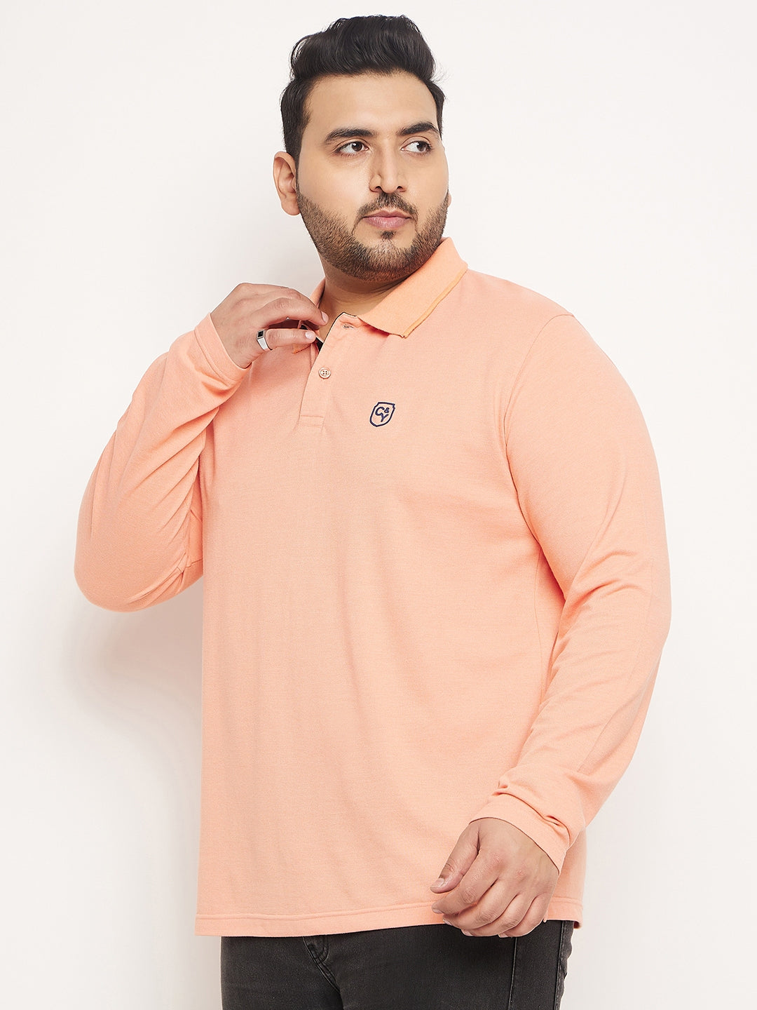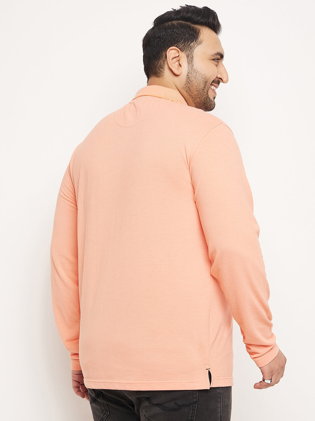 Club York Men Peach Solid Full Sleeve Polo Neck Plus Size T Shirt 9004