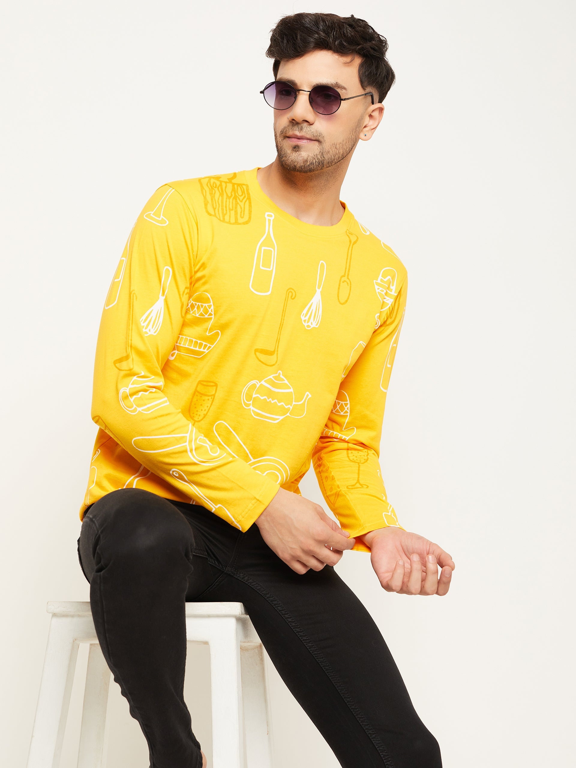 Yellow Printed Round Neck T-Shirt 7551