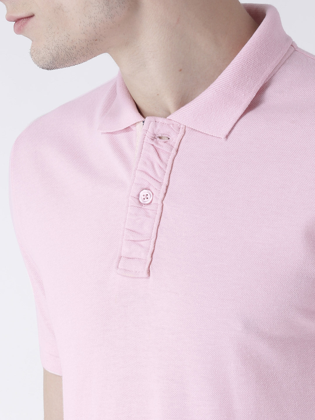 Club York Men Pink Half Sleeve Solid Polo Neck T Shirt 9165