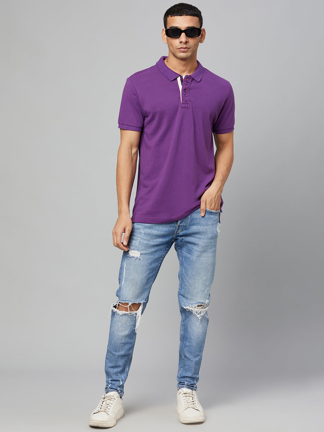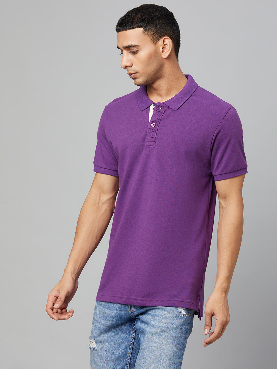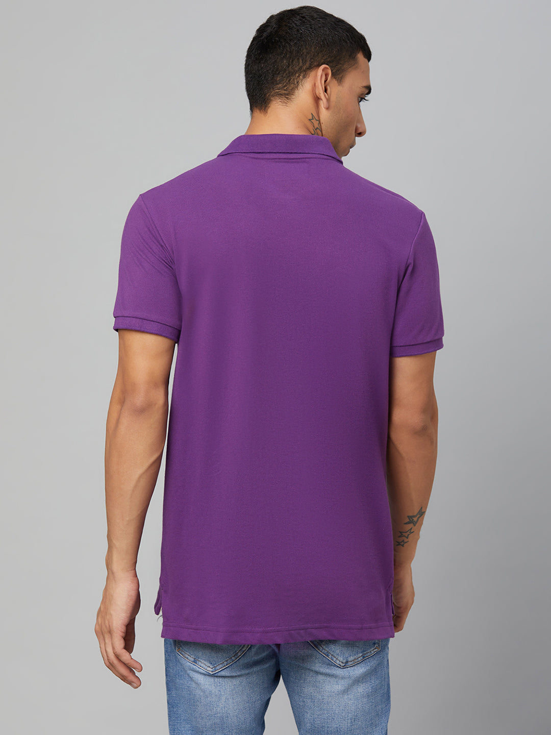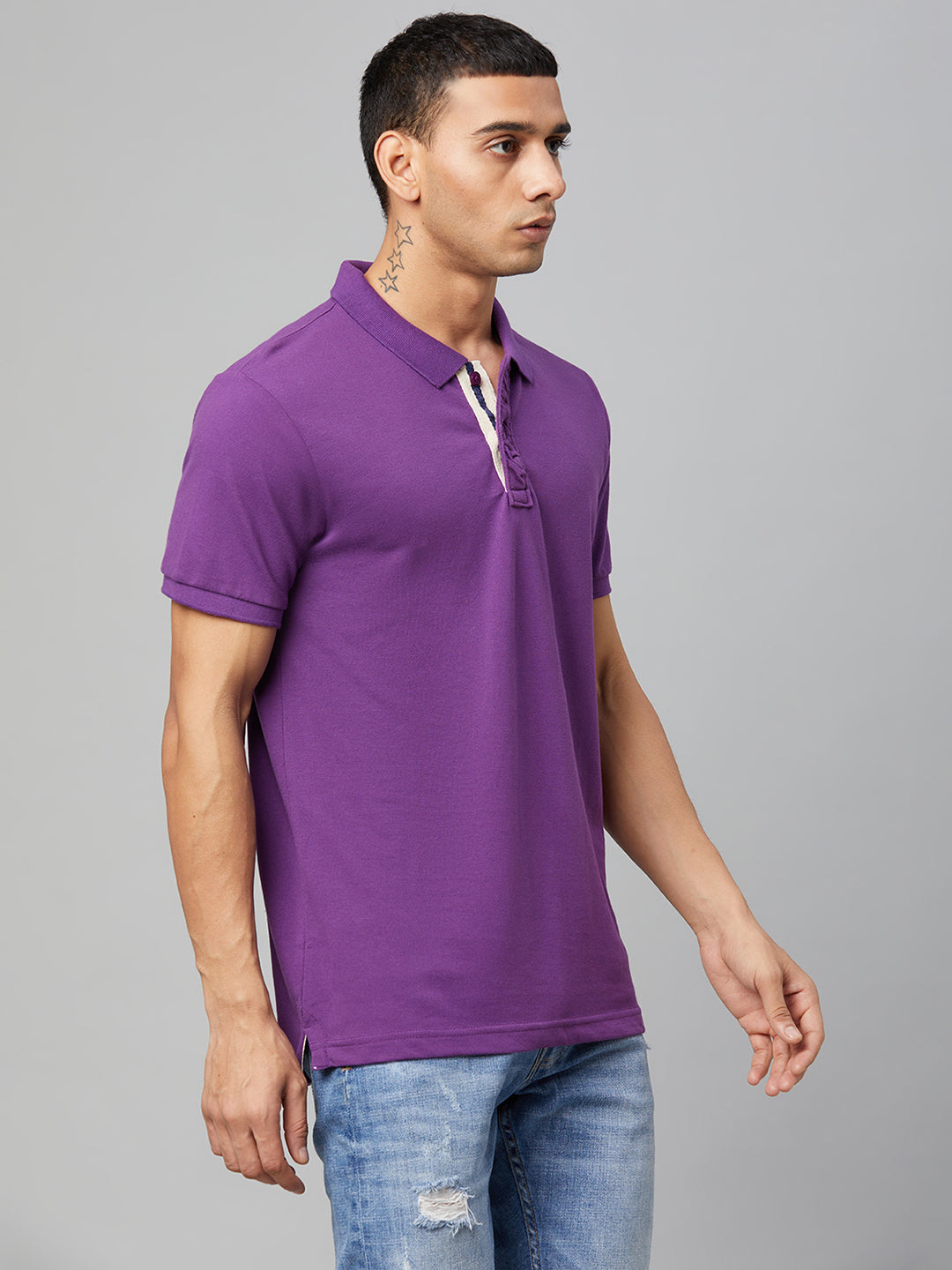 Club York Men Purple Polo Collar Cotton T Shirt 3102
