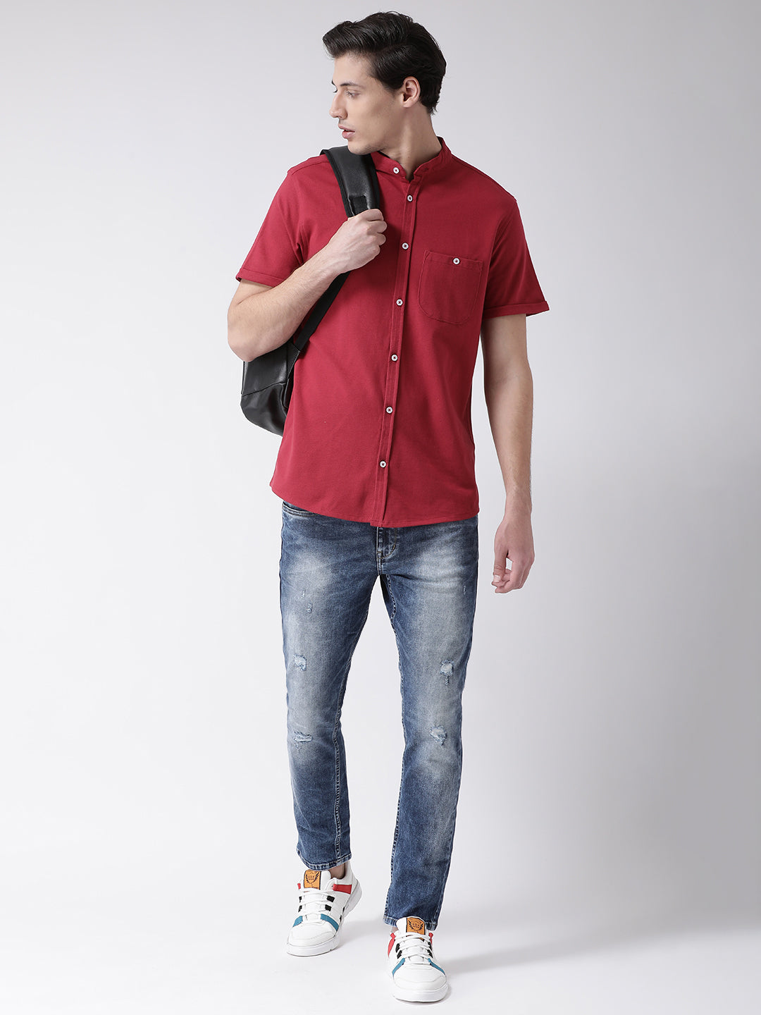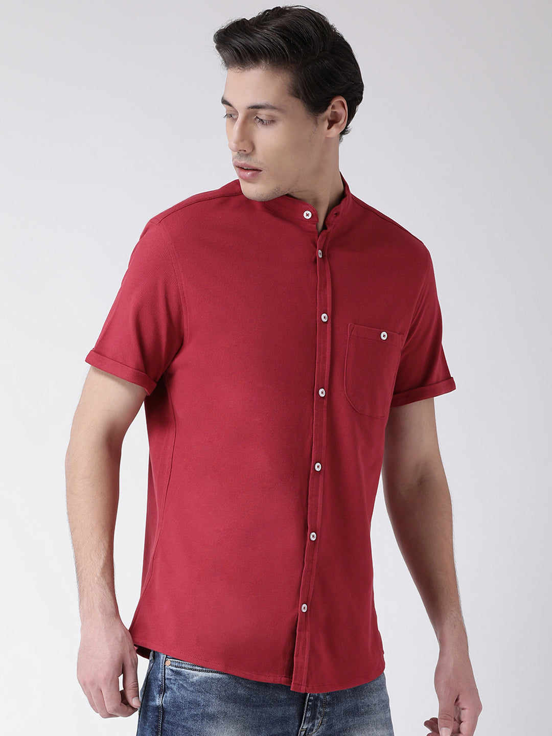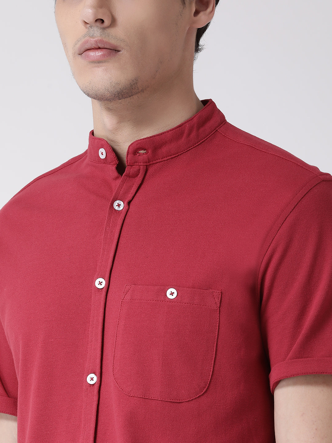 Club York Men Red Solid Cotton Regular Fit Casual Shirt 4810