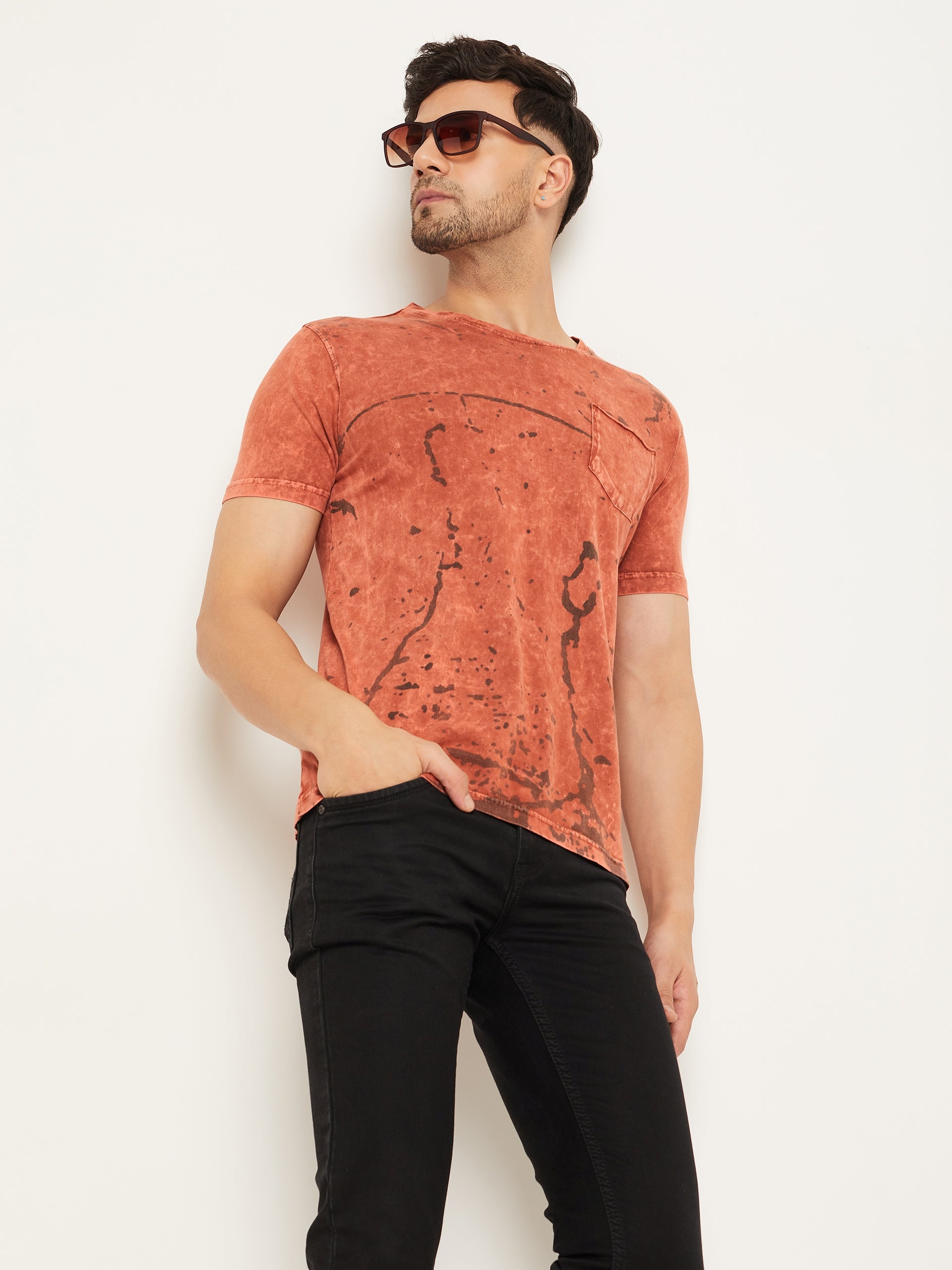 Club York Men Rust Printed Half Sleeve Round Neck T Shirt Mr1519 3552