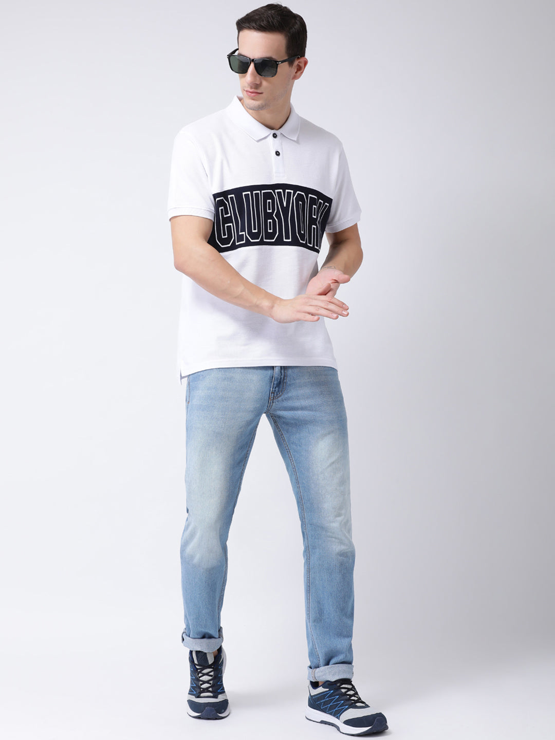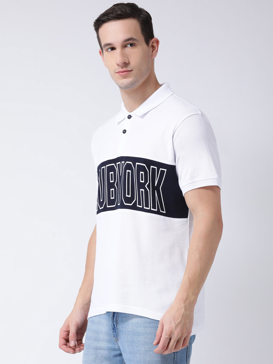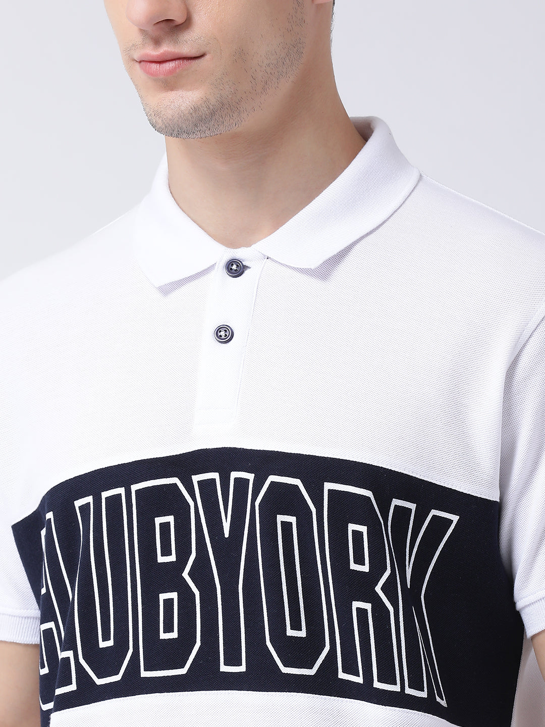 Club York Men White Navy Blue Typography Printed Cotton T Shirt 8766
